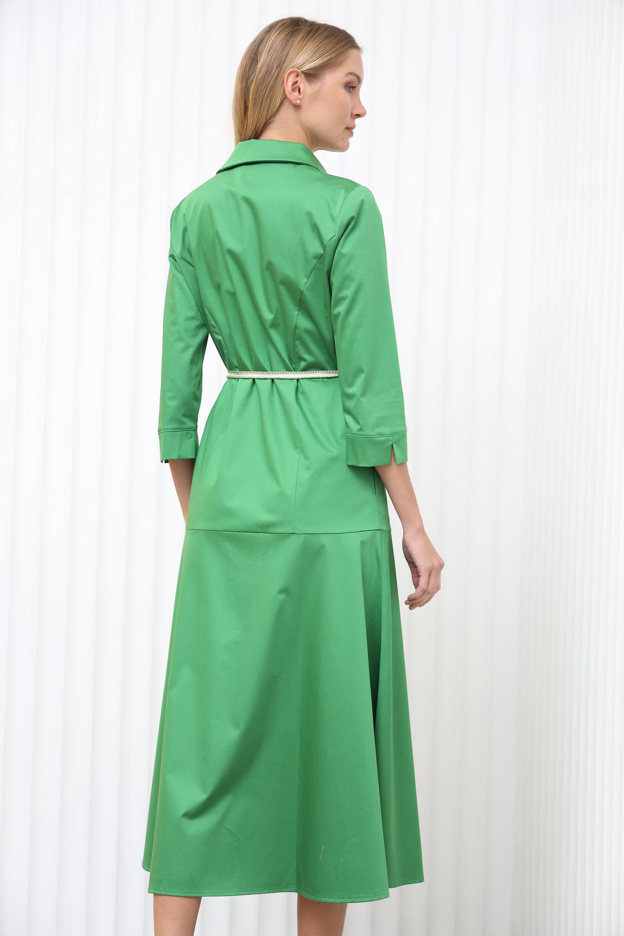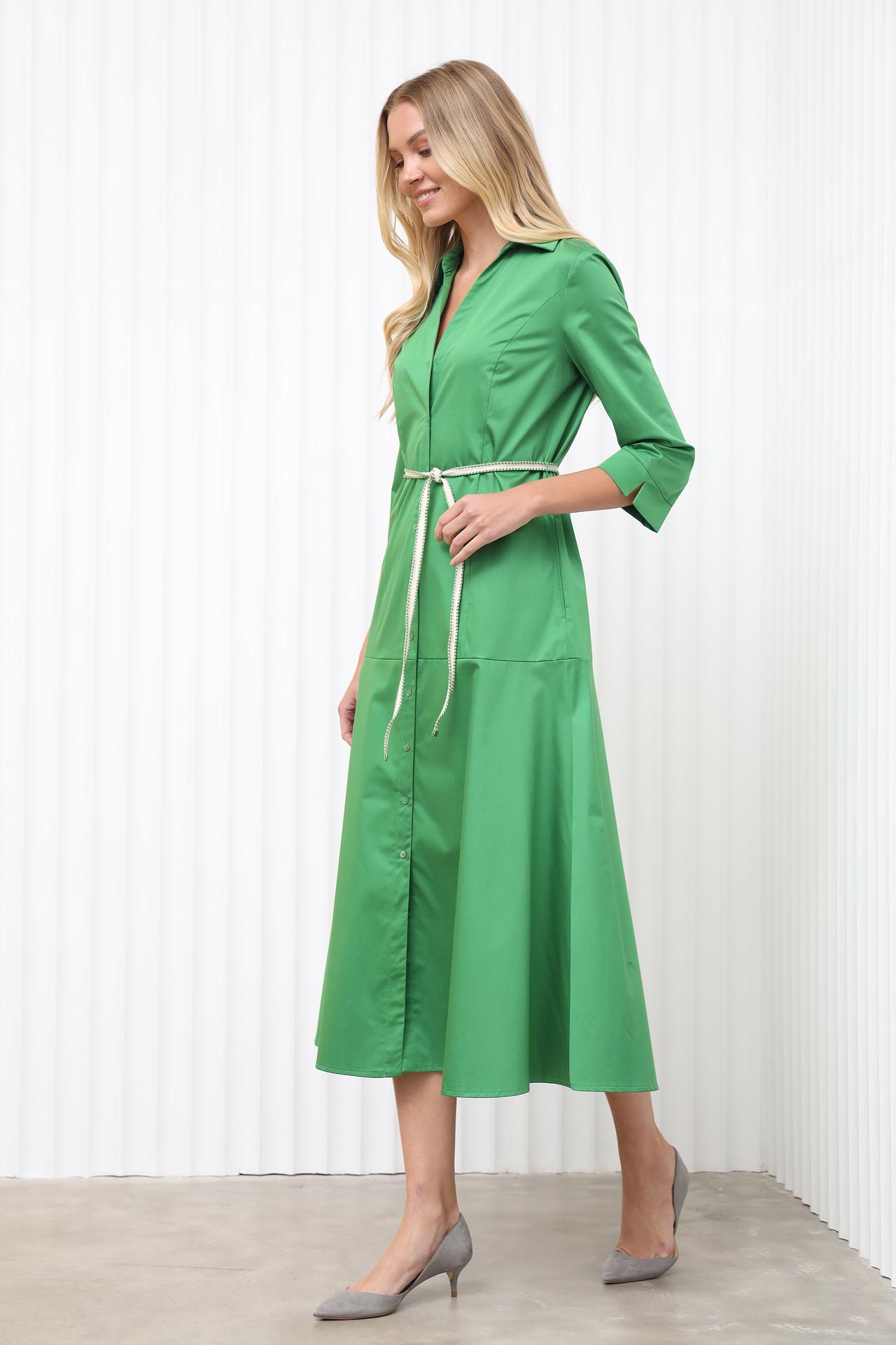 Изумрудное платье рубашечного кроя от Penny Black – воплощение элегантности и комфорта. Свободный крой миди длины, отложной воротник и рукава 3/4 делают этот наряд идеальным для любого случая. Легкий и дышащий материал, состоящий из хлопка с добавлением эластана, обеспечивает удобную посадку и свободу движений. Оригинальный пояс акцентирует талию и придает образу завершенность.