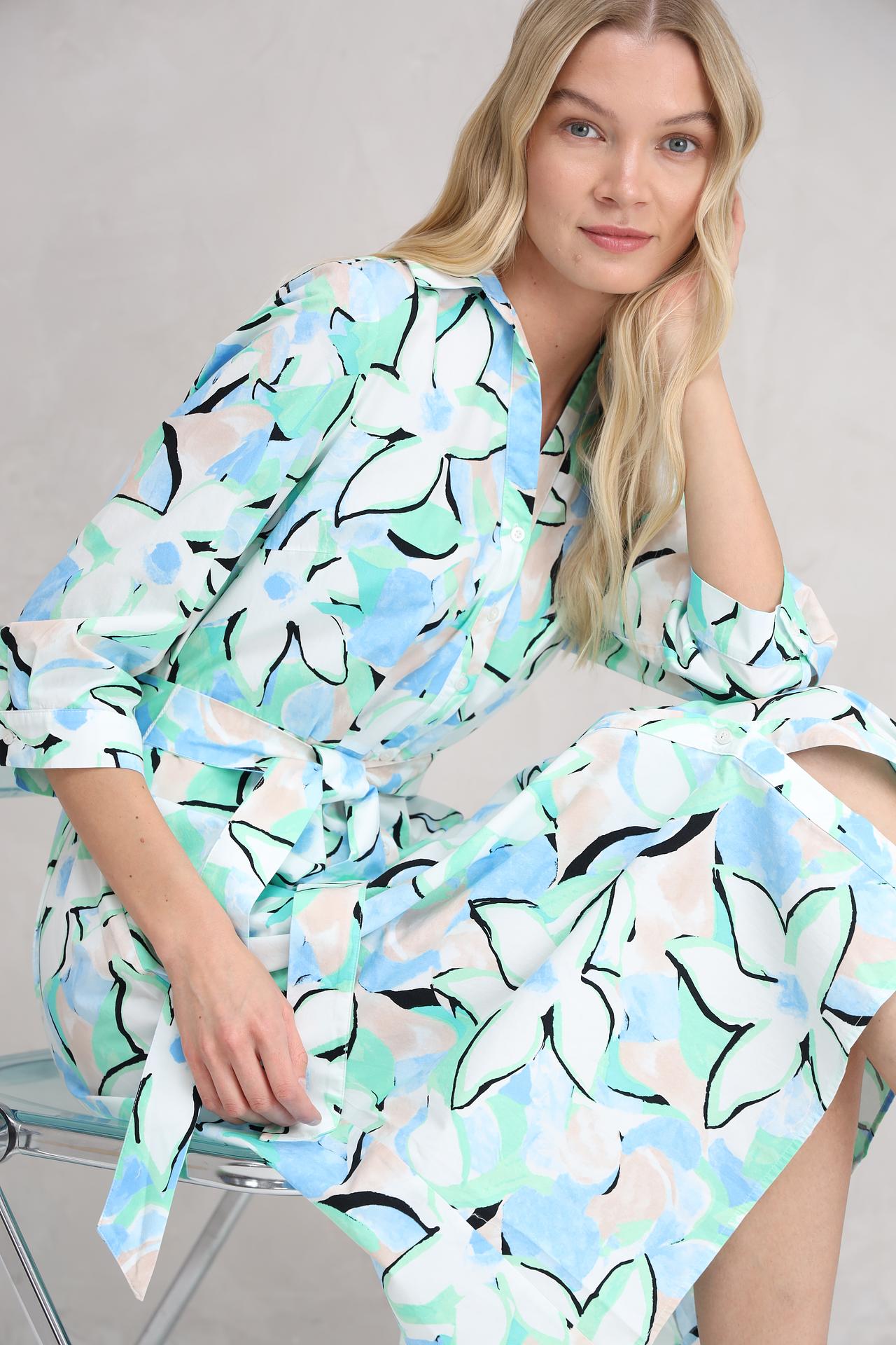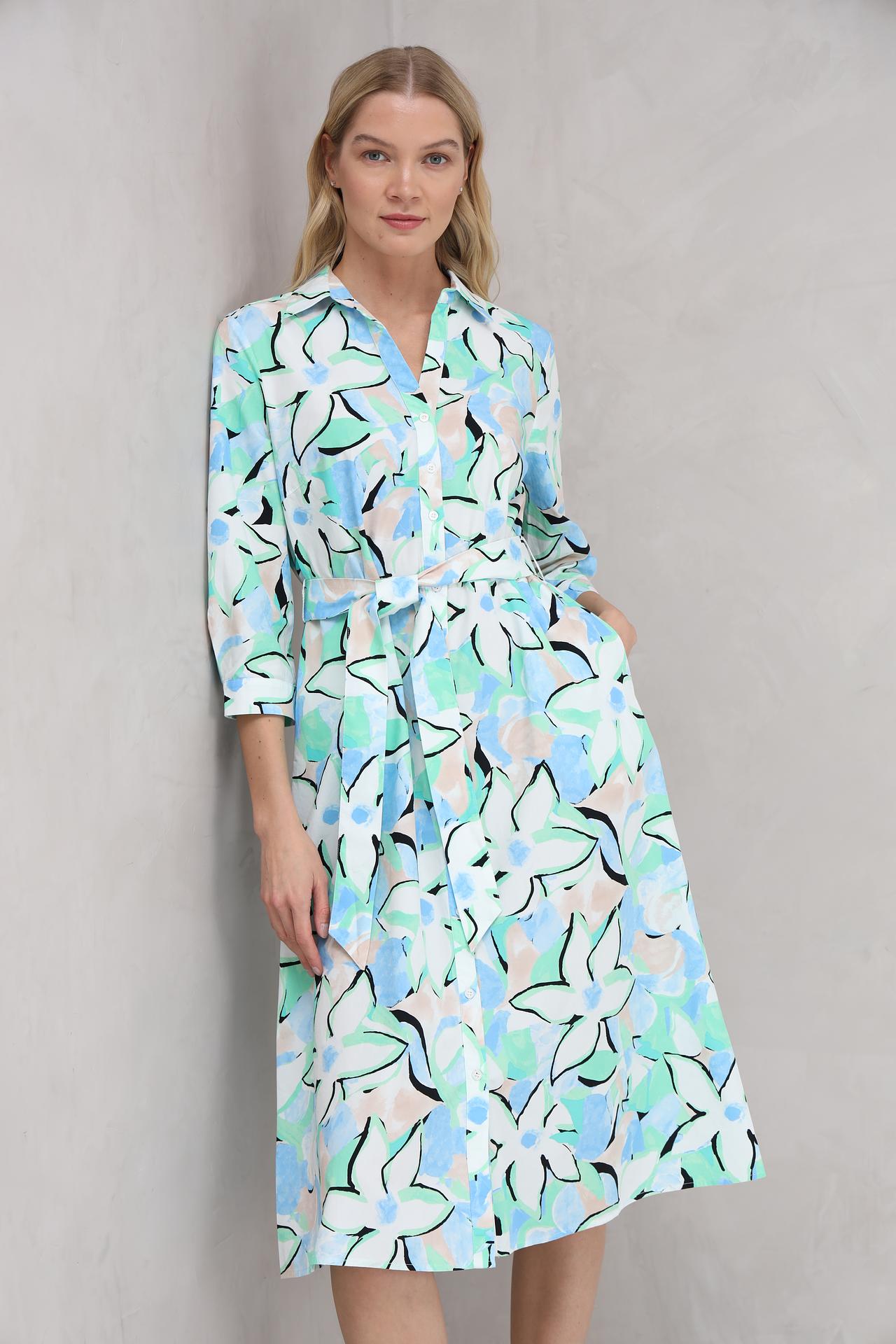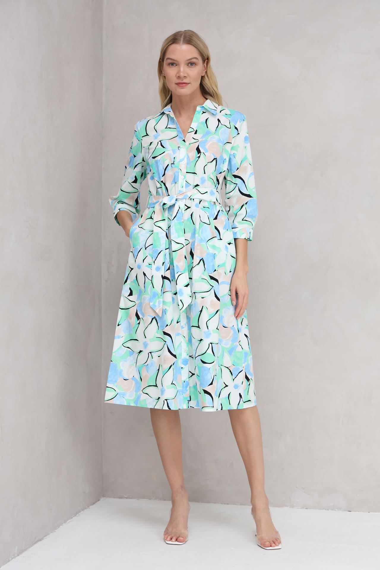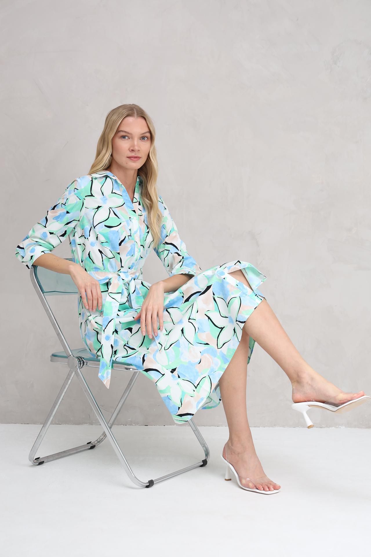 Очаровательное платье рубашечного кроя с цветочным принтом в нежных пастельных тонах – идеальный выбор для создания легкого и женственного образа. Этот стильный наряд станет прекрасным дополнением вашего гардероба, подходящим как для повседневных прогулок, так и для особых случаев. Легкая ткань и свободный крой обеспечивают комфорт в течение всего дня, а пояс подчеркивает талию, создавая элегантный силуэт.
