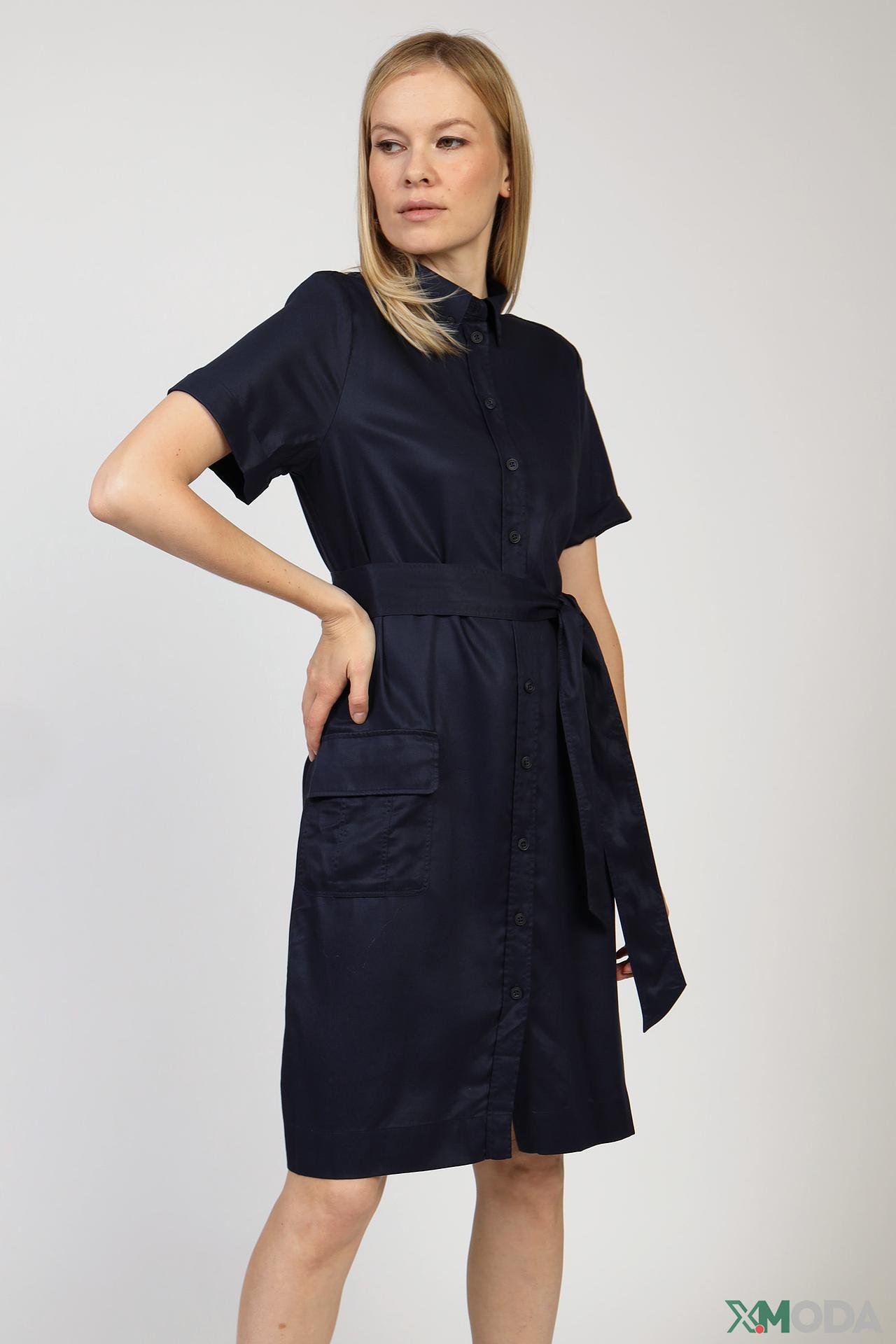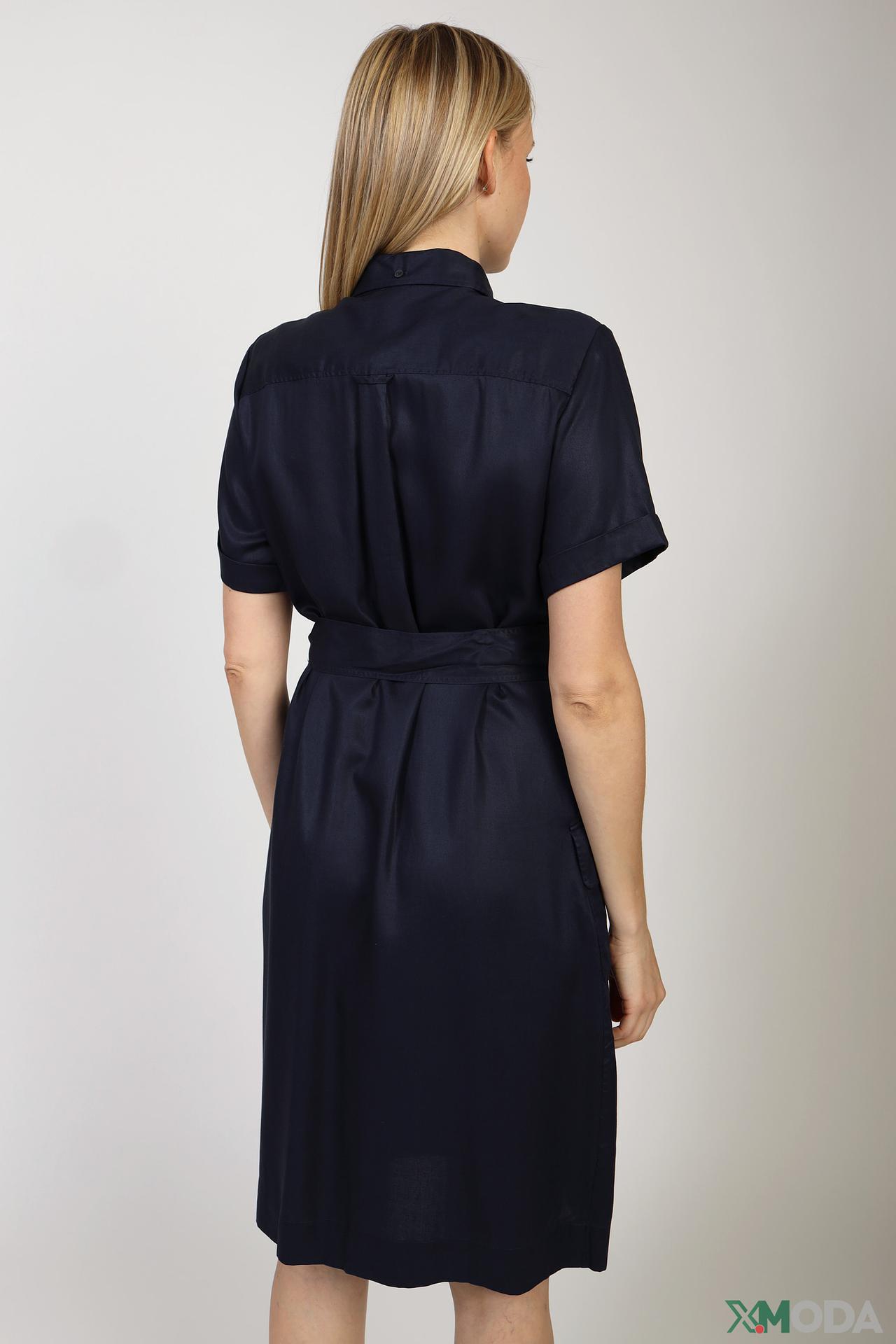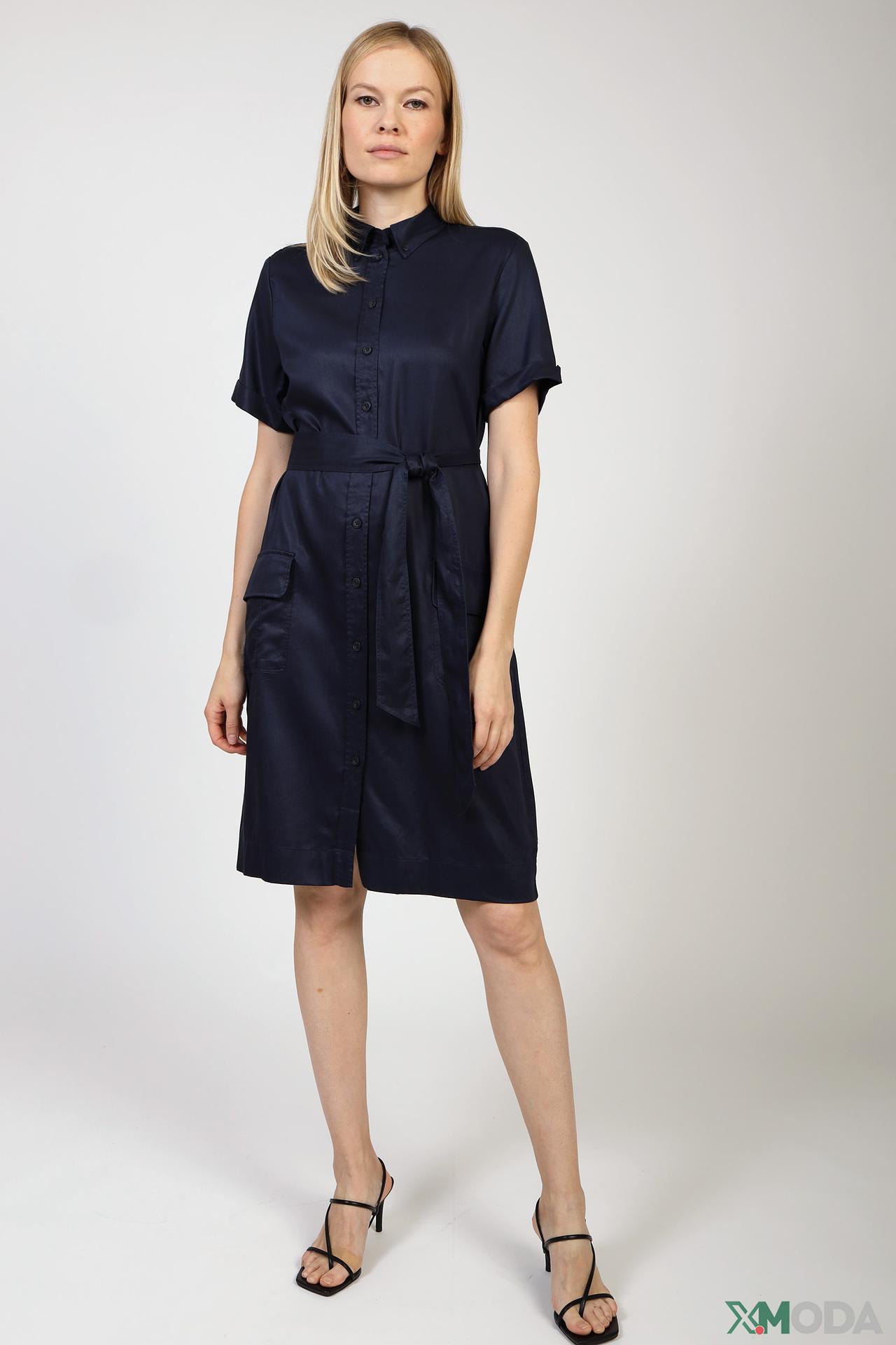 Классическое женское платье Gant из 100% луоселла представляет собой идеальное сочетание комфорта и стиля. Модель силуэта рубашки-платья с отложным воротником и короткими рукавами подходит для различных случаев, от офисных будней до расслабленных выходных. Насыщенный синий цвет придает изделию универсальность, позволяя легко комбинировать его с аксессуарами.