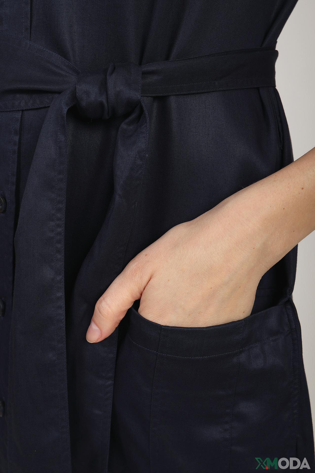 - Продуманный дизайн: Прямой крой с функциональной застежкой на пуговицы по всей длине и удобные накладные карманы подчеркивают практичность и универсальность модели. Отложной воротник и короткие рукава придают платью завершенный классический вид.
