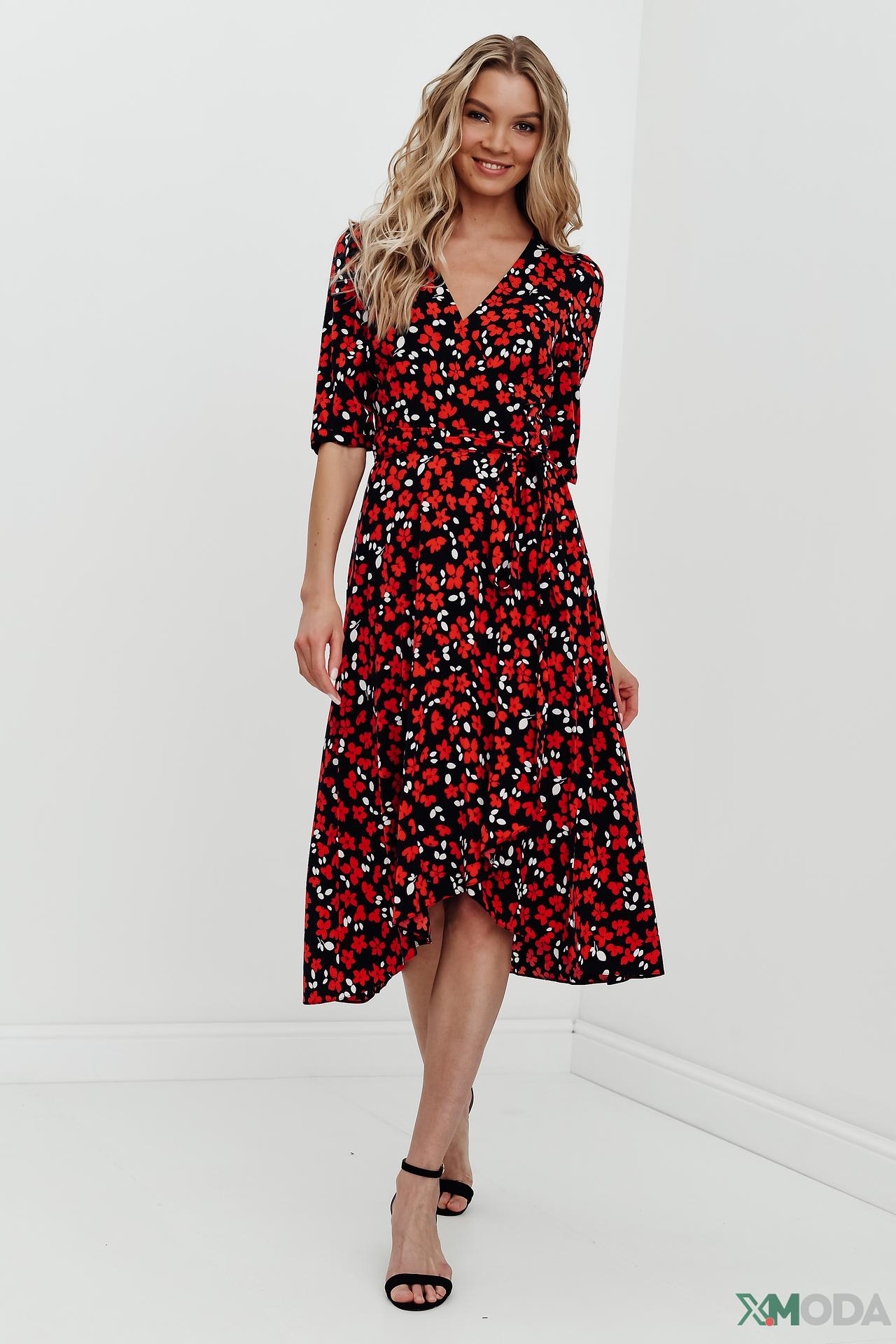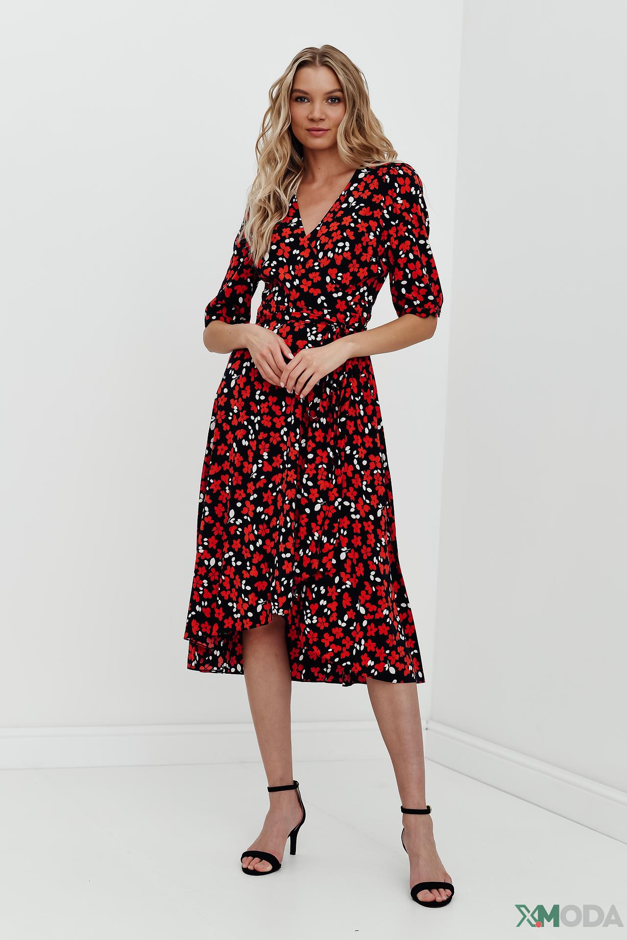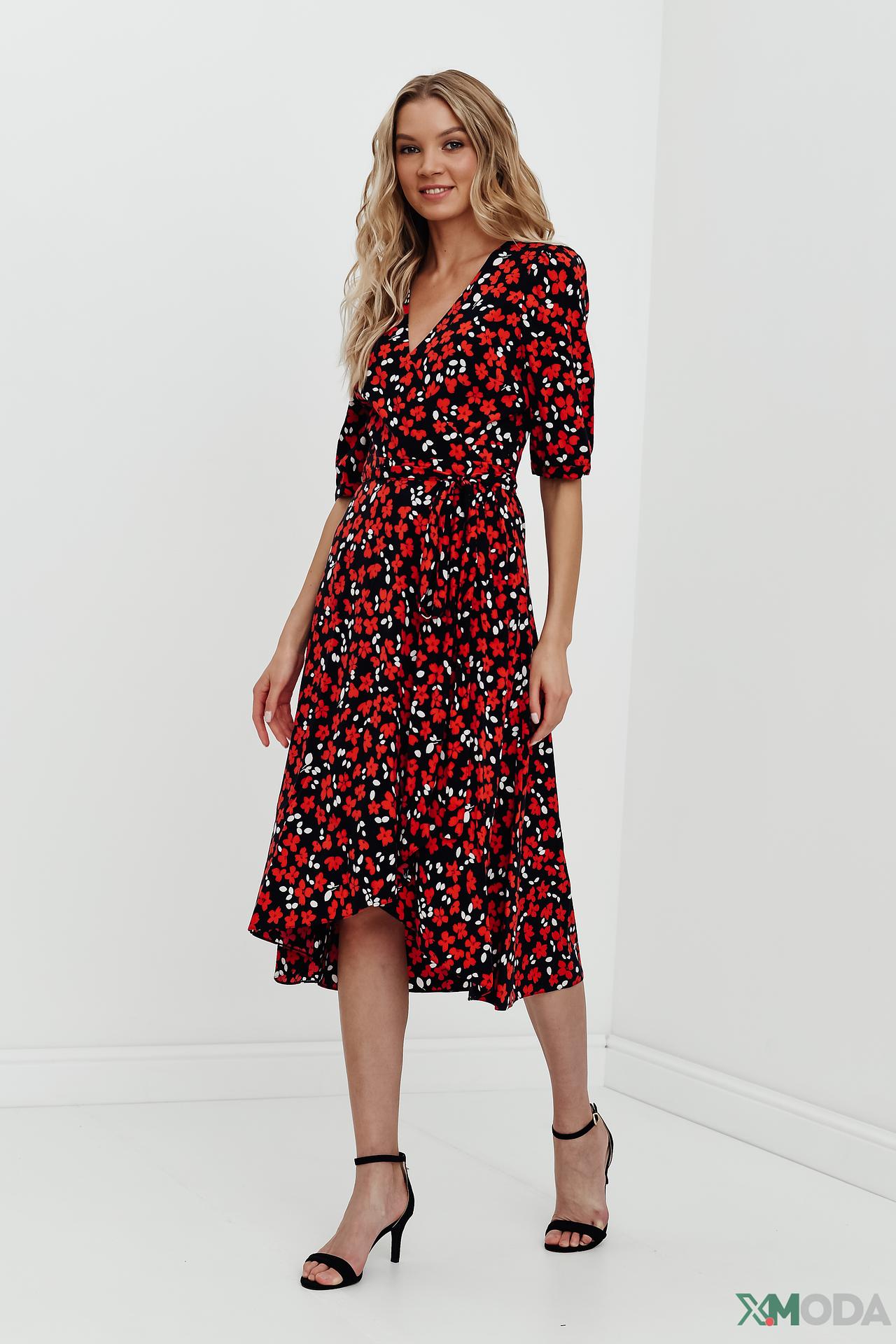 - Дизайн. Яркий цветочный принт придает платью особую привлекательность.