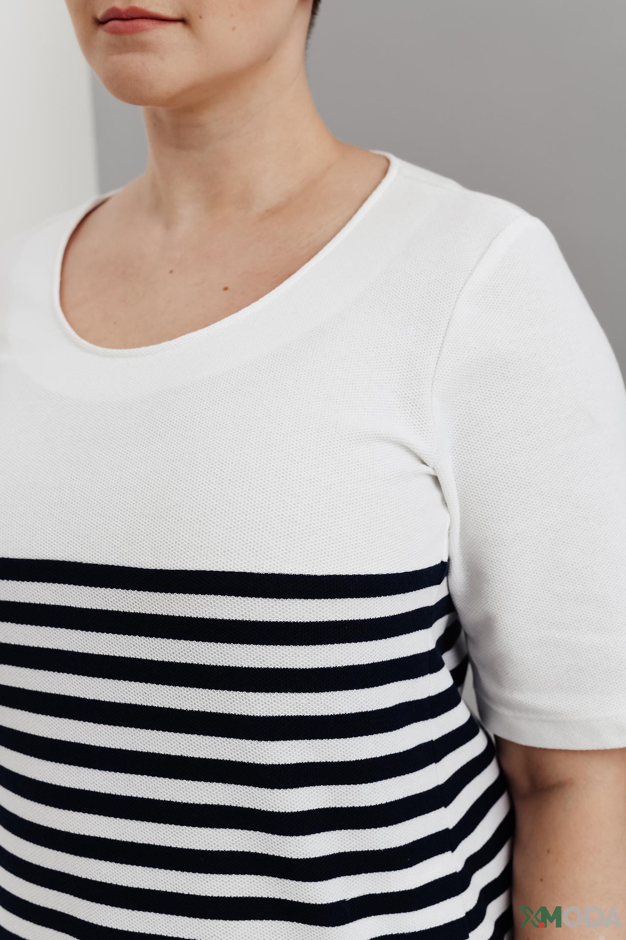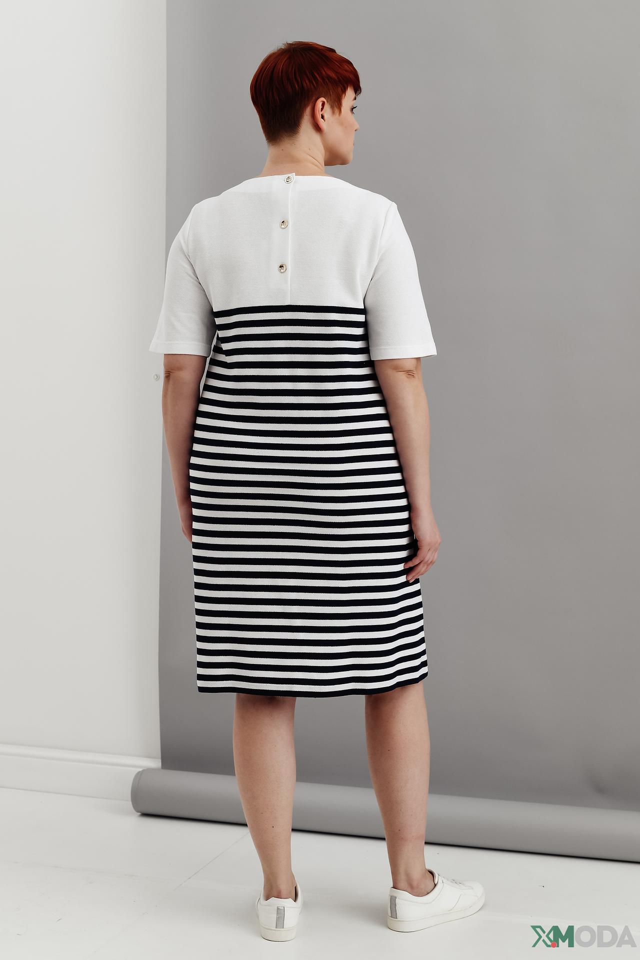 - Дизайн: Платье имеет классический крой и актуальный полосатый принт.