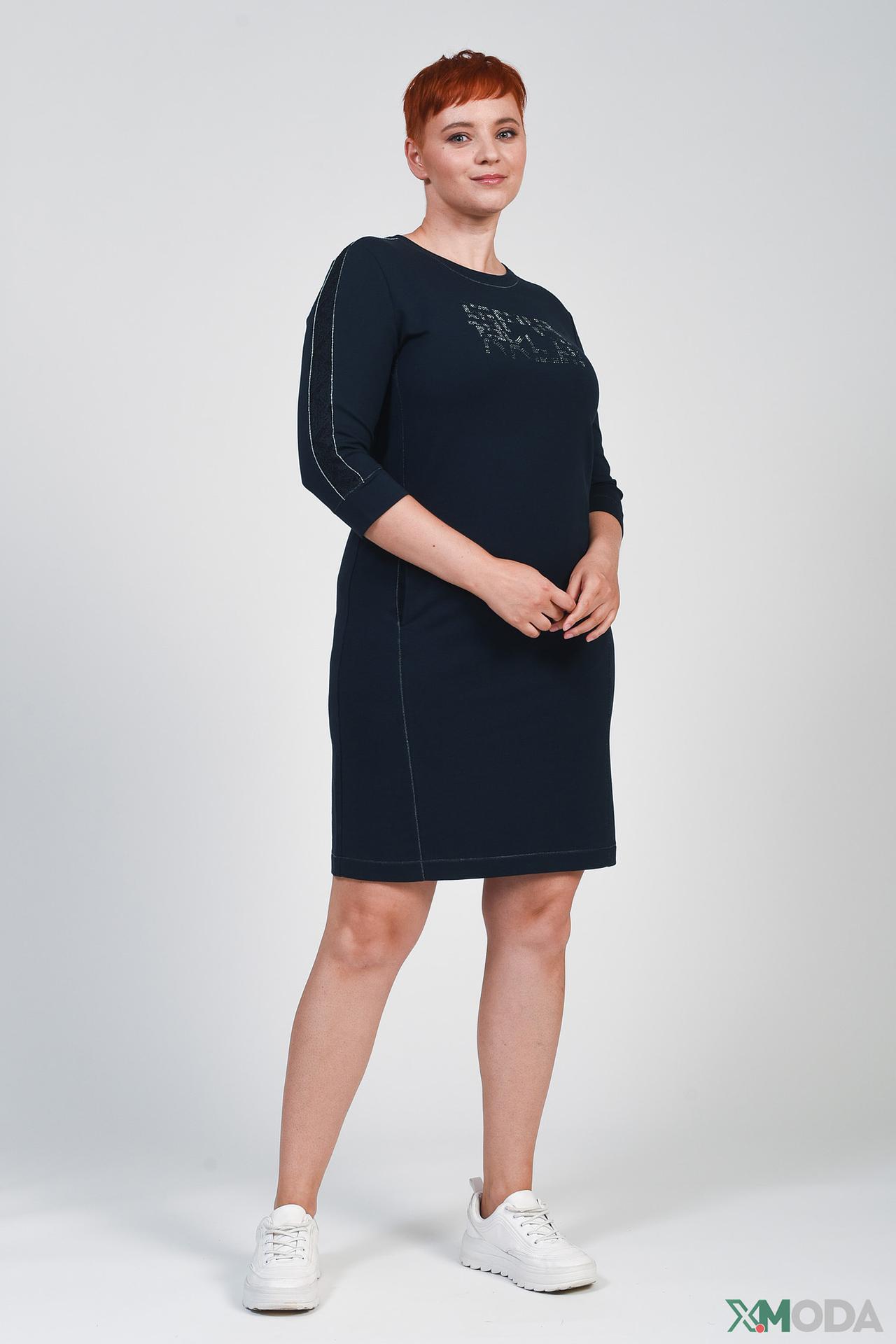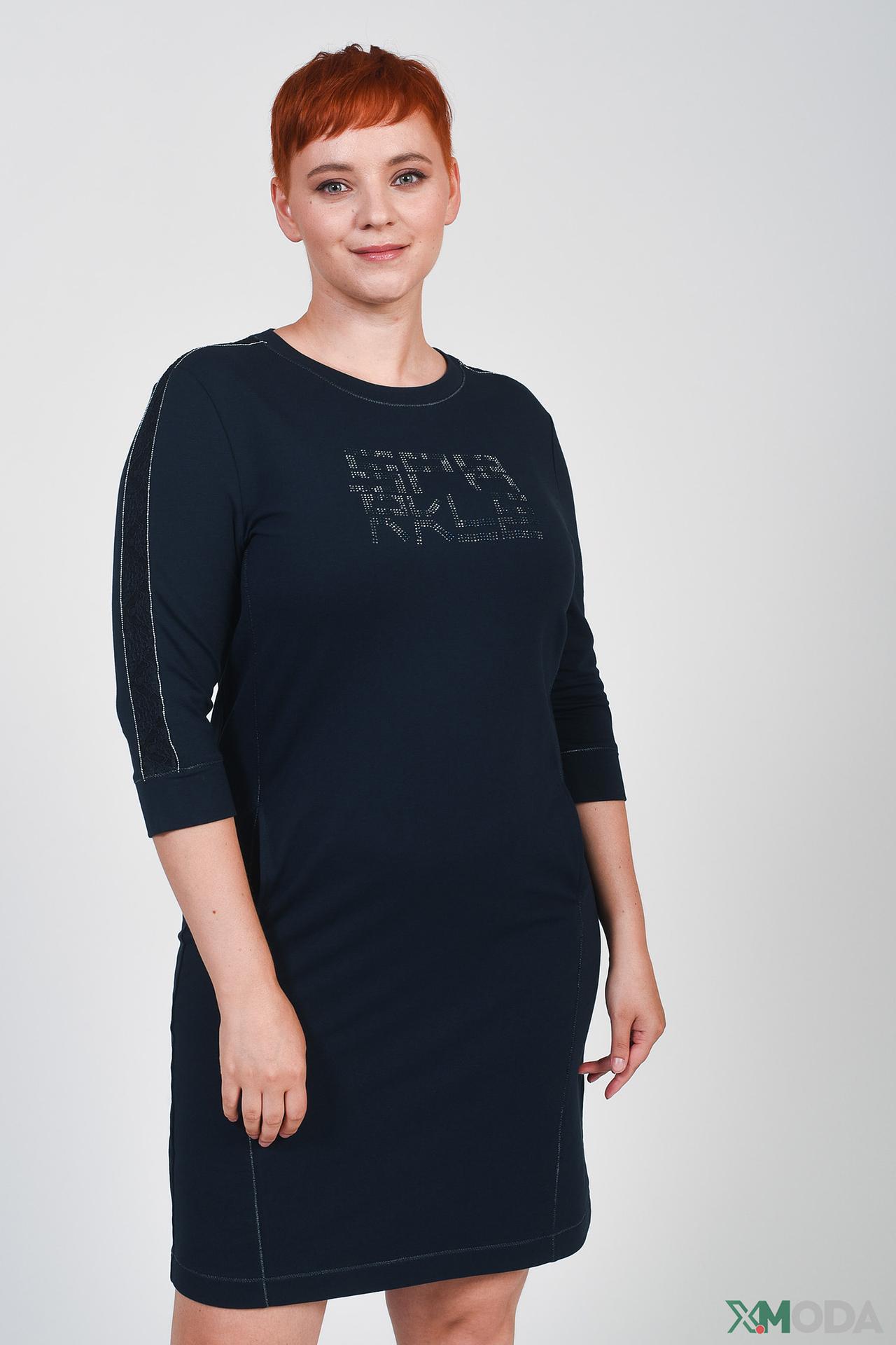 - Детали: Оригинальная надпись, выполненная из мелких страз, украшает переднюю часть платья. Тонкая контрастная отстрочка по боковым швам и на рукавах придает изделию завершенный вид.