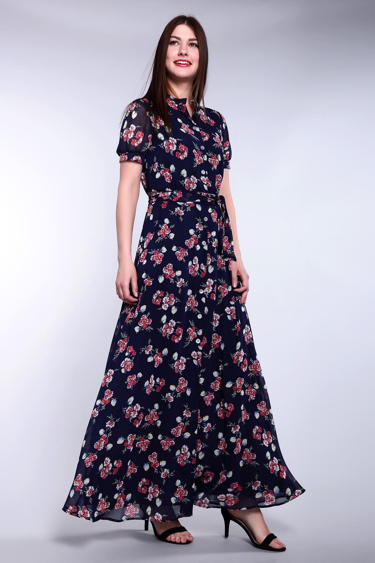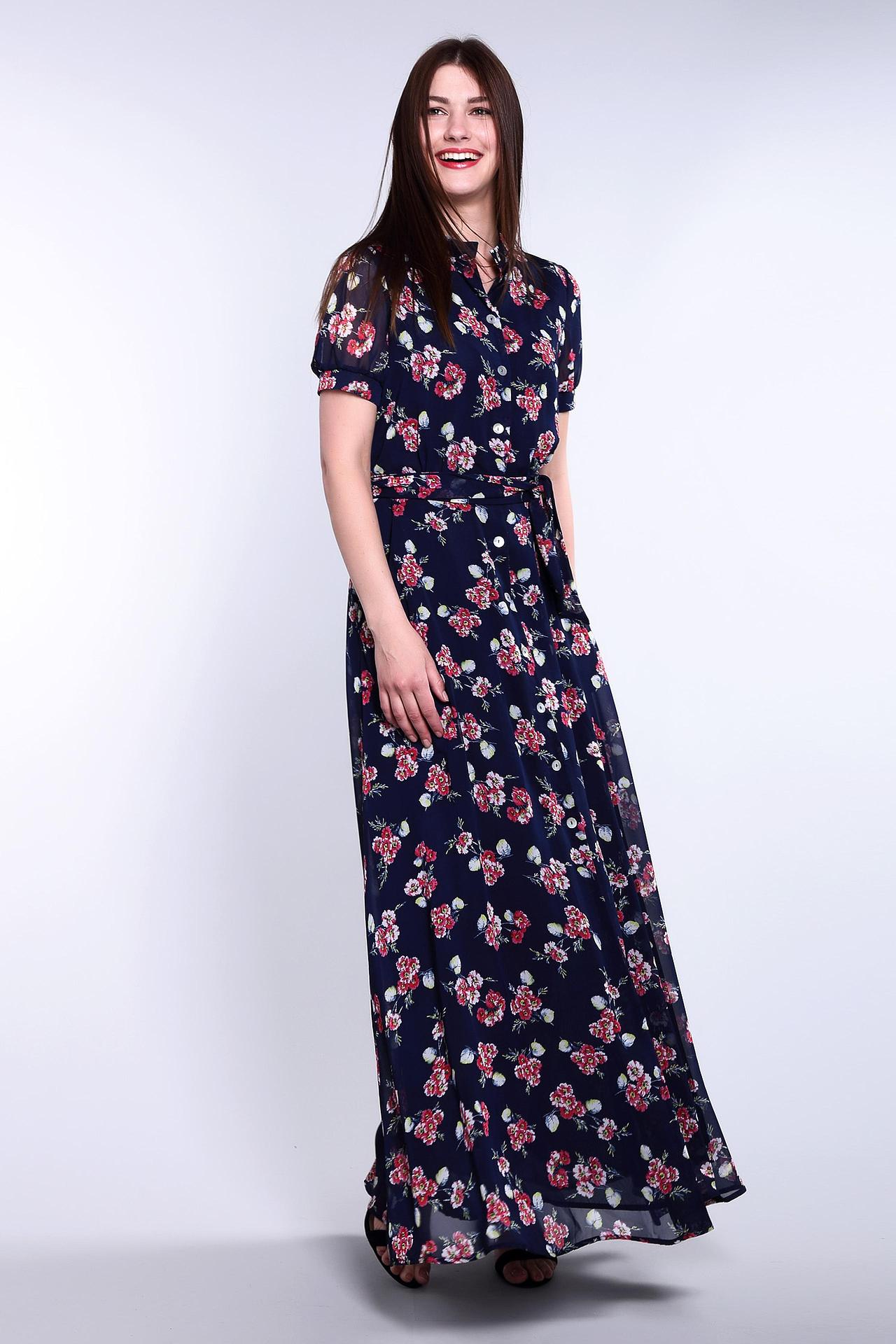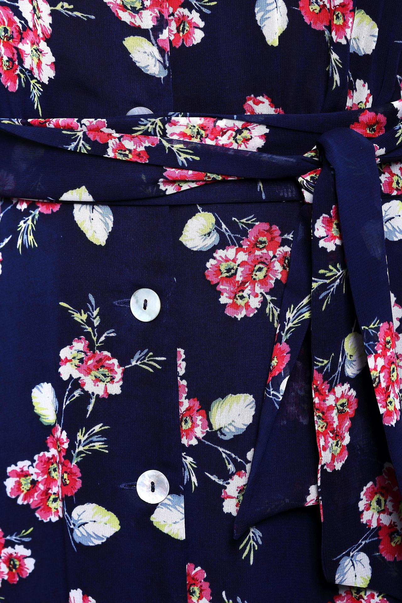- Принт: Яркий цветочный узор на глубоком синем фоне придает платью особое очарование и делает его уместным как для повседневного гардероба, так и для особых случаев.