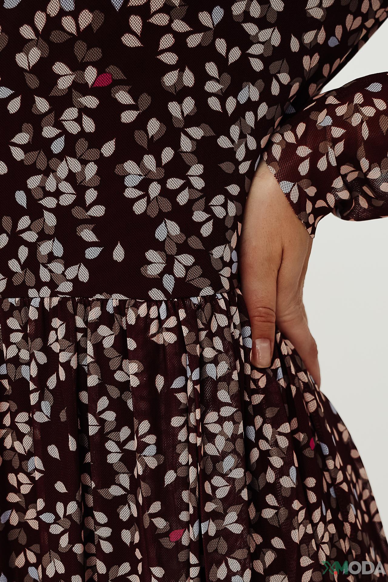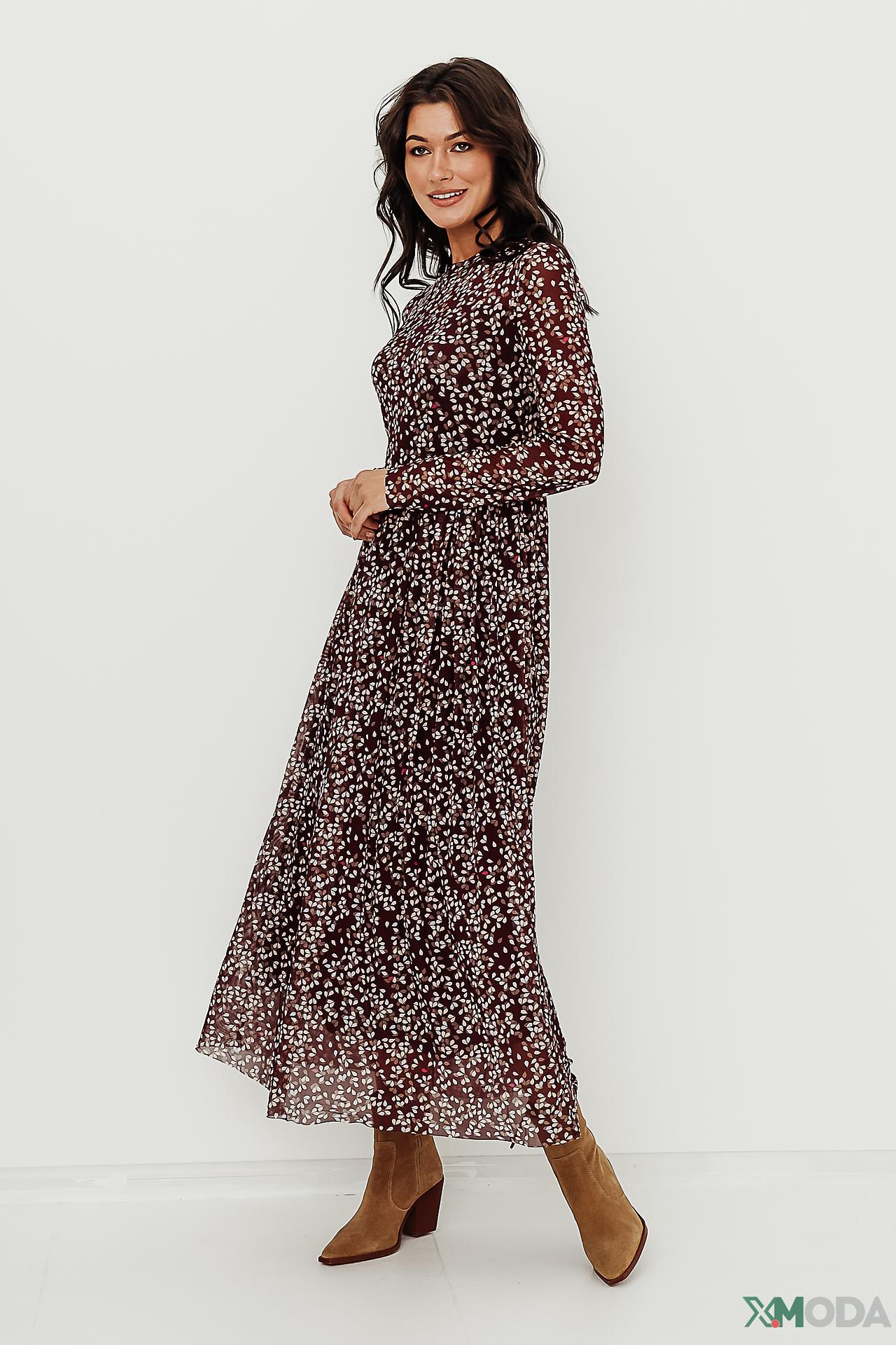 - Элегантный дизайн: Платье украшено нежным цветочным принтом, который придает образу легкость и романтичность. Прозрачные длинные рукава добавляют воздушности и стиля.
