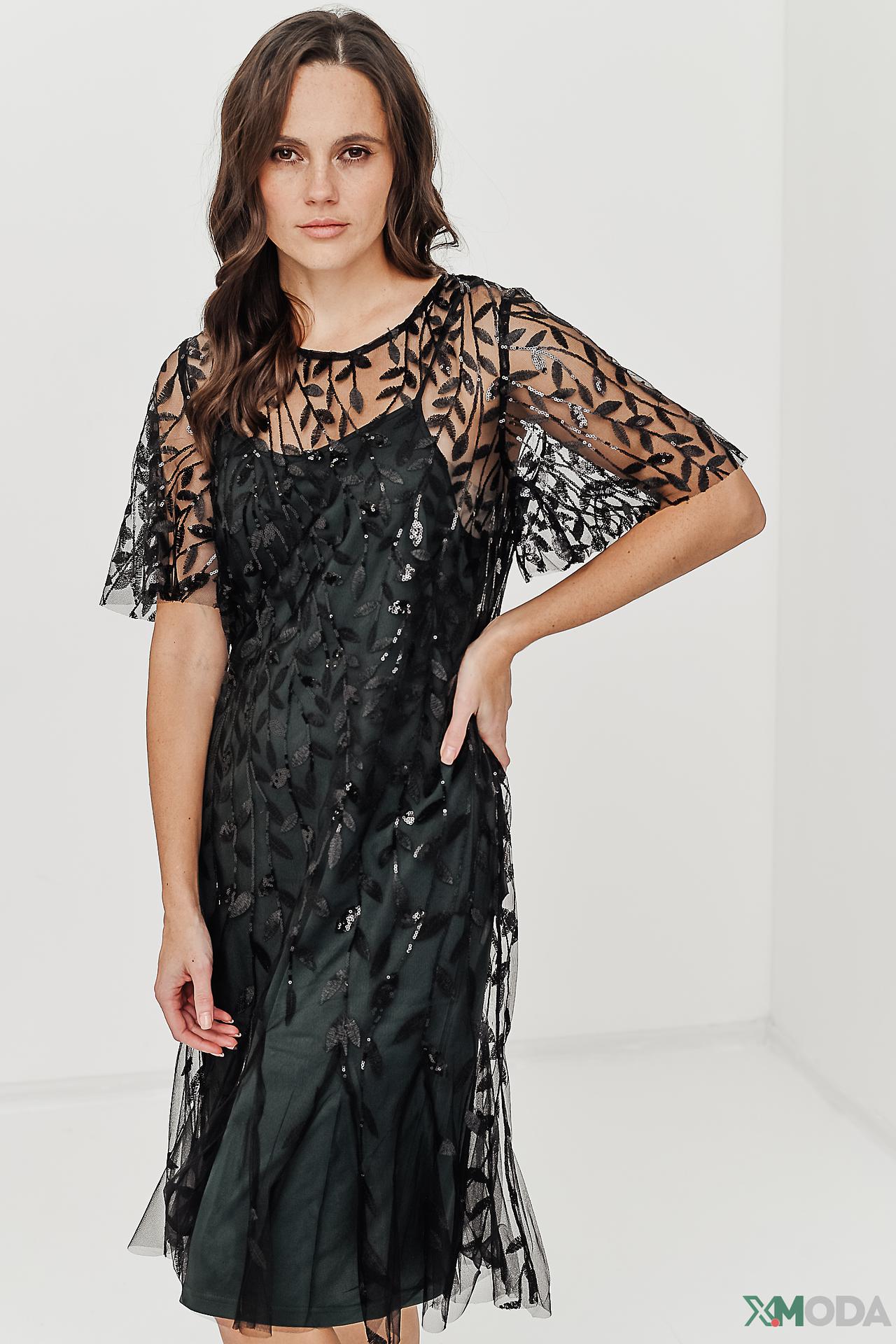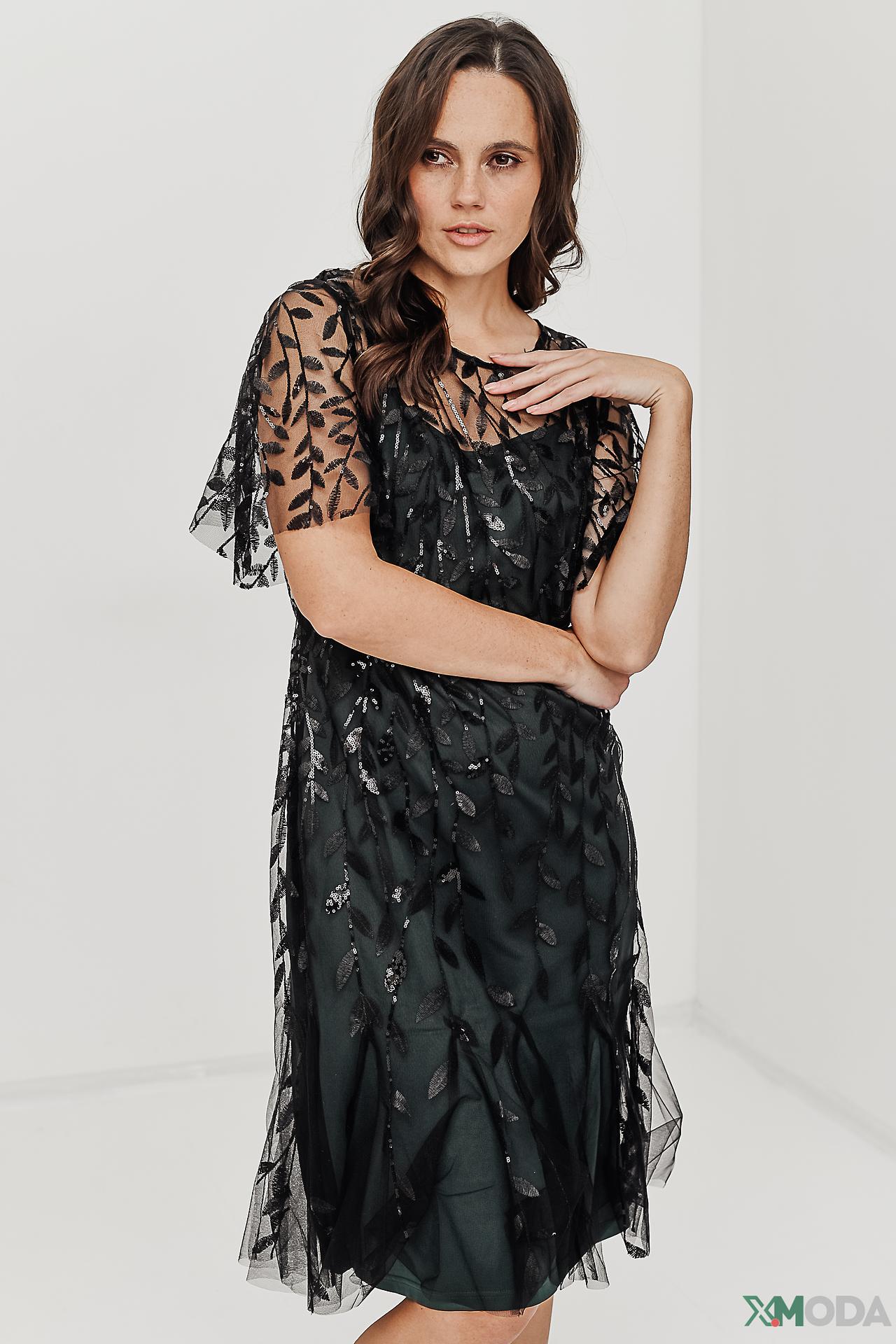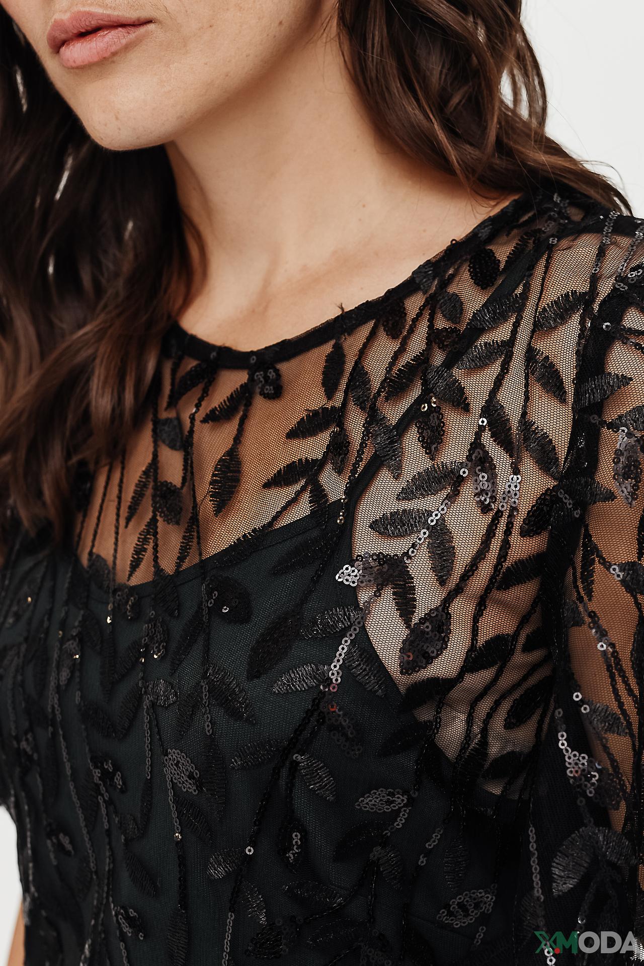 Прозрачный верхний слой с вышивкой в виде листьев и мерцающими пайетками придает платью роскошный и праздничный вид. Это идеальный выбор для создания неповторимого вечернего образа. - Универсальность стиля