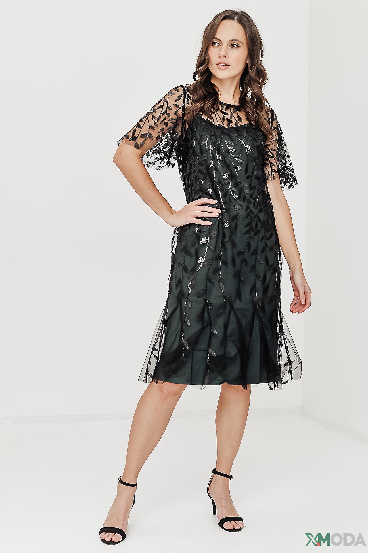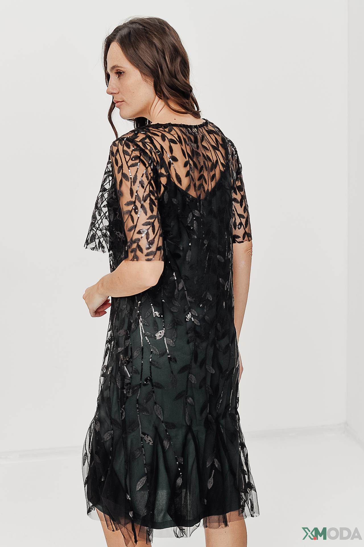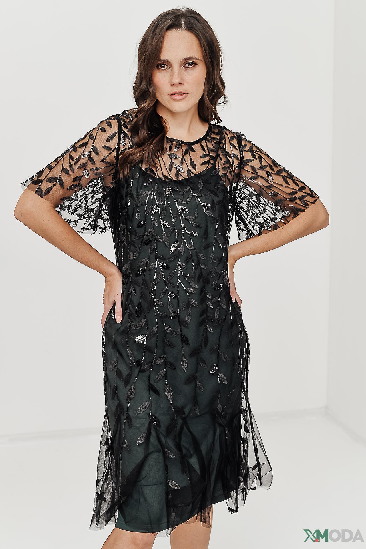 Прозрачный верхний слой с вышивкой в виде листьев и мерцающими пайетками придает платью роскошный и праздничный вид. Это идеальный выбор для создания неповторимого вечернего образа. - Универсальность стиля