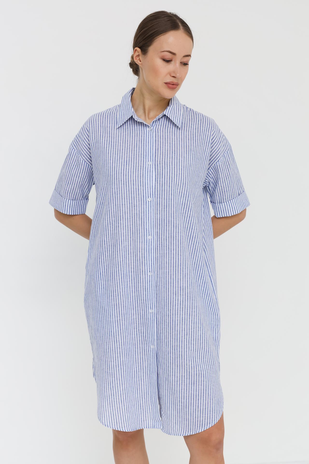 Платье рубашка UNQ в полоску из хлопка и льна