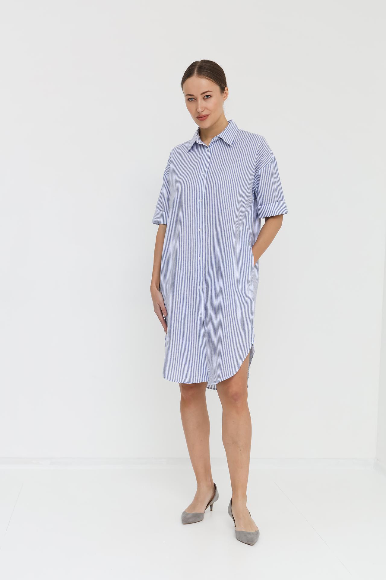Элегантное платье рубашка от UNQ в полоску – идеальный выбор для создания непринужденного и стильного образа. Натуральный состав (45% хлопок, 55% лен) обеспечивает комфорт и легкость в жаркую погоду. Платье отлично подойдет как для повседневной носки, так и для особых случаев.