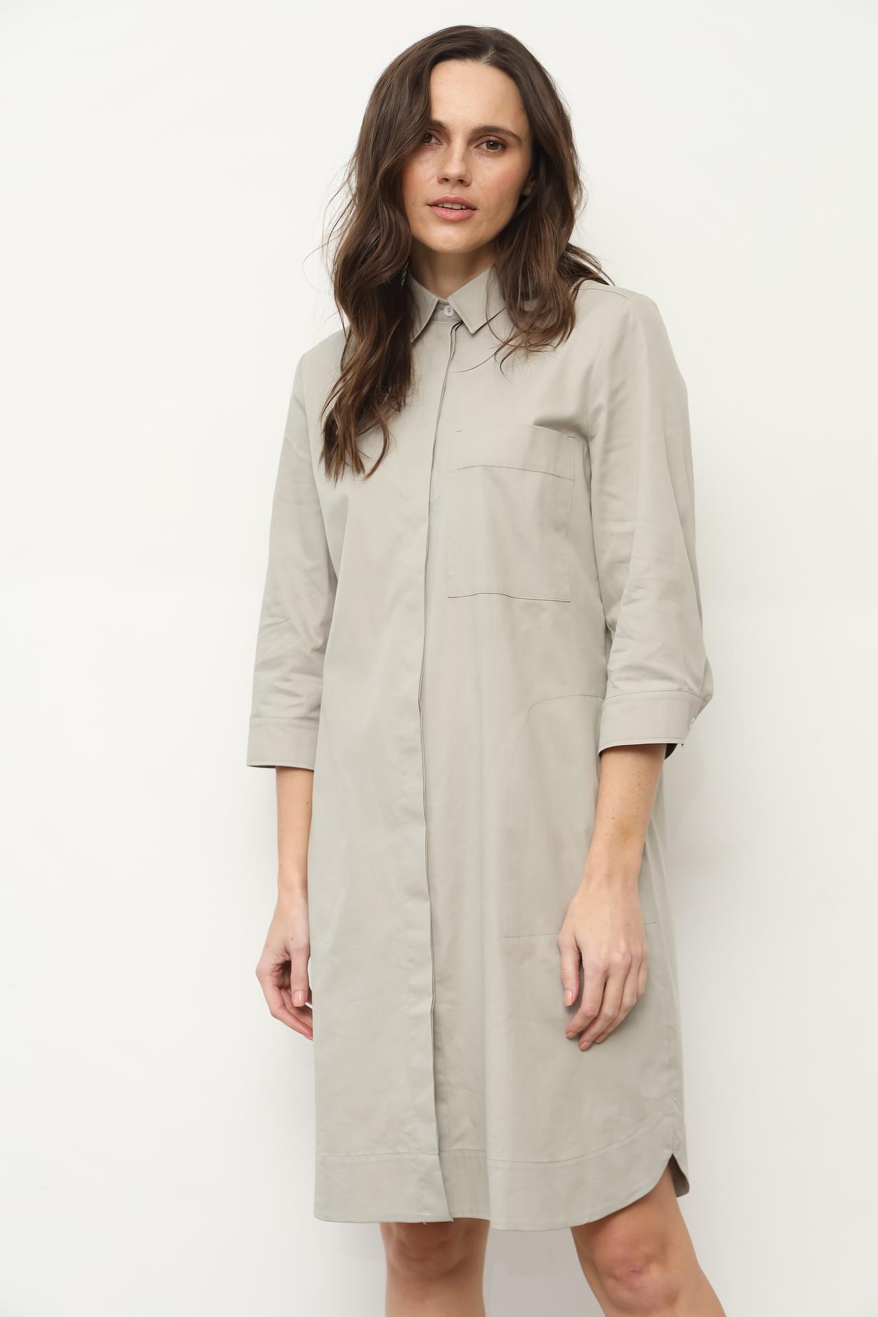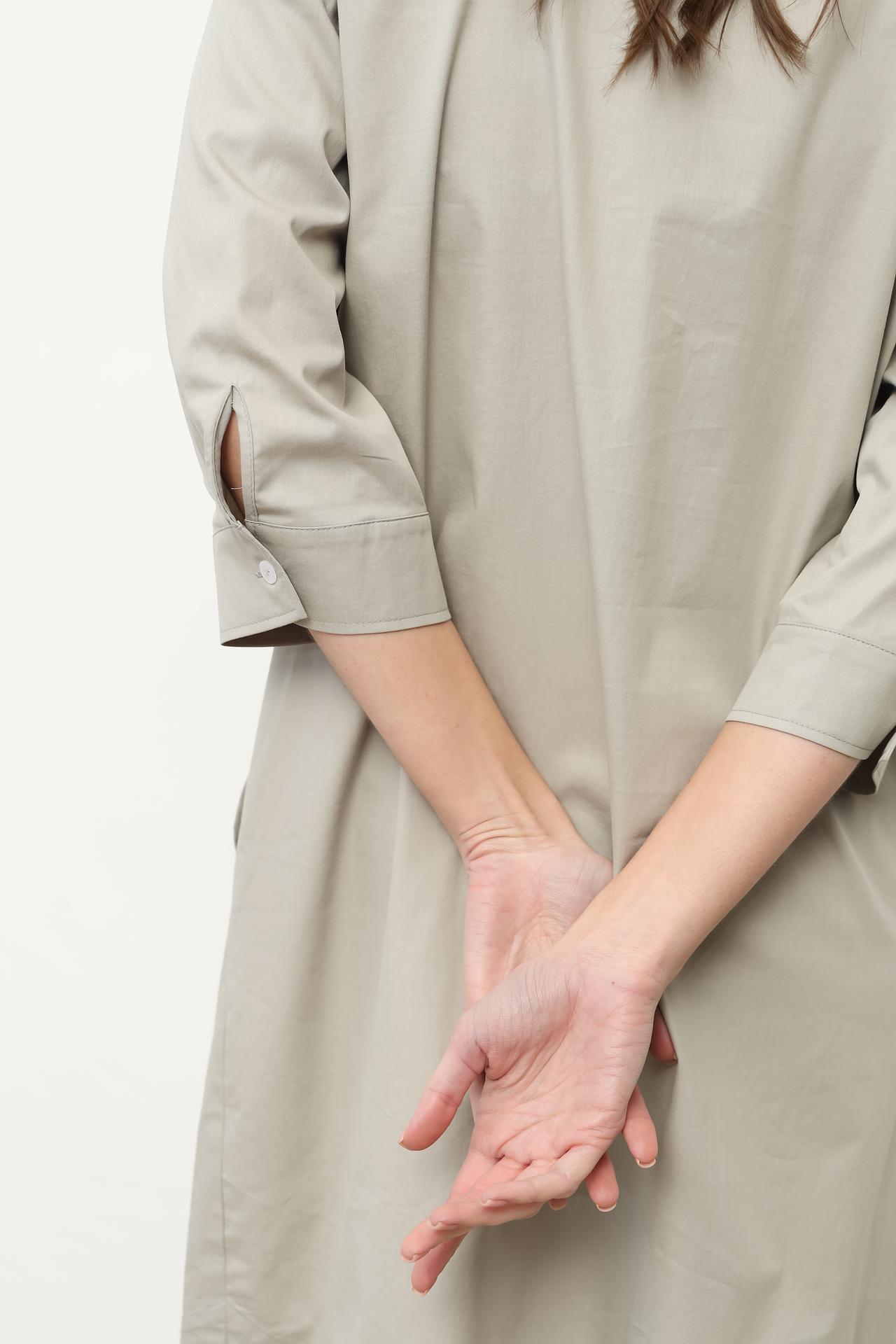 Платье-рубашка в цвете хаки – универсальный элемент гардероба для создания стильных и комфортных образов. Прямой крой обеспечивает свободу движений и подходит для любого типа фигуры. Накладные карманы добавляют функциональности и непринужденности. Рукава 3/4 можно регулировать по длине, что делает платье подходящим для разных сезонов.