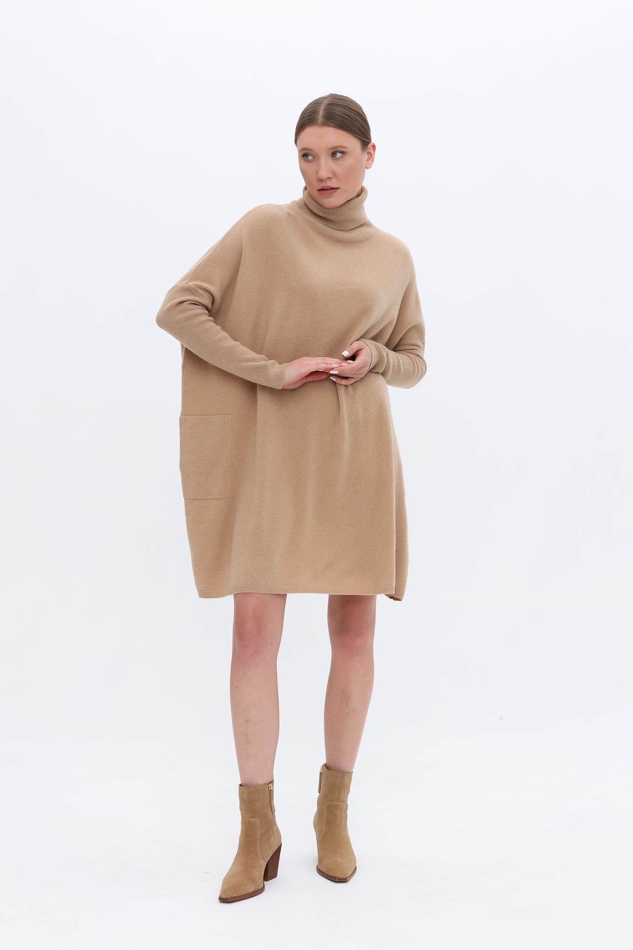 Платье Catnoir шерстяное вязаное оверсайз бежевое с карманами