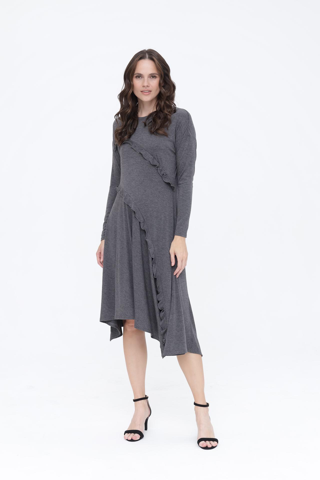 Элегантное платье Beatris в сером цвете – это сочетание комфорта и стиля. Асимметричный крой и деликатные рюши по диагонали создают современный и женственный образ. Платье идеально подойдет для повседневных выходов и особых случаев, подчеркивая вашу индивидуальность.