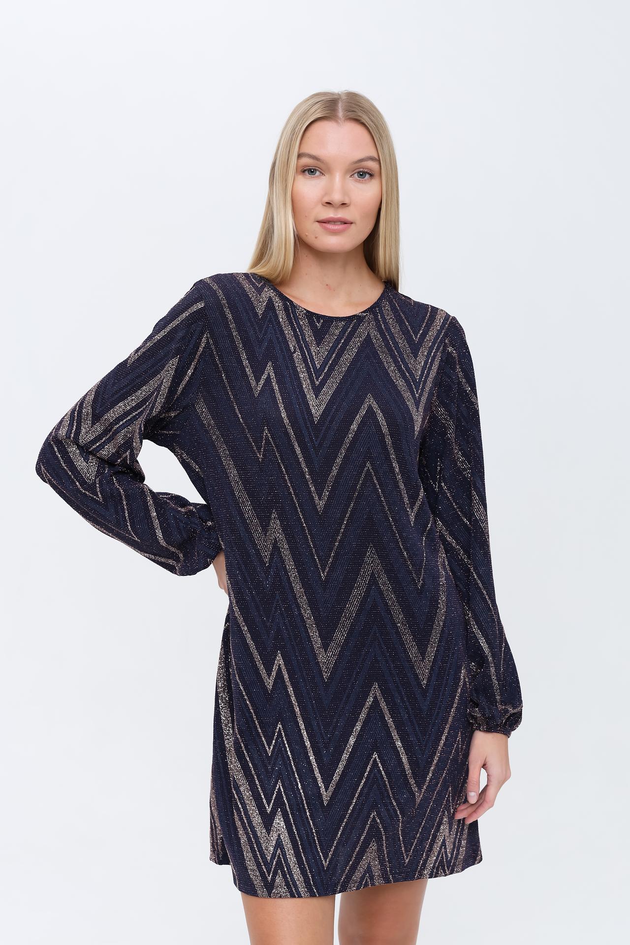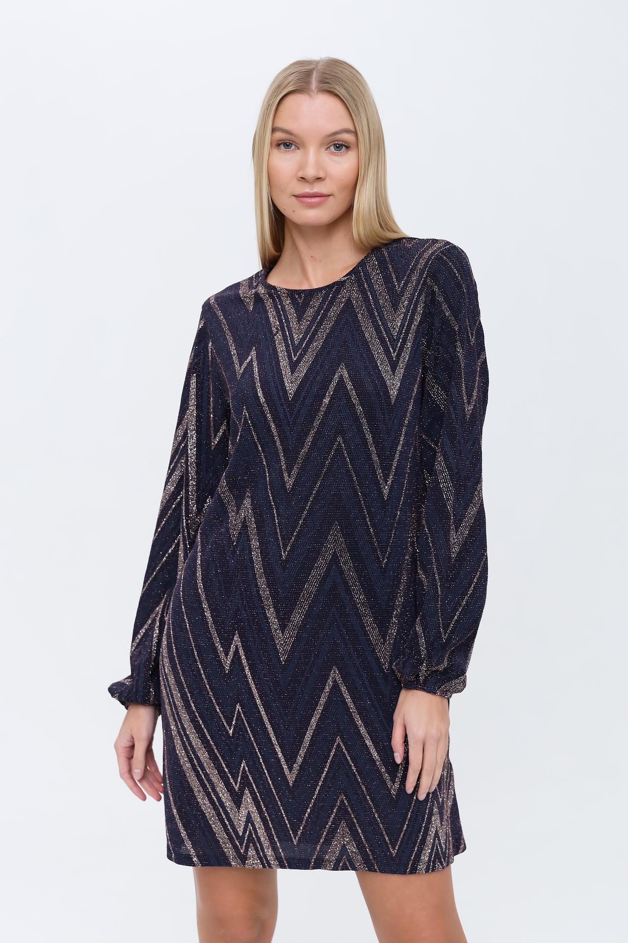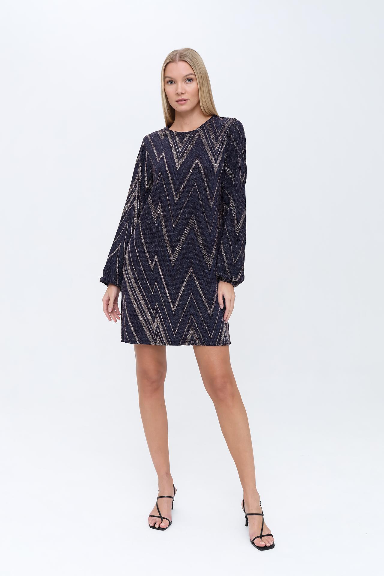 Платье обладает приталенным силуэтом, который идеально подчеркивает фигуру. Уникальный дизайн с золотистым узором добавляет шарма и делает его идеальным выбором для любого случая.
