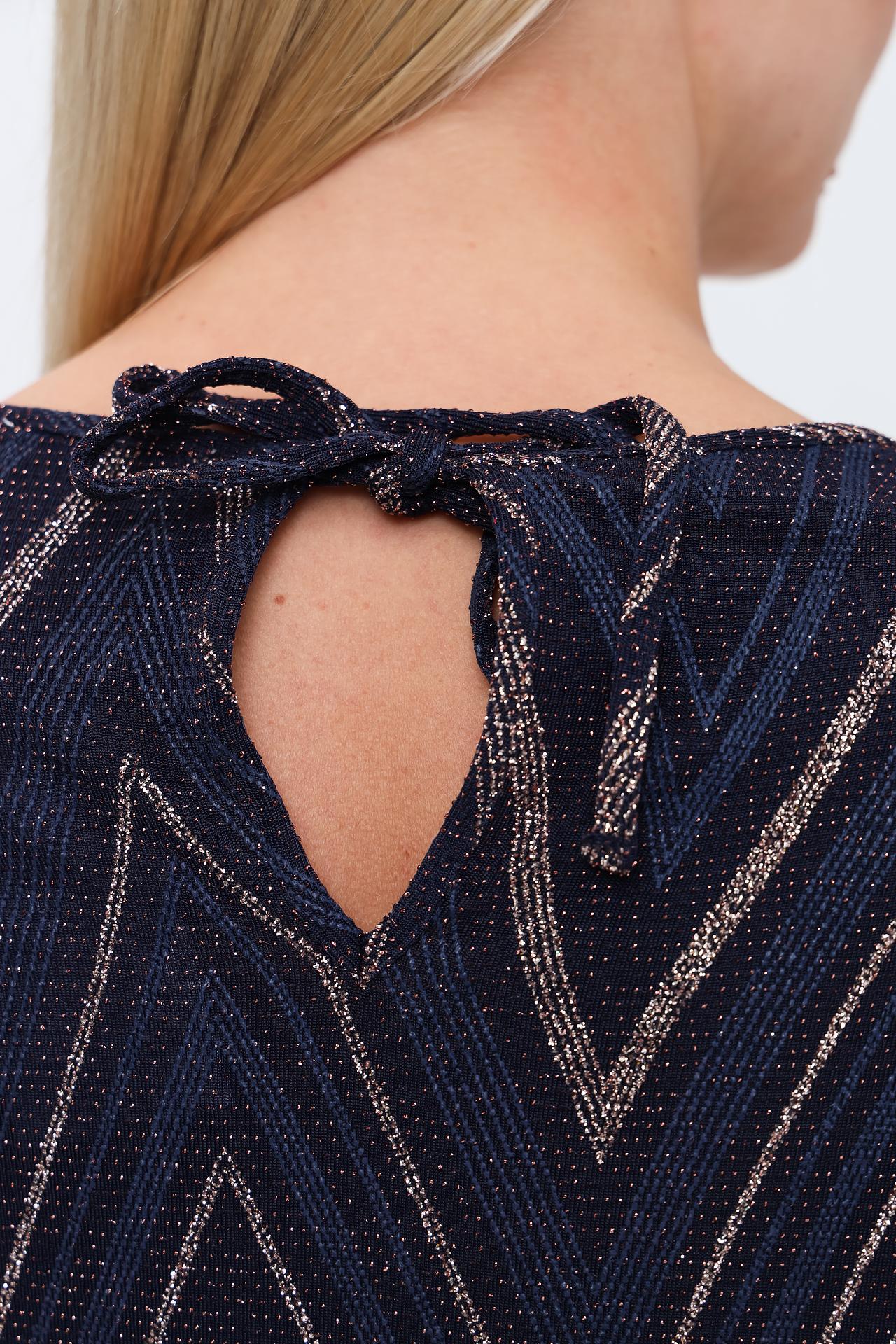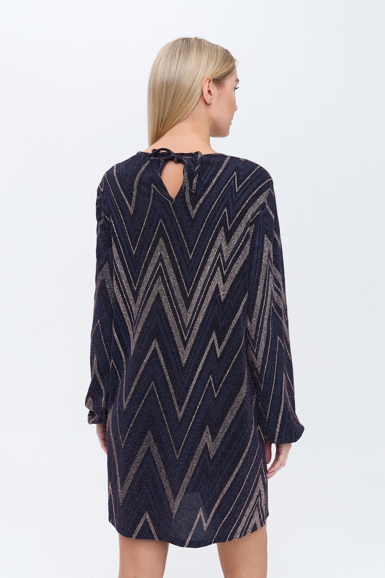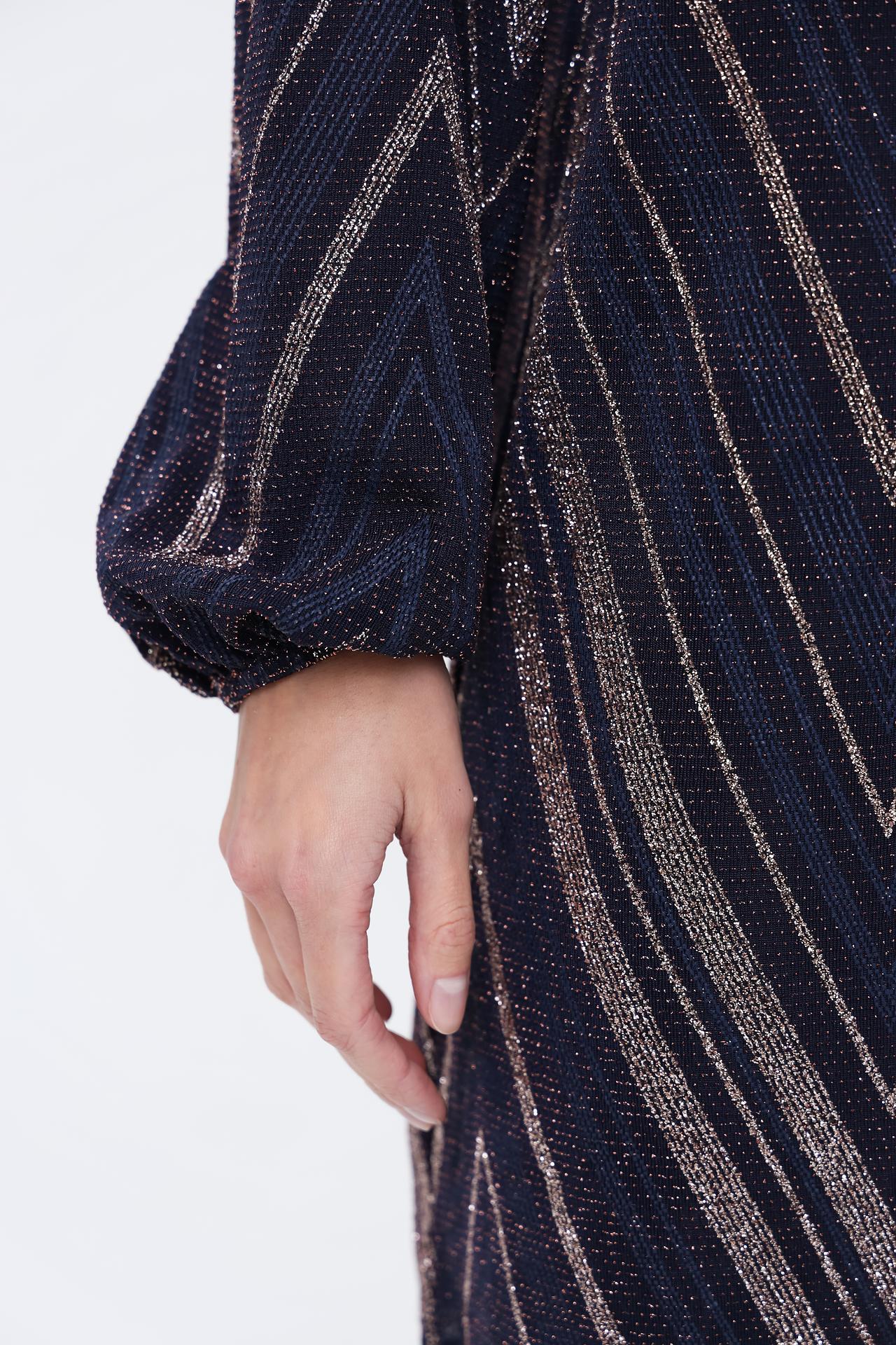 Платье обладает приталенным силуэтом, который идеально подчеркивает фигуру. Уникальный дизайн с золотистым узором добавляет шарма и делает его идеальным выбором для любого случая.