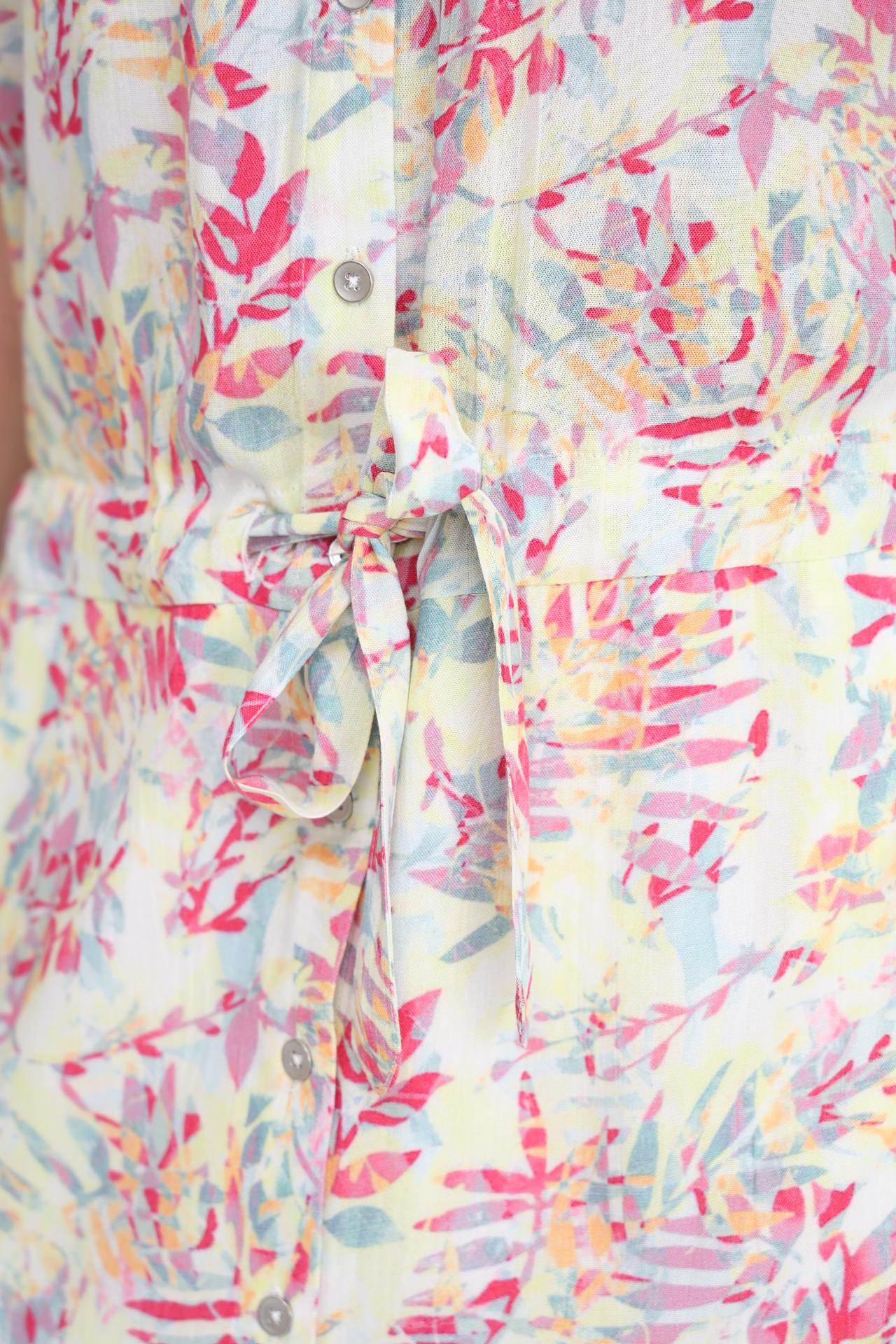 Нежный цветочный принт добавляет образу романтичности и женственности. Модель дополнена поясом, который подчеркивает талию и создает элегантный силуэт. Это платье идеально подходит для создания непринужденных летних образов.
