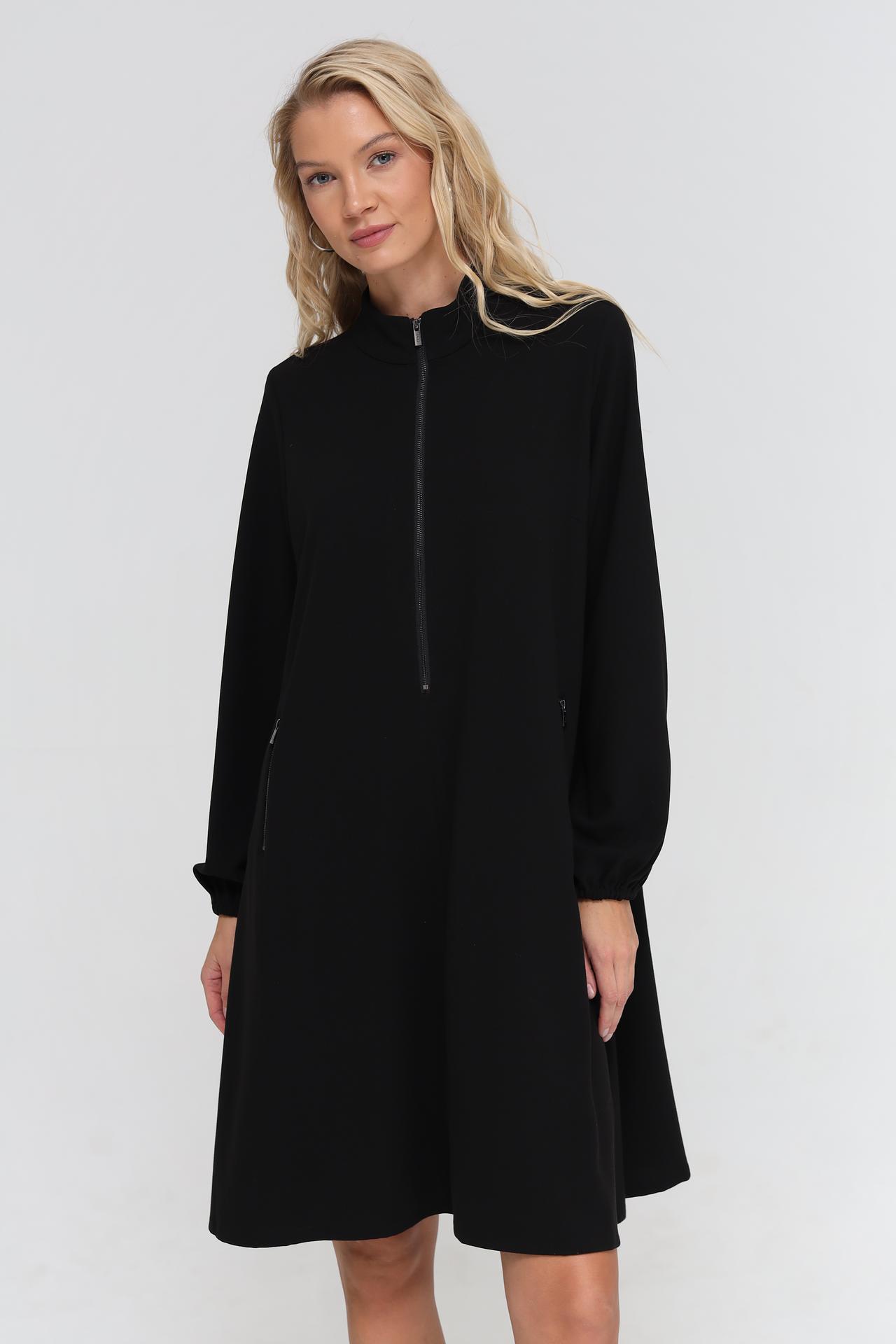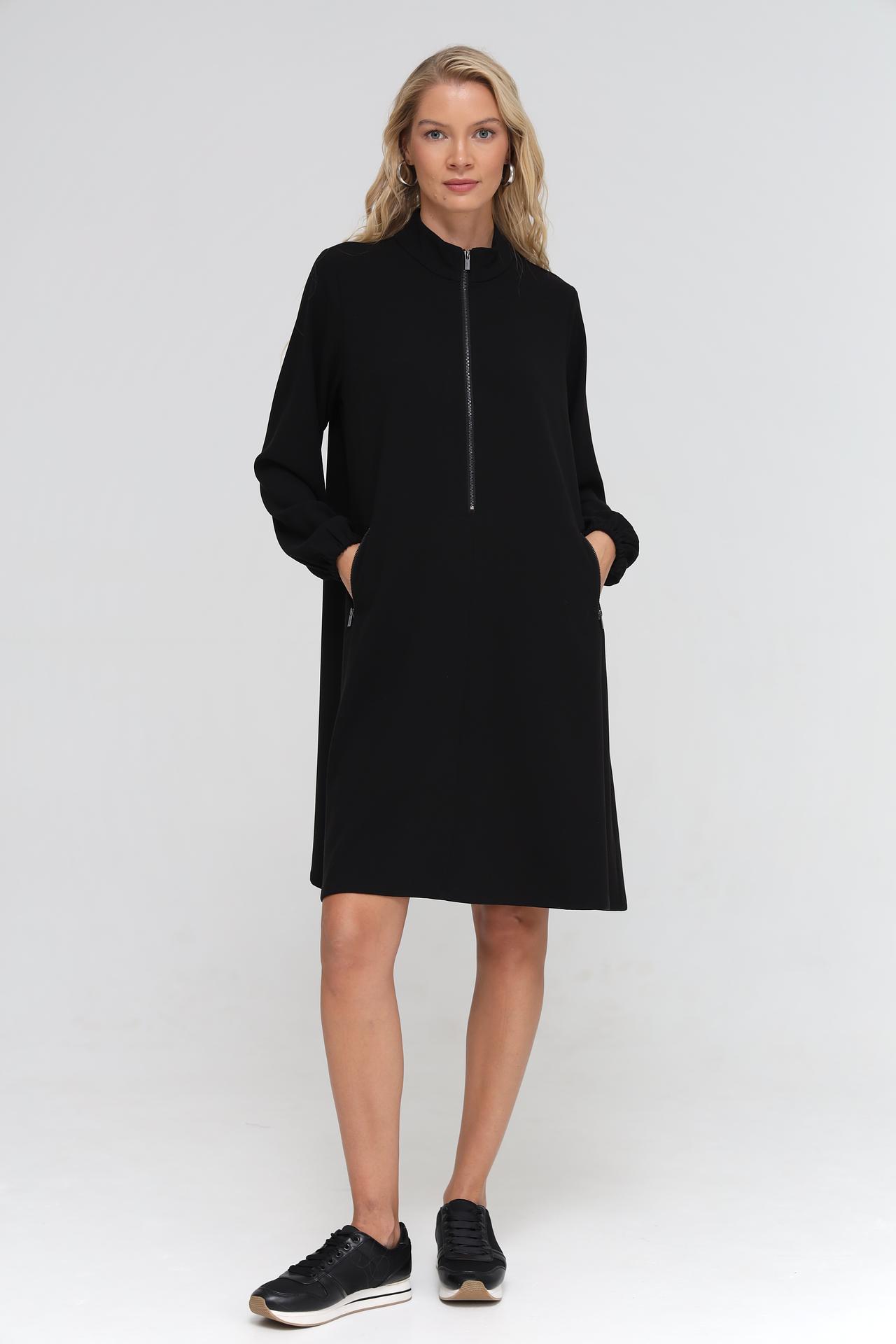 - Дизайн: Лаконичный крой А-силуэта, воротник-стойка и удобная молния спереди придают платью современный и элегантный вид. Функциональные карманы добавляют практичности.
