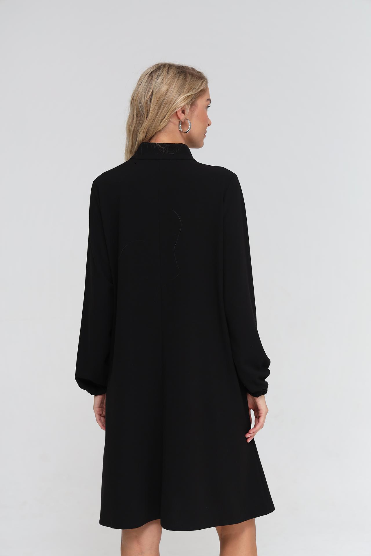 - Универсальность: Чёрный цвет и классический дизайн позволяют легко адаптировать платье под любой стиль – от кэжуал до более формального.