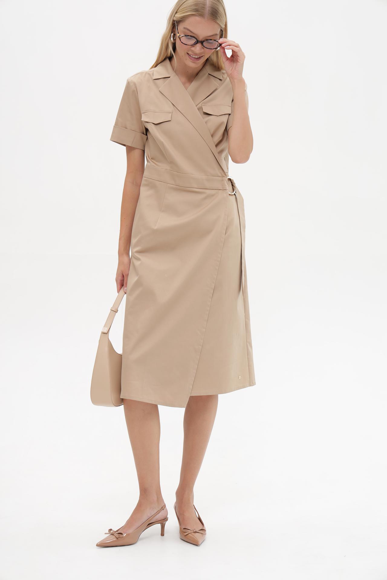 Платье Betty and Co бежевое, на запах, с карманами