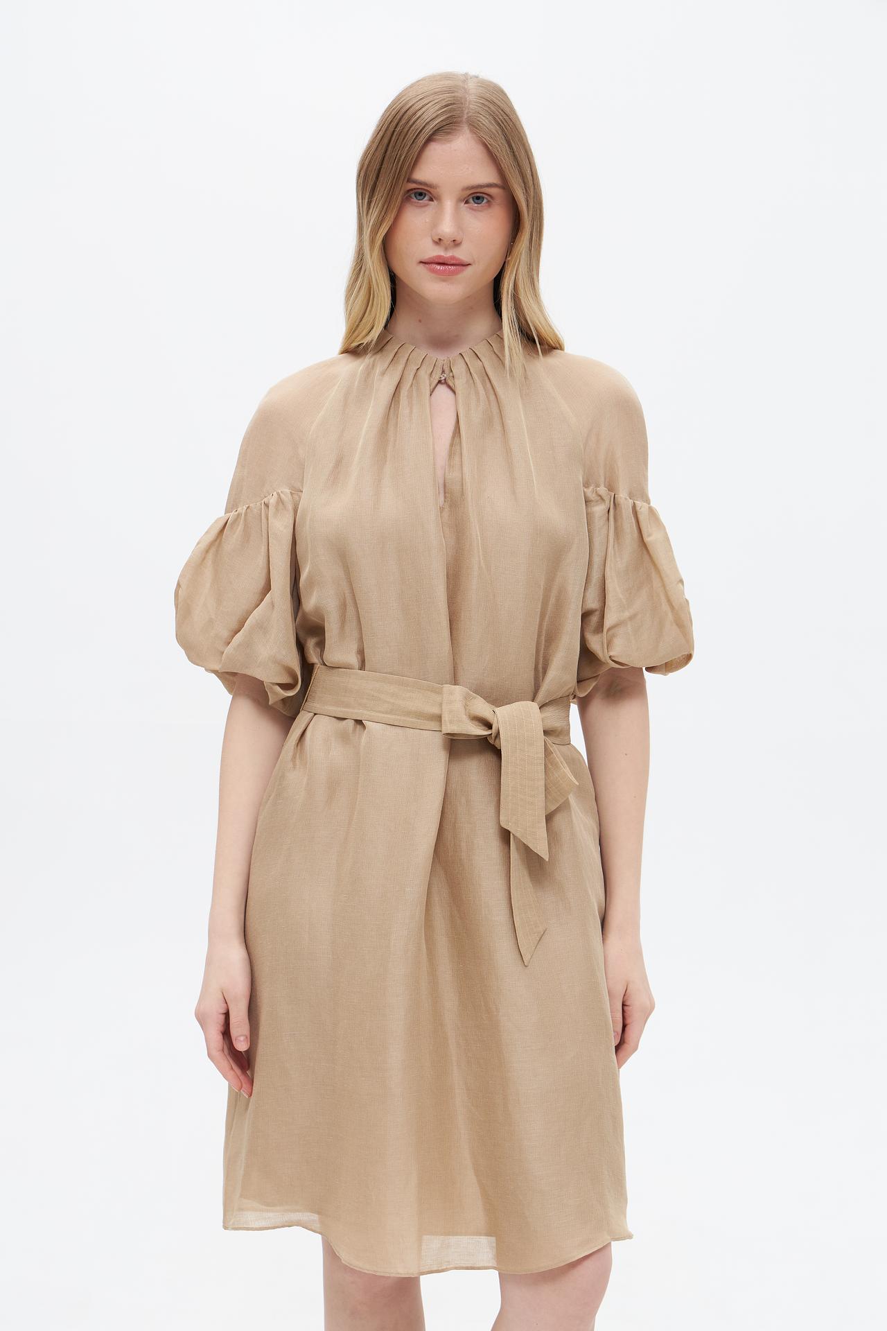 Платье Marc Cain бежевое с поясом из льна и шелка