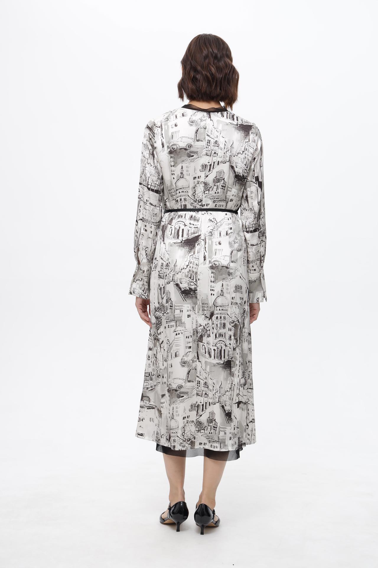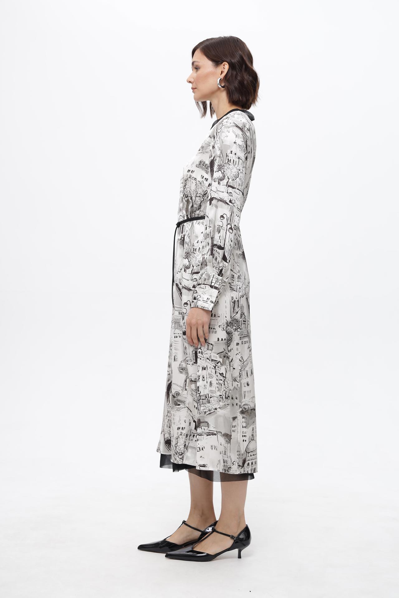 - Универсальность: Это платье легко впишется в ваш гардероб, сочетаясь как с элегантной обувью на каблуке, так и с более расслабленными вариантами. Оно подойдет для офиса, вечернего мероприятия или прогулки по городу.