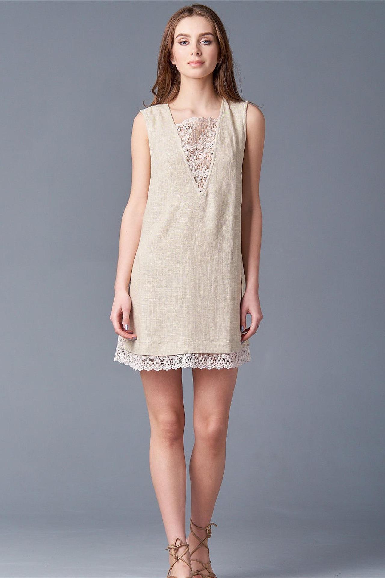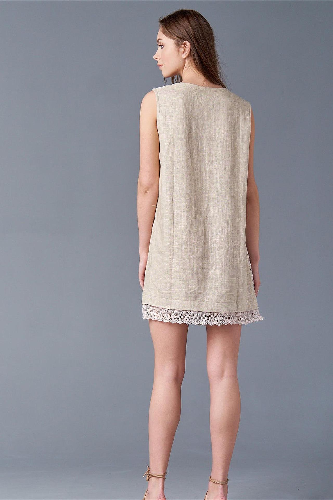 Приятное легкое летнее платье из натурального сырья. Присутствует клинообразна вышивка на спинке и на конце юбки. Однотонное. Длина: мини. Подходит для жаркой погоды.