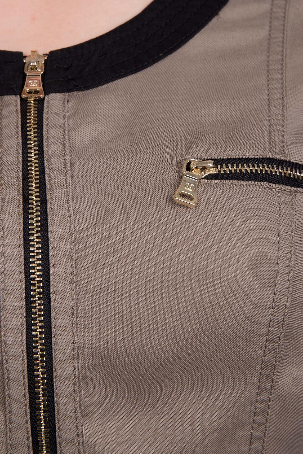 - Цветовая гамма: Универсальный бежевый цвет с контрастной черной окантовкой горловины и золотой фурнитурой.