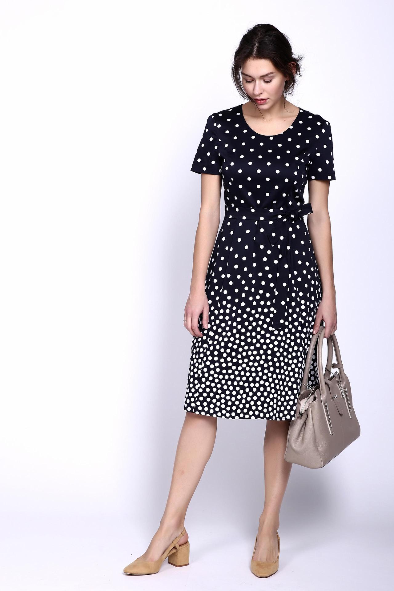 Элегантное платье Gerry Weber, выполненное в классическом стиле, станет идеальным дополнением вашего гардероба. Принт в горошек, переходящий от мелкого к более крупному, придает изделию особый шарм и женственность. Платье прекрасно подойдет как для повседневного образа, так и для особого случая.