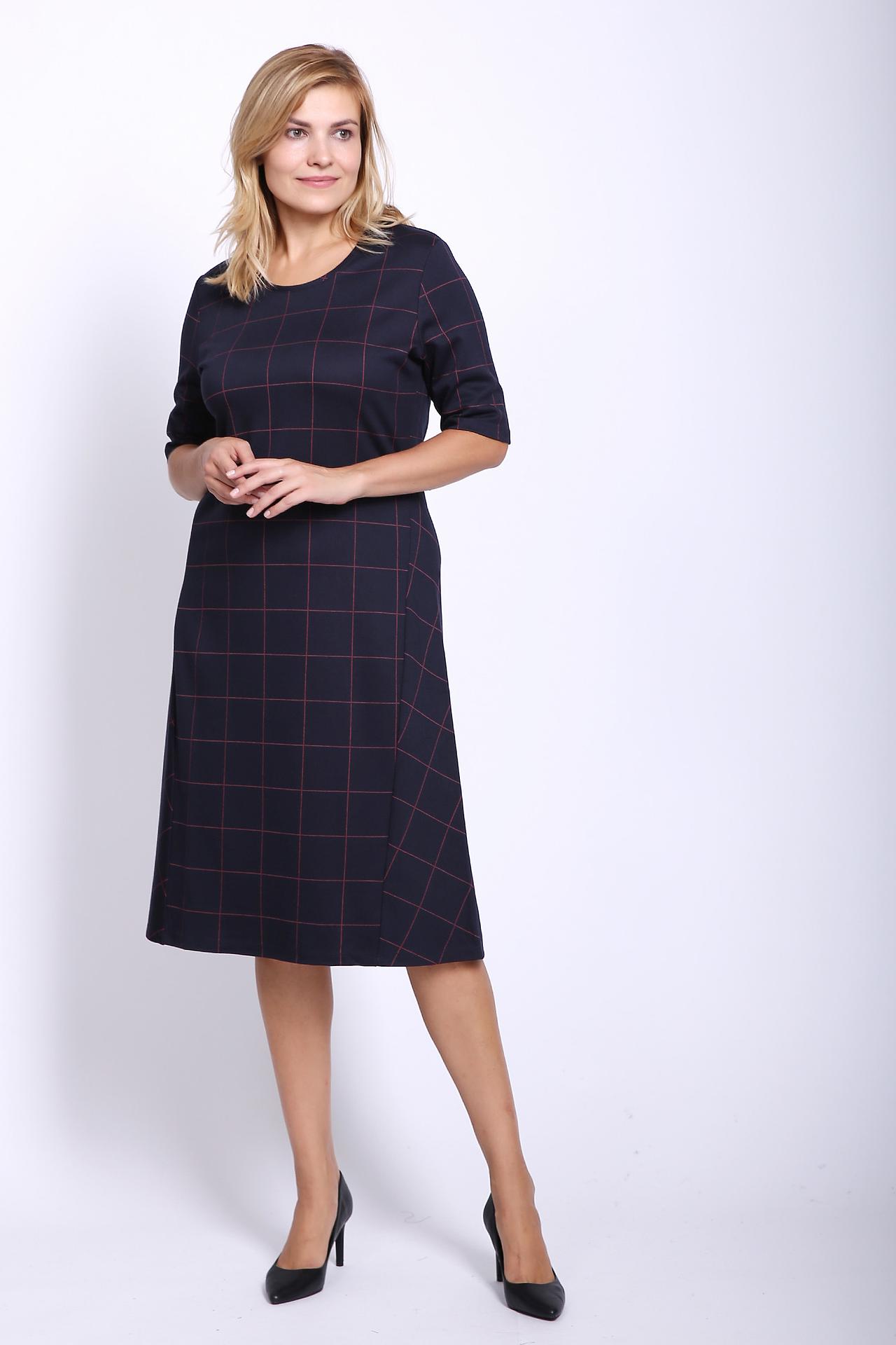 Платье синего цвета фирмы Gerry Weber. Модель выполнена прямым покроем. Изделие дополнено округлым воротом, втачными, короткими рукавами. Ткань имеет клетчатый принт. Такая модель может подойти для различных мероприятий.