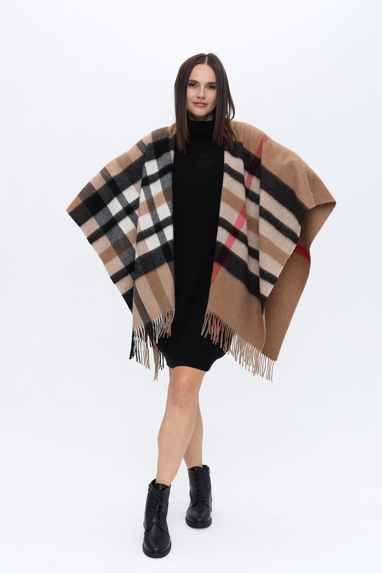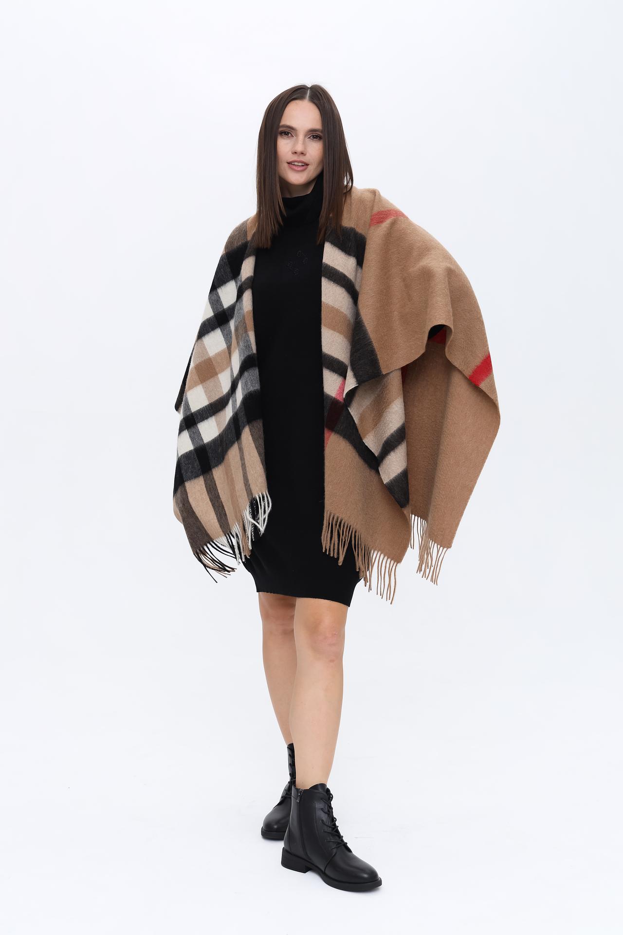 - Элегантный дизайн: Клетчатый узор придает пончо классический и стильный вид.