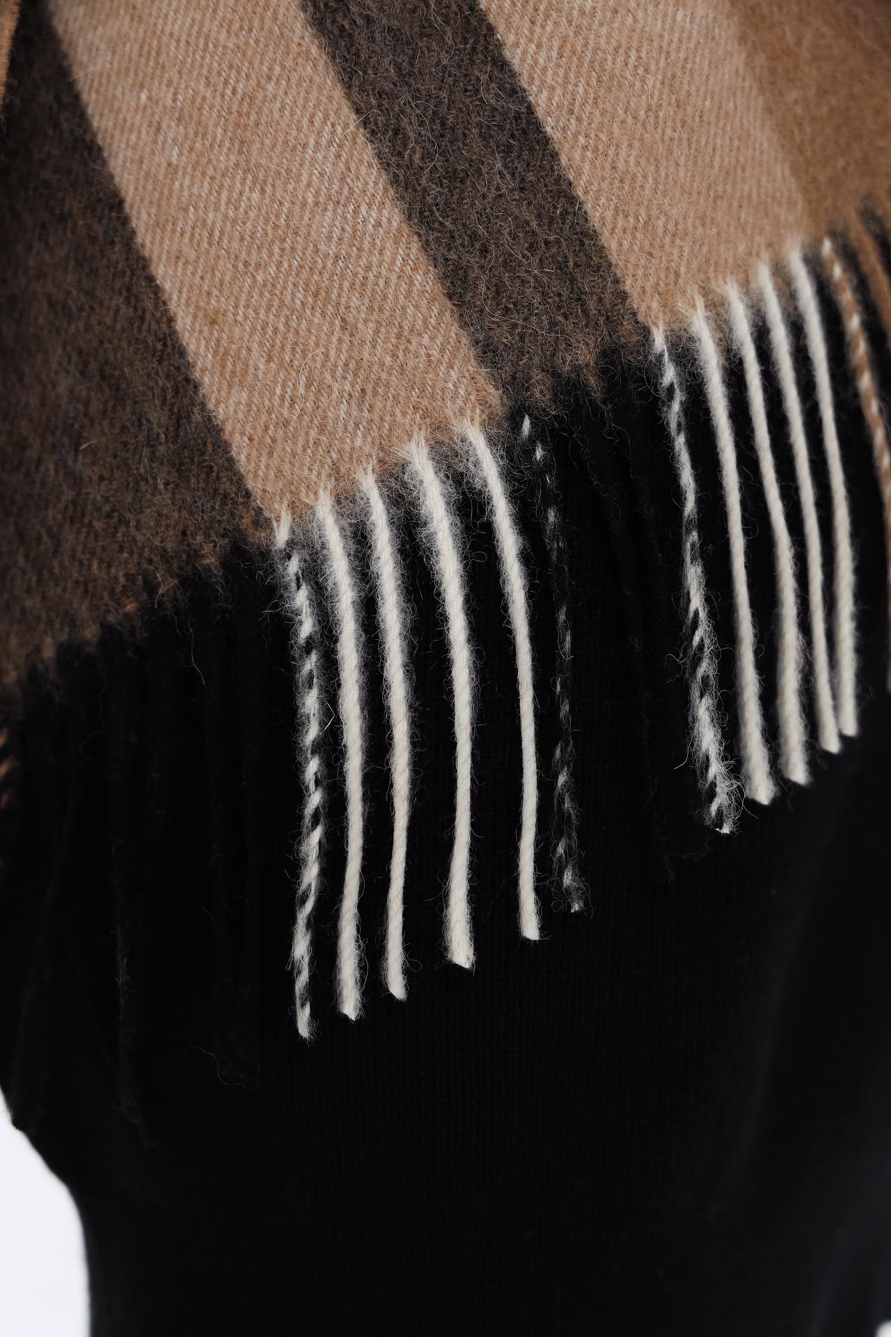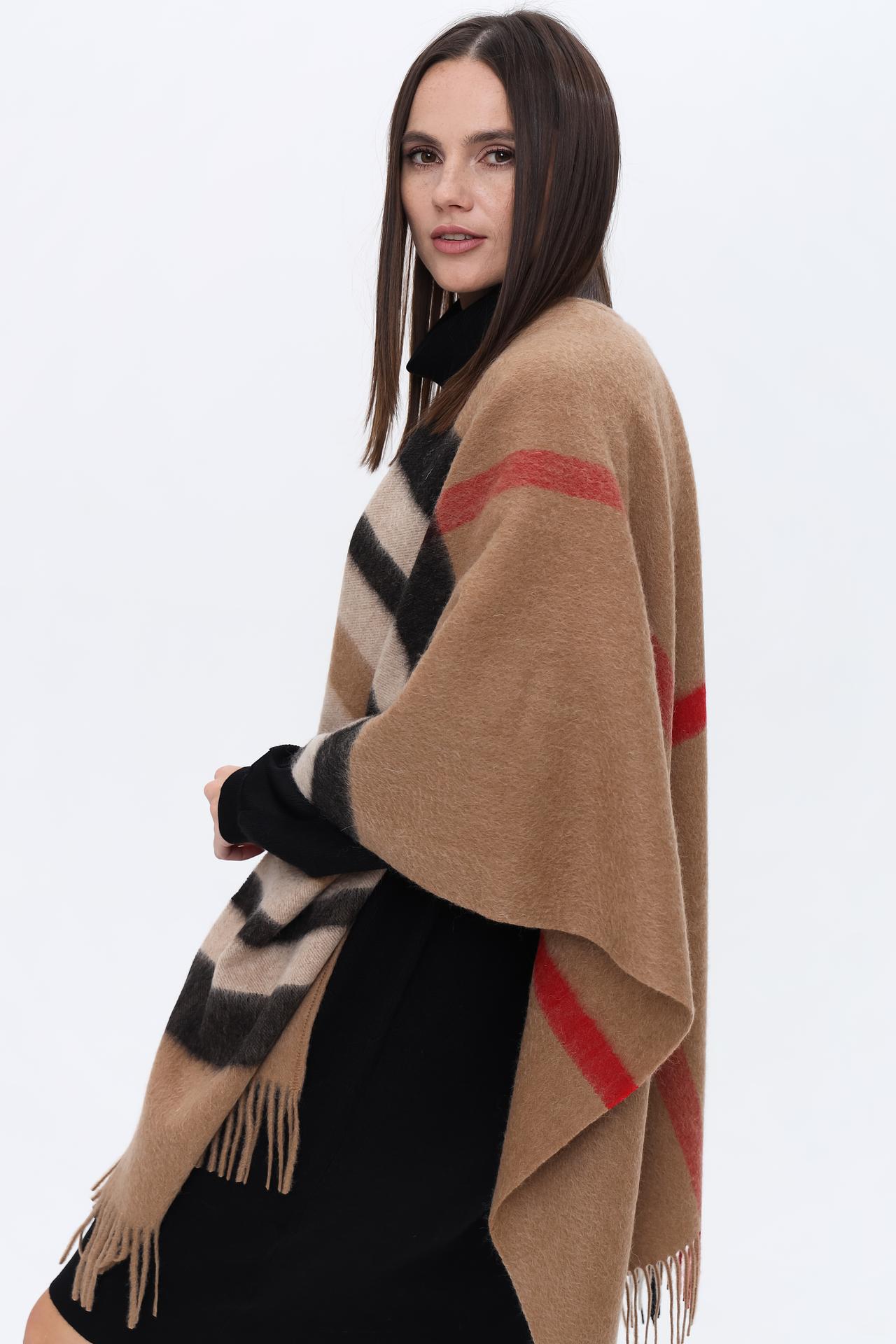 - Теплый и мягкий материал: Сочетание полиамида, шерсти и полиакрила делает пончо приятным на ощупь и согревающим.