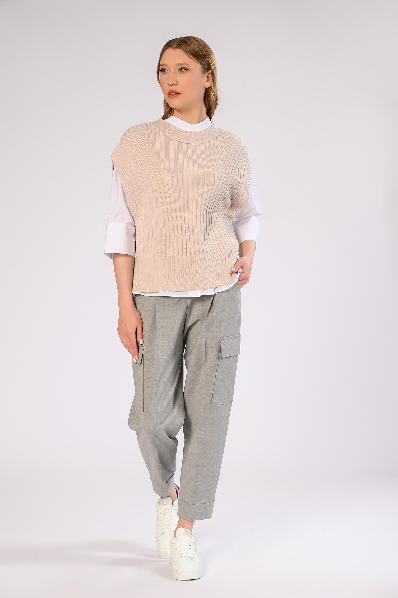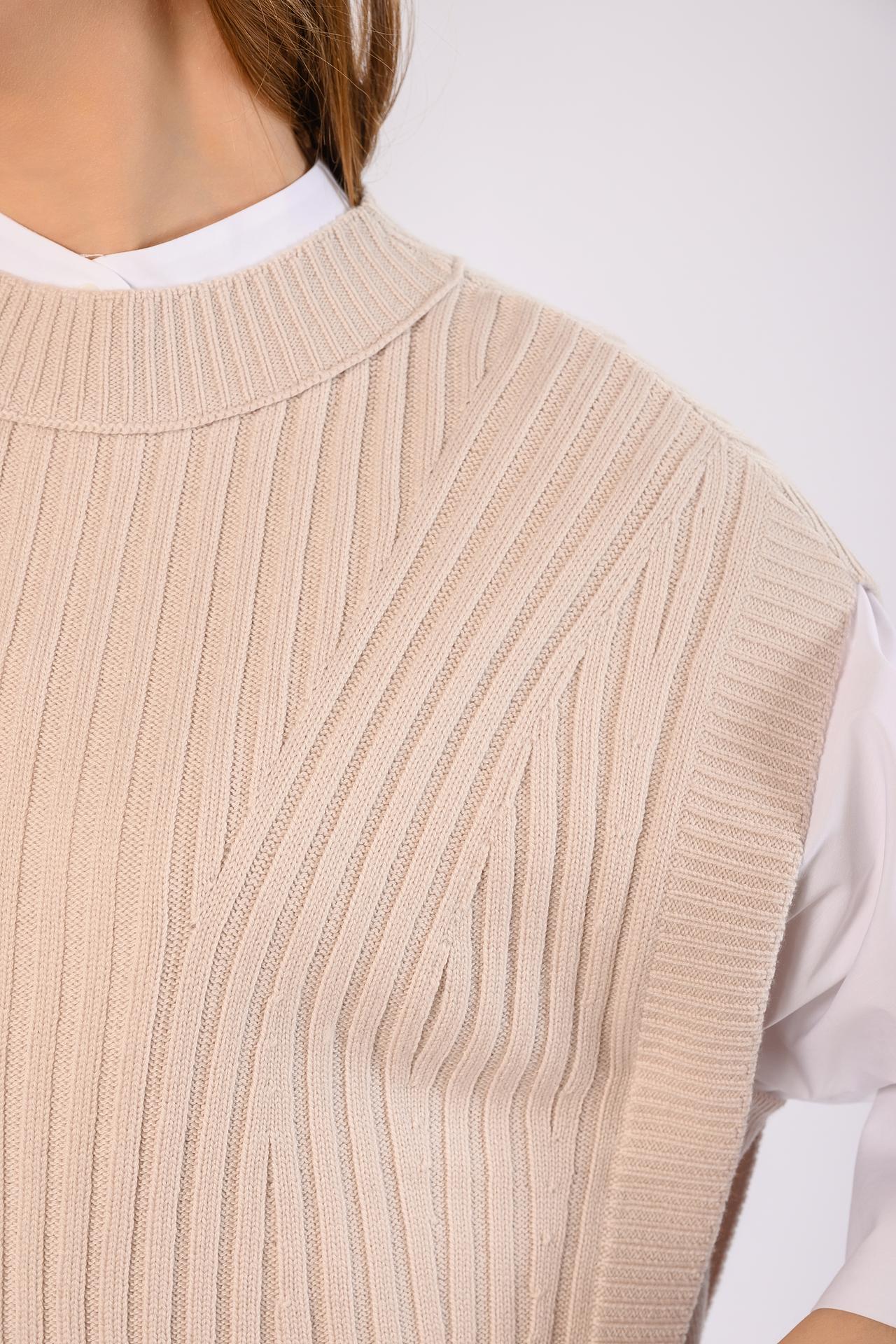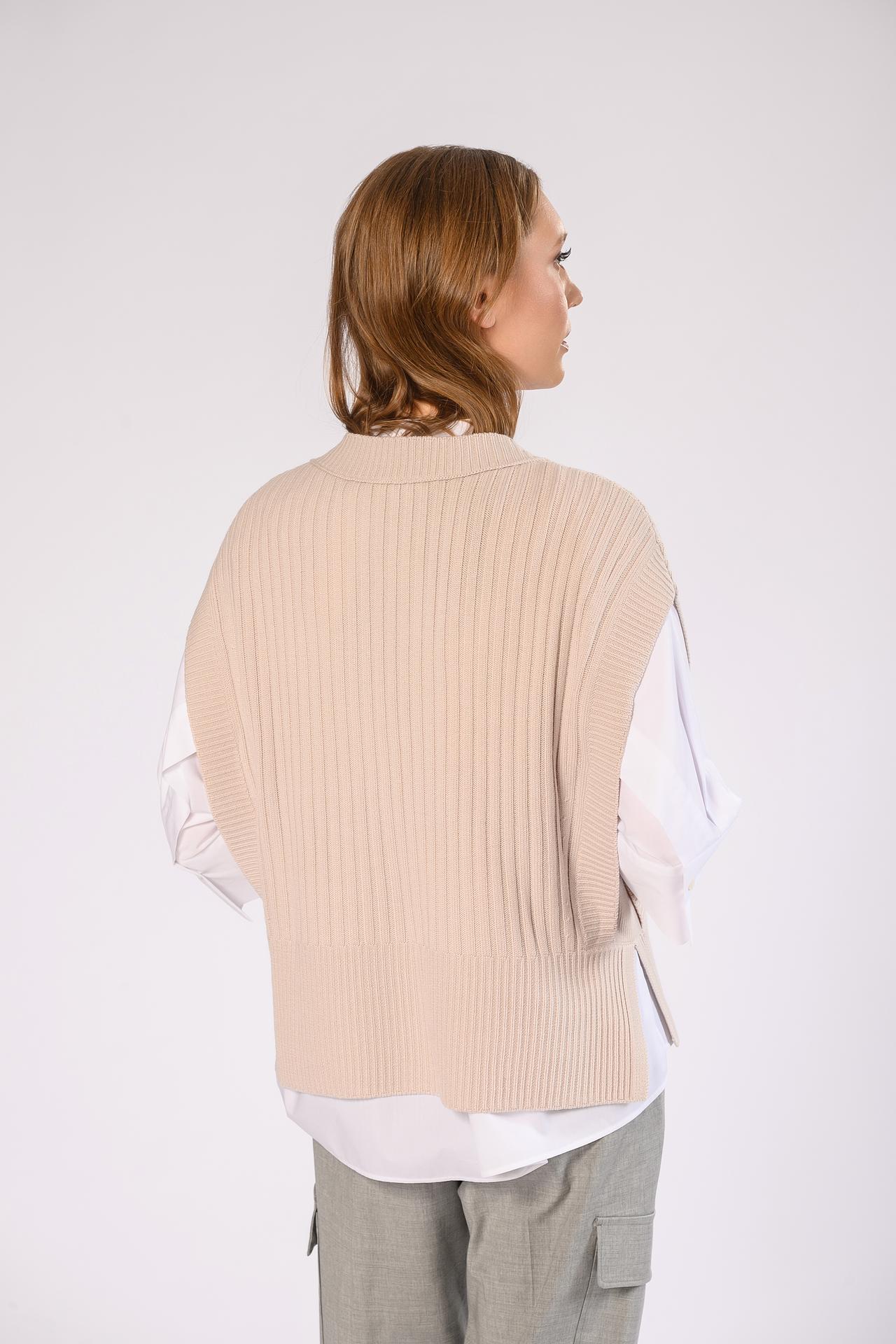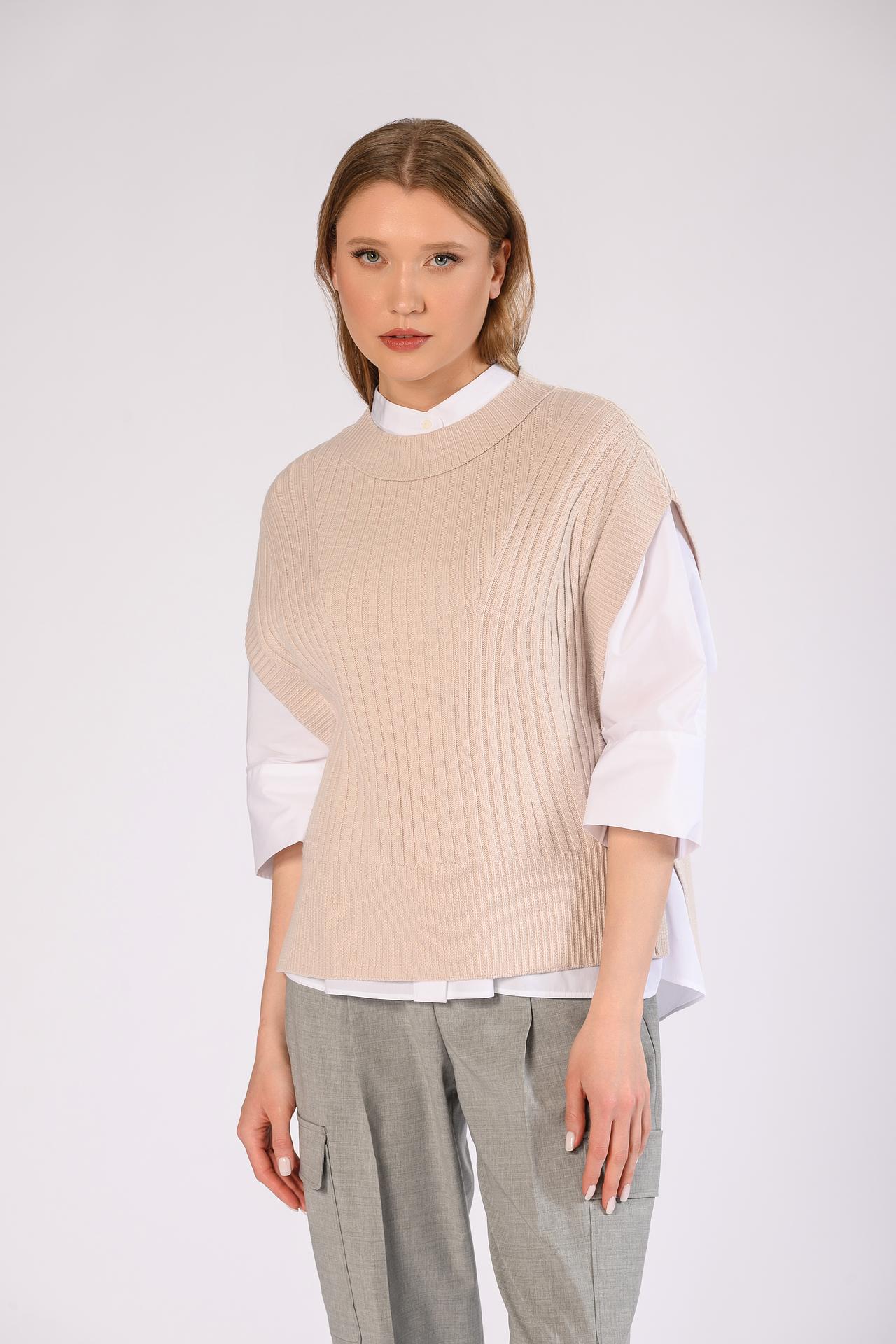 Классический крой и нейтральный бежевый цвет делают этот джемпер-жилет универсальным элементом одежды, который легко сочетается с различными стилями и цветами. Этот джемпер отлично дополнит как офисный, так и повседневный образ. Он идеально сочетается с рубашками, блузками и водолазками.