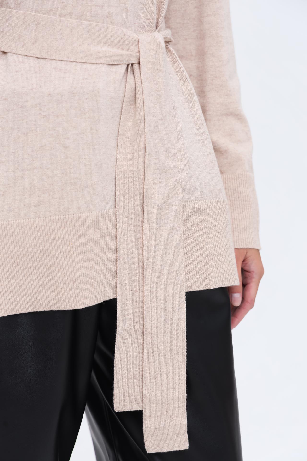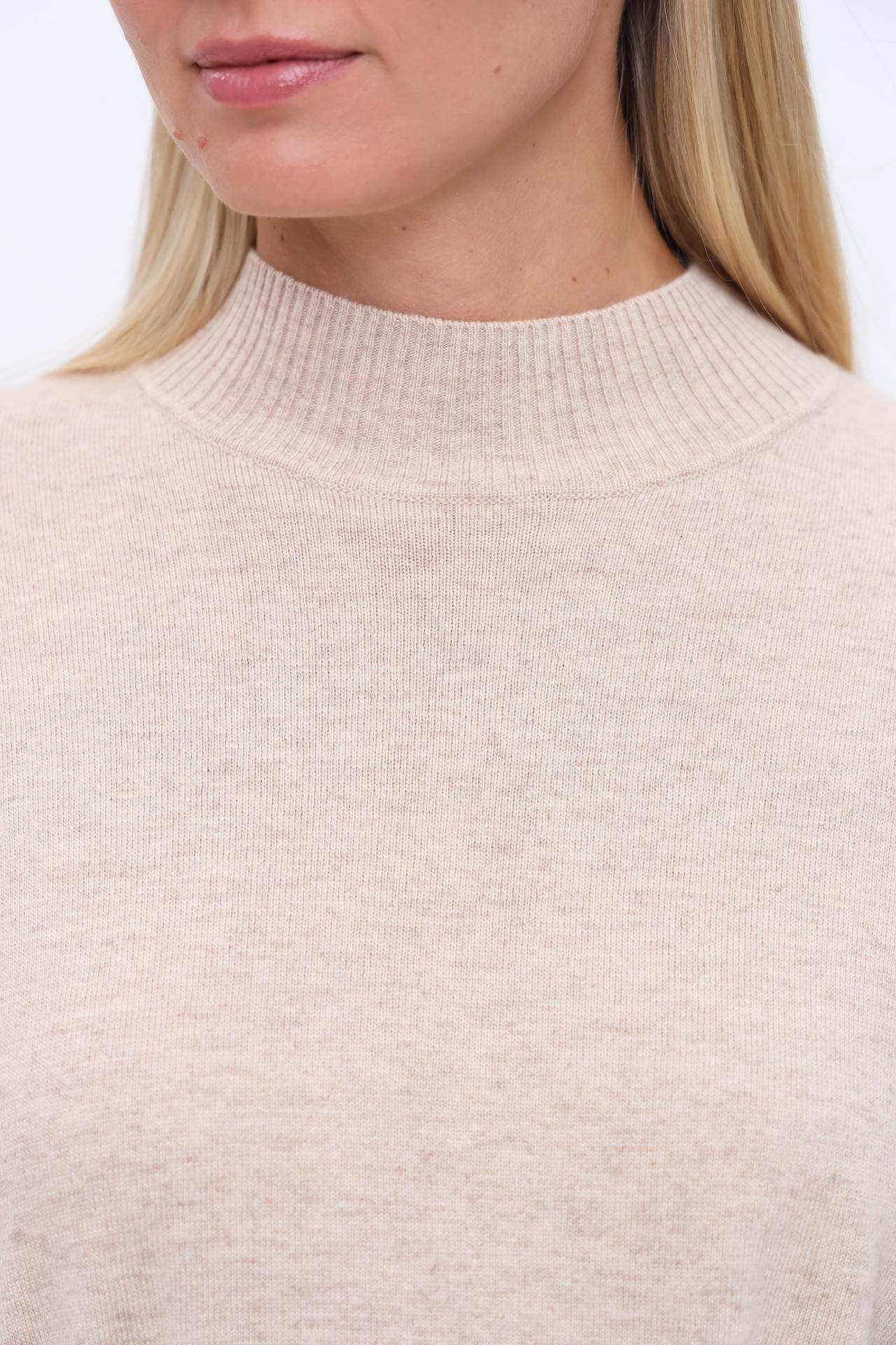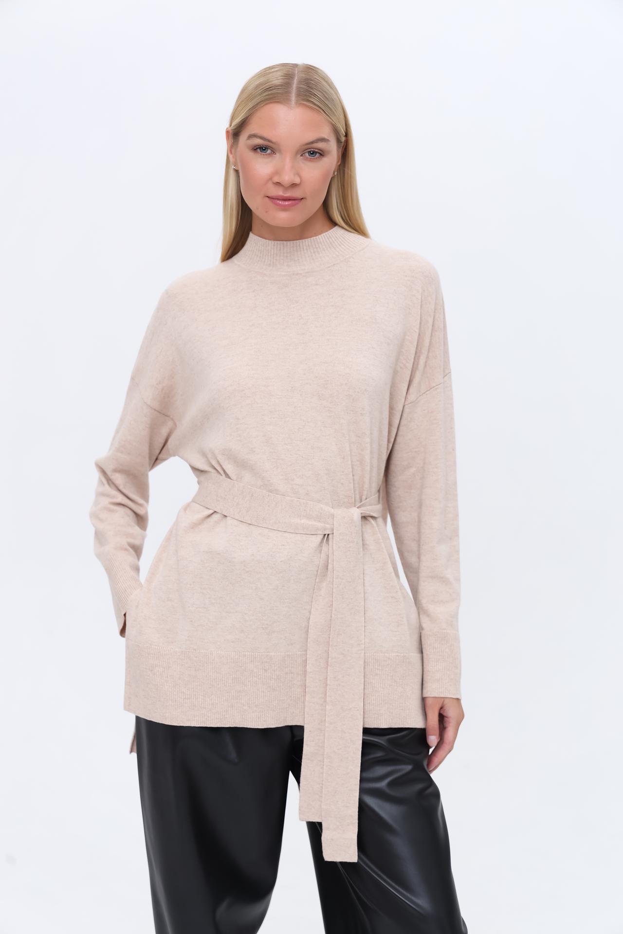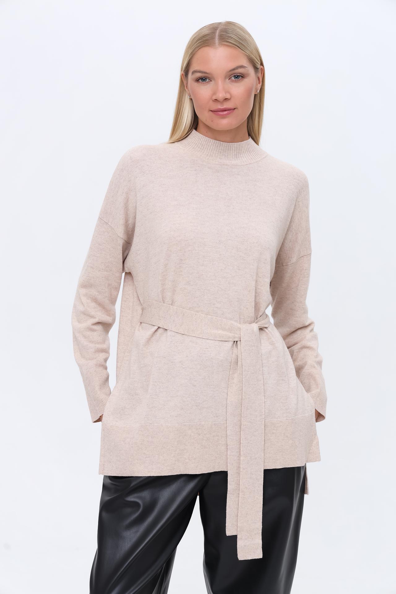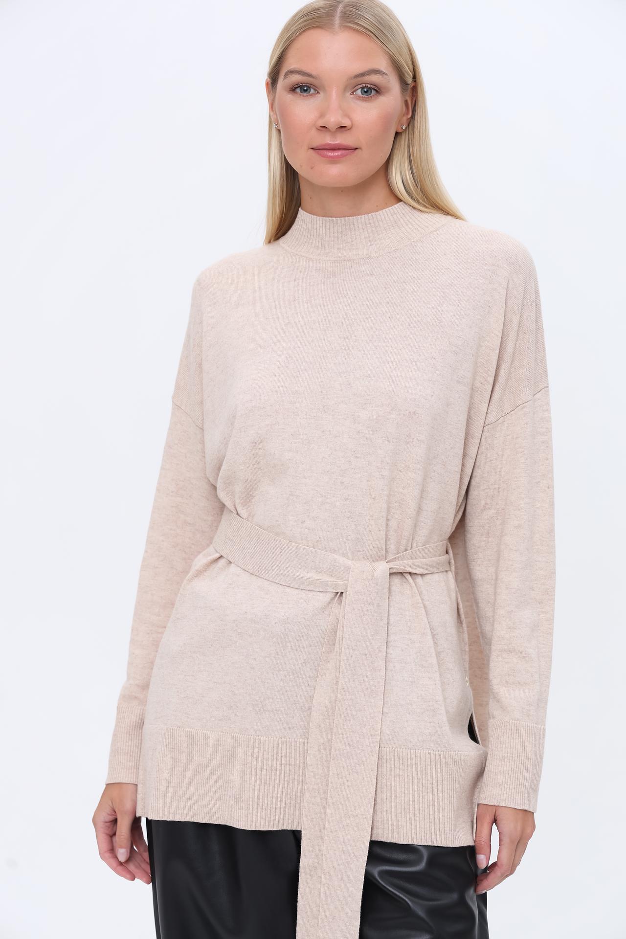 Изысканный бежевый джемпер Penny Black – воплощение элегантности и комфорта. Универсальный предмет гардероба, идеально подходящий для создания стильных повседневных образов. Изготовлен из премиальной смесовой ткани (25% нейлон, 26% вискоза, 22% шерсть, 22% хлопок, 5% кашемир), обеспечивающей мягкость, тепло и долговечность. Джемпер имеет прямой силуэт, высокий ворот и дополнен поясом.