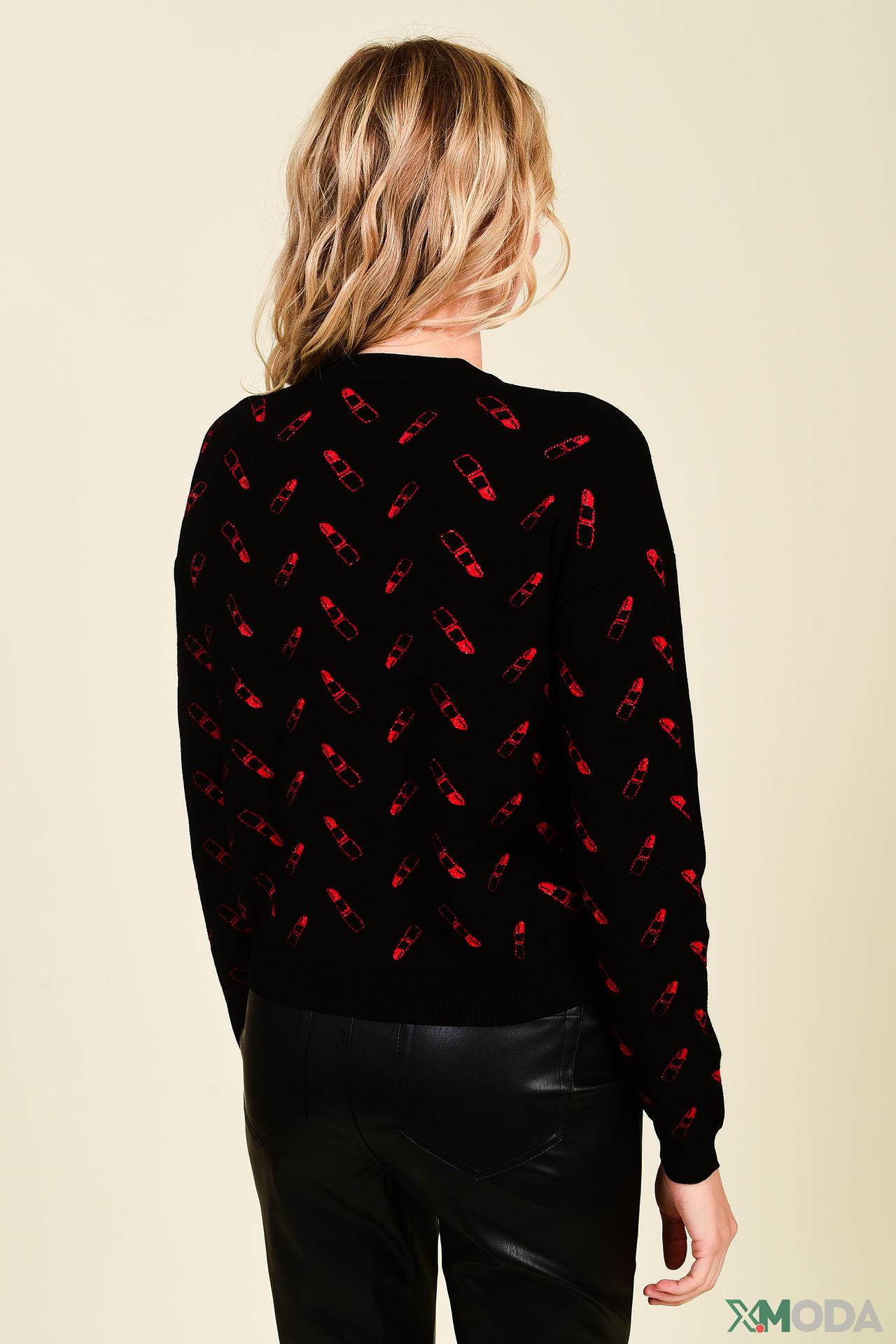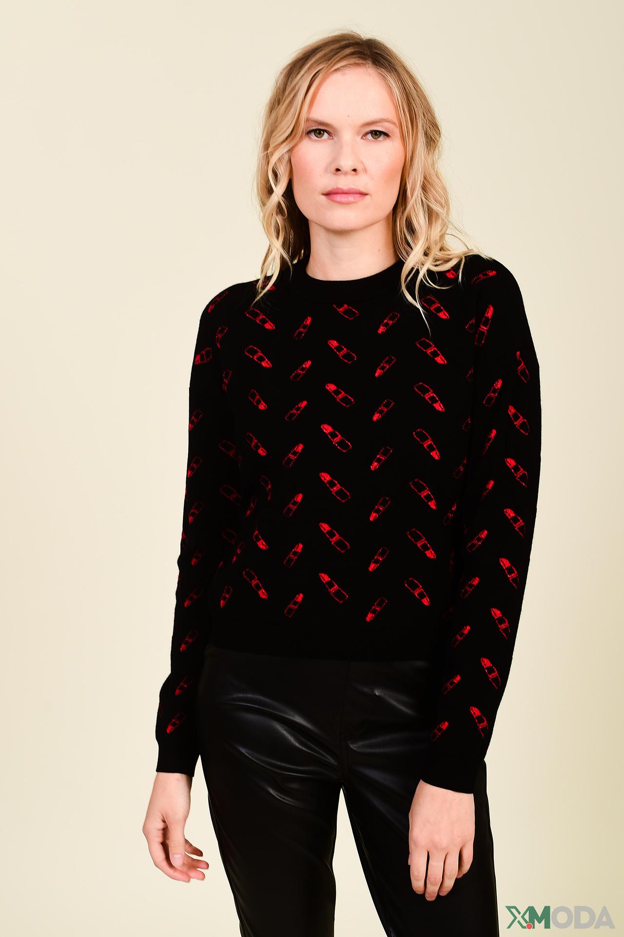 Стильный женский джемпер от бренда i Blues станет ярким акцентом вашего гардероба. Модель выполнена в классическом черном цвете и украшена оригинальным принтом в виде красной помады, что придает образу игривости и кокетства. Высококачественный состав ткани обеспечивает комфорт при носке и сохраняет первоначальный вид изделия даже после многочисленных стирок.