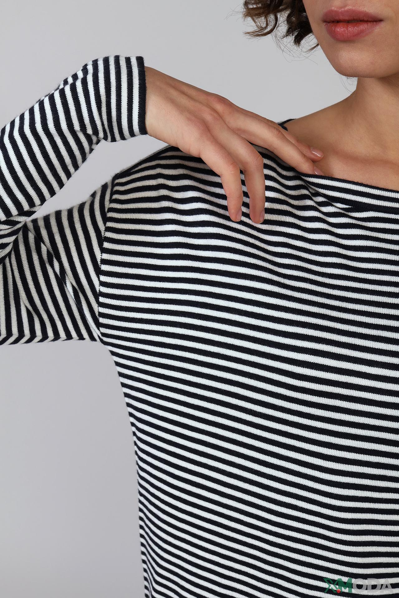 - Универсальный дизайн: Классическая полоска и прямой крой позволяют легко сочетать пуловер с различными стилями одежды.
