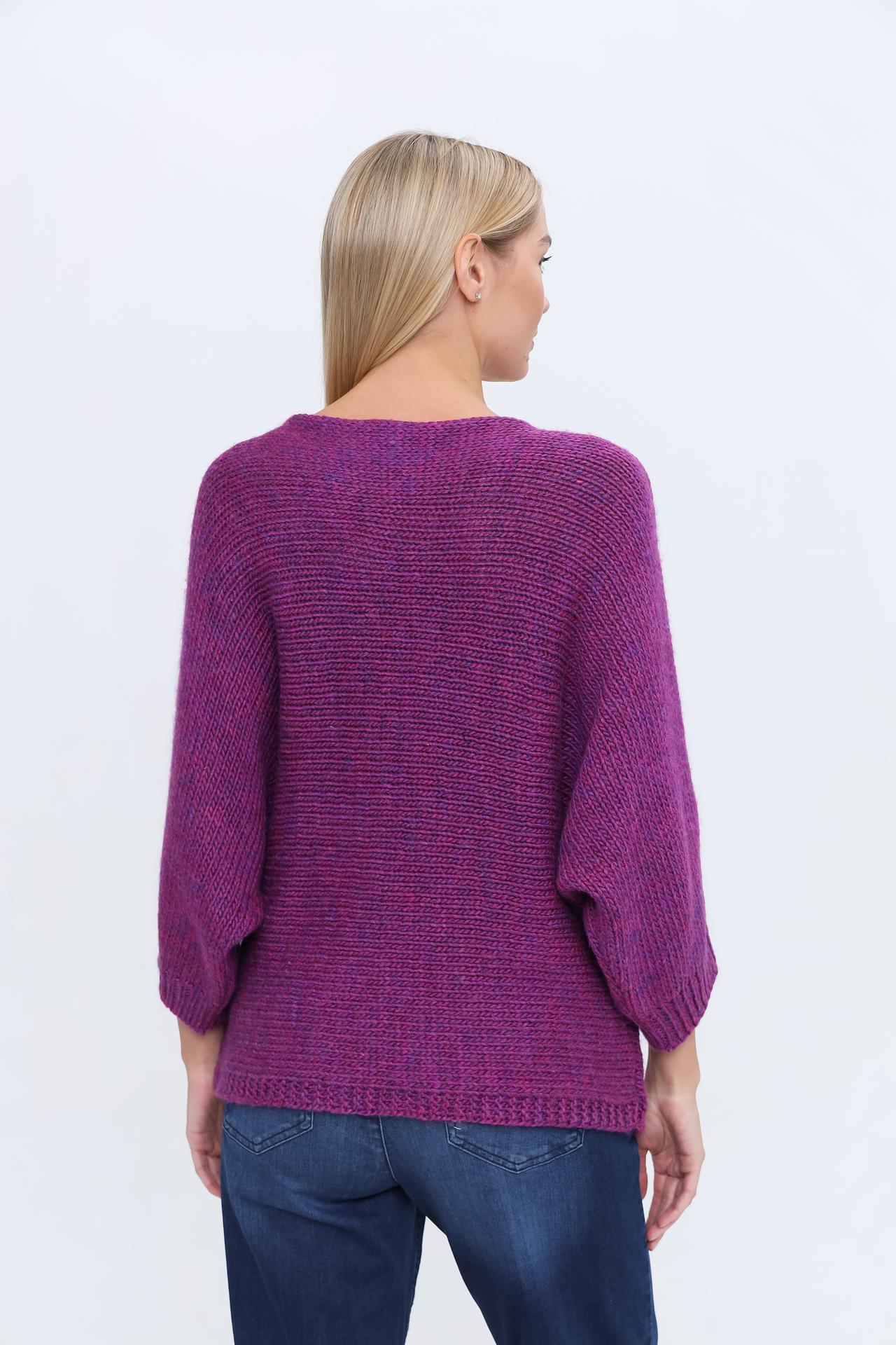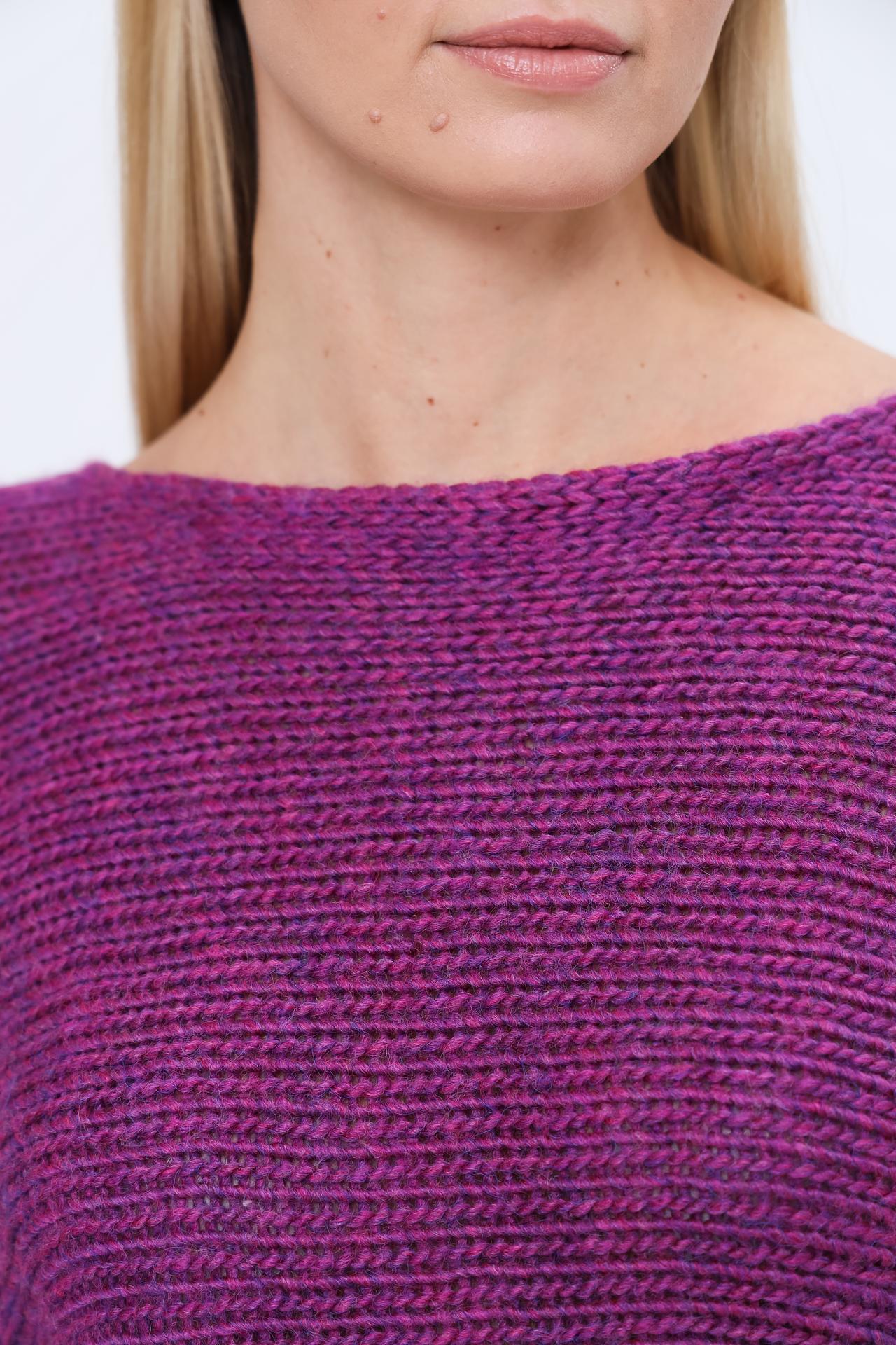 - Яркий фиолетовый оттенок: Насыщенный фиолетовый цвет пуловера делает его заметным акцентом в вашем гардеробе. Этот модный и уютный пуловер легко сочетается как с джинсами, так и с классическими брюками.