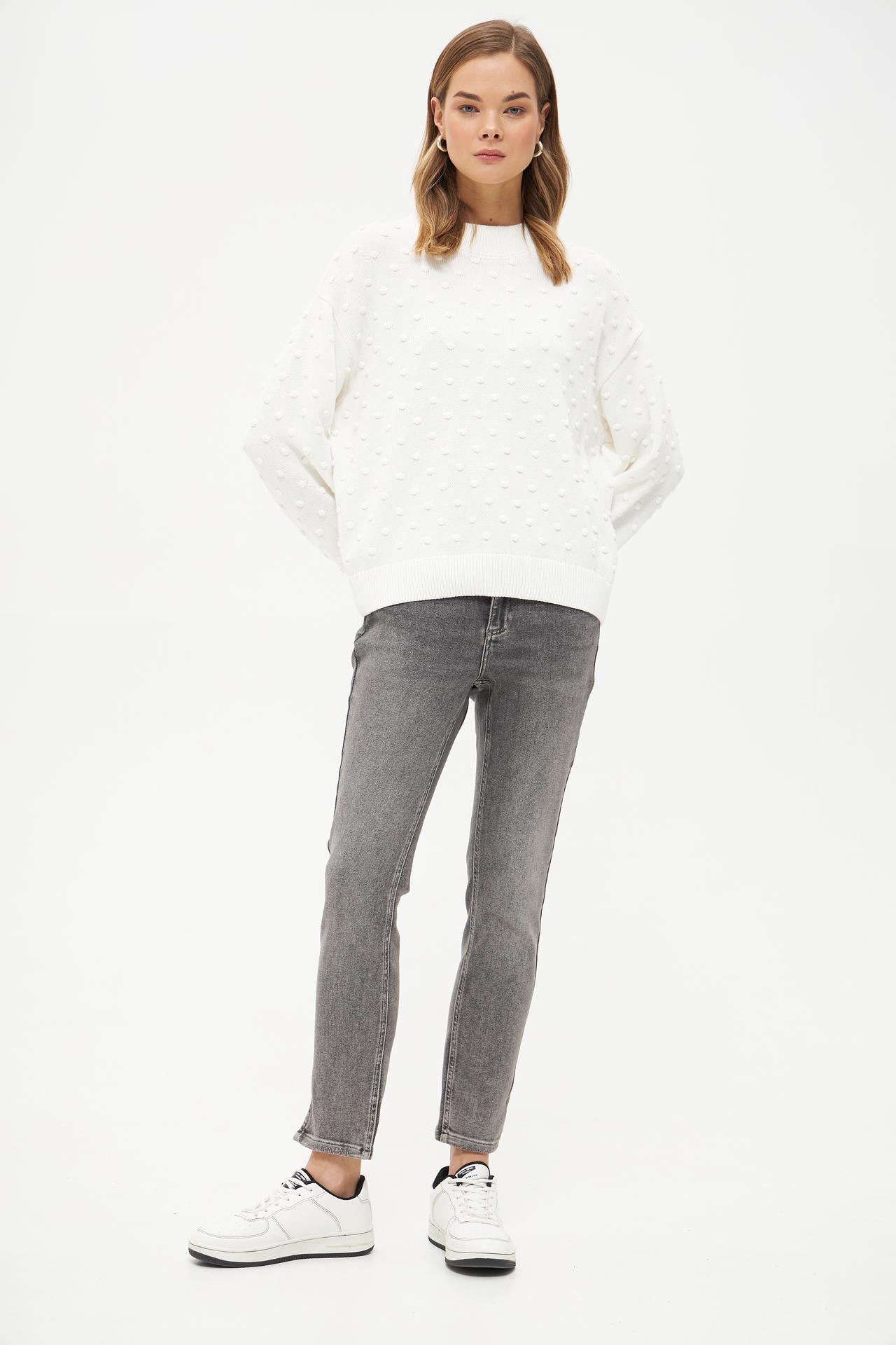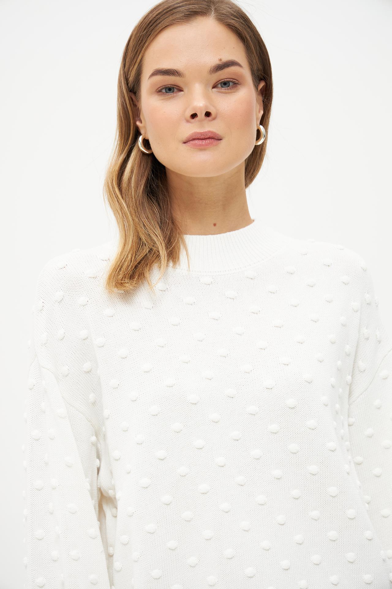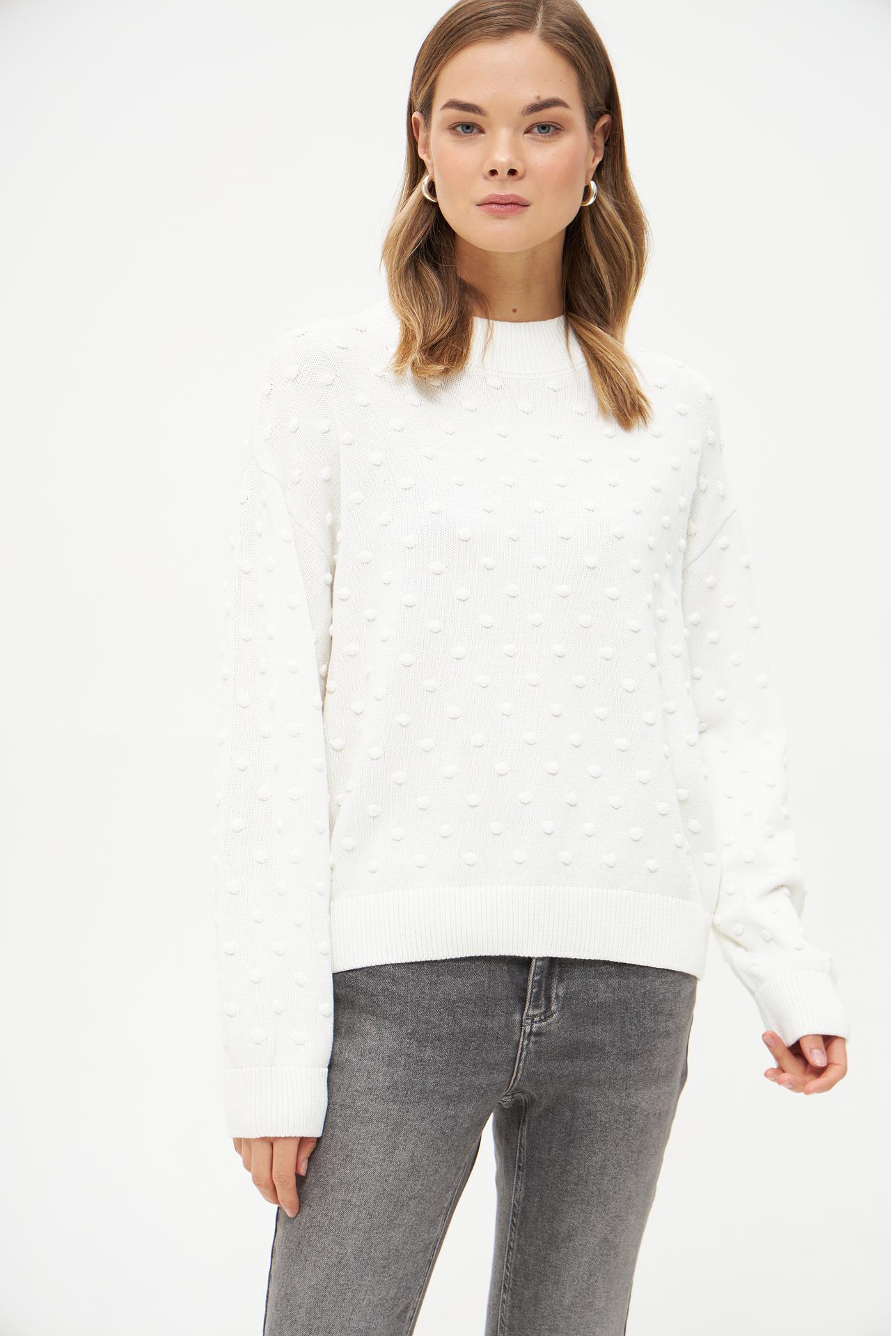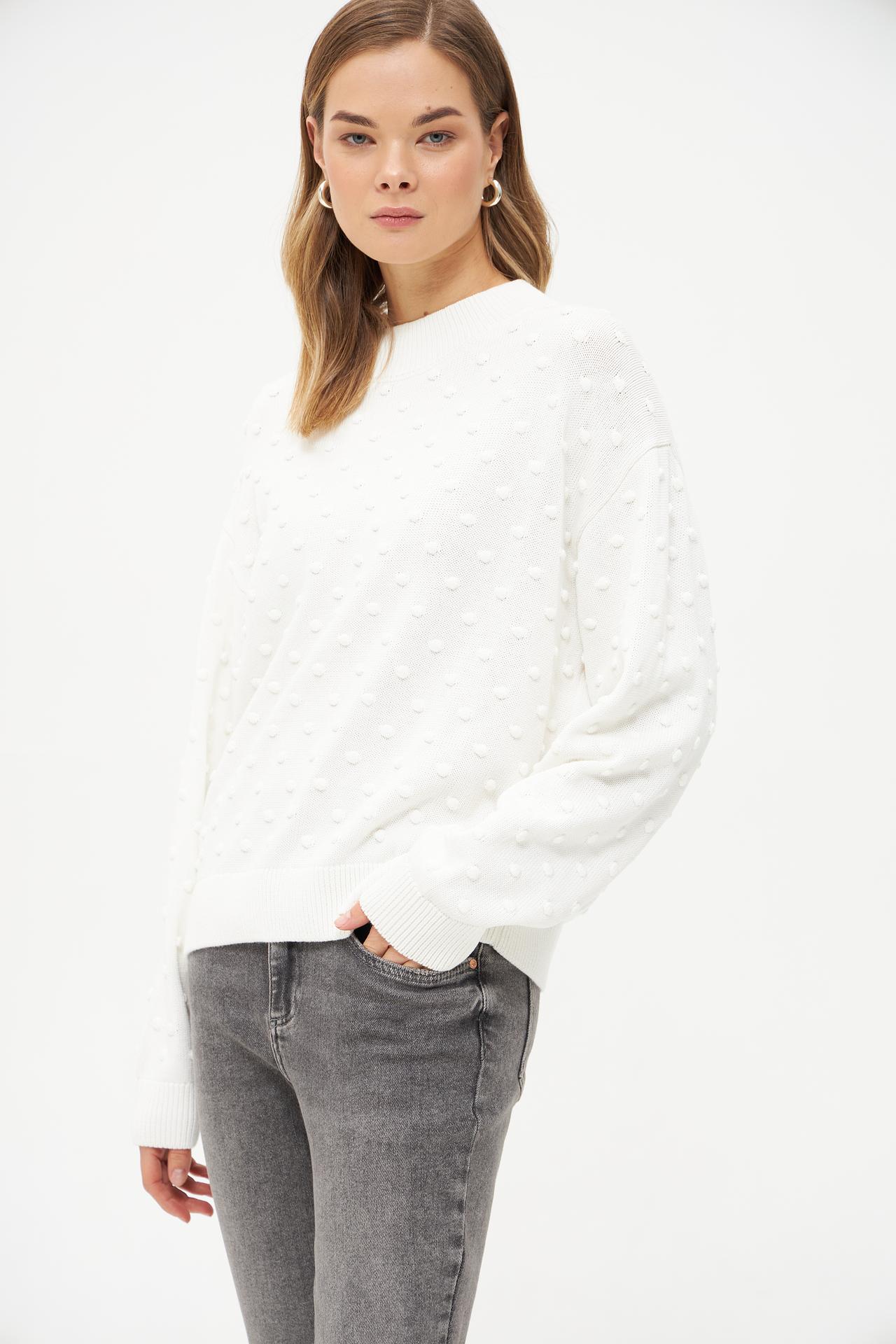 - Уникальный дизайн: Объемный декор добавляет текстуру и привлекательность, делая этот пуловер особенным.