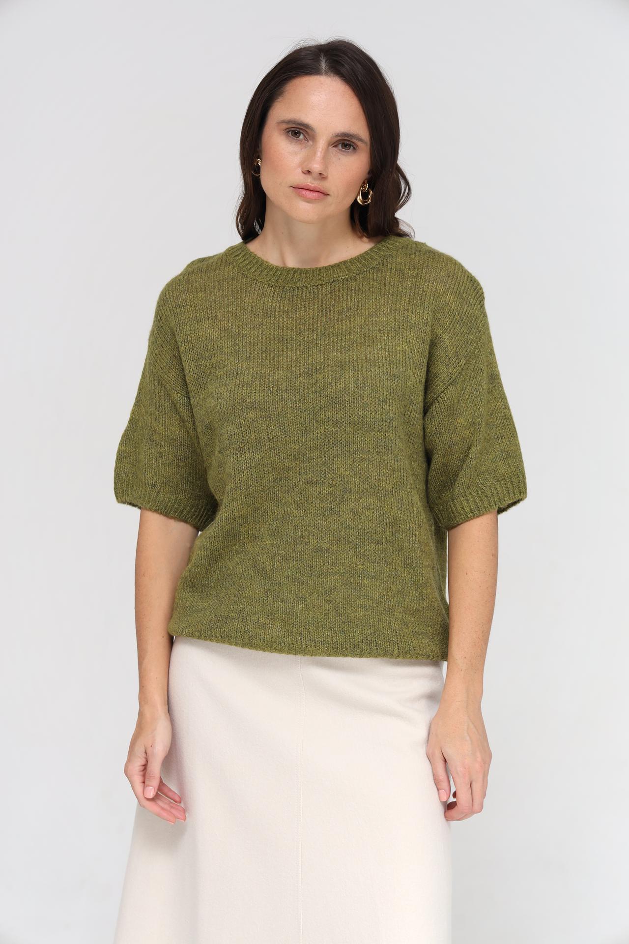Пуловер оливковый MORE and MORE с короткими рукавами