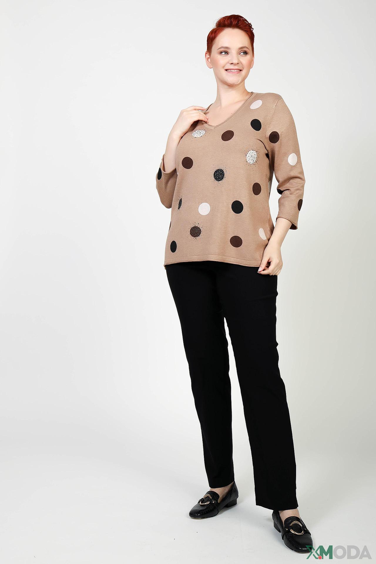 Пуловер Via Appia бежевый в горох с декором