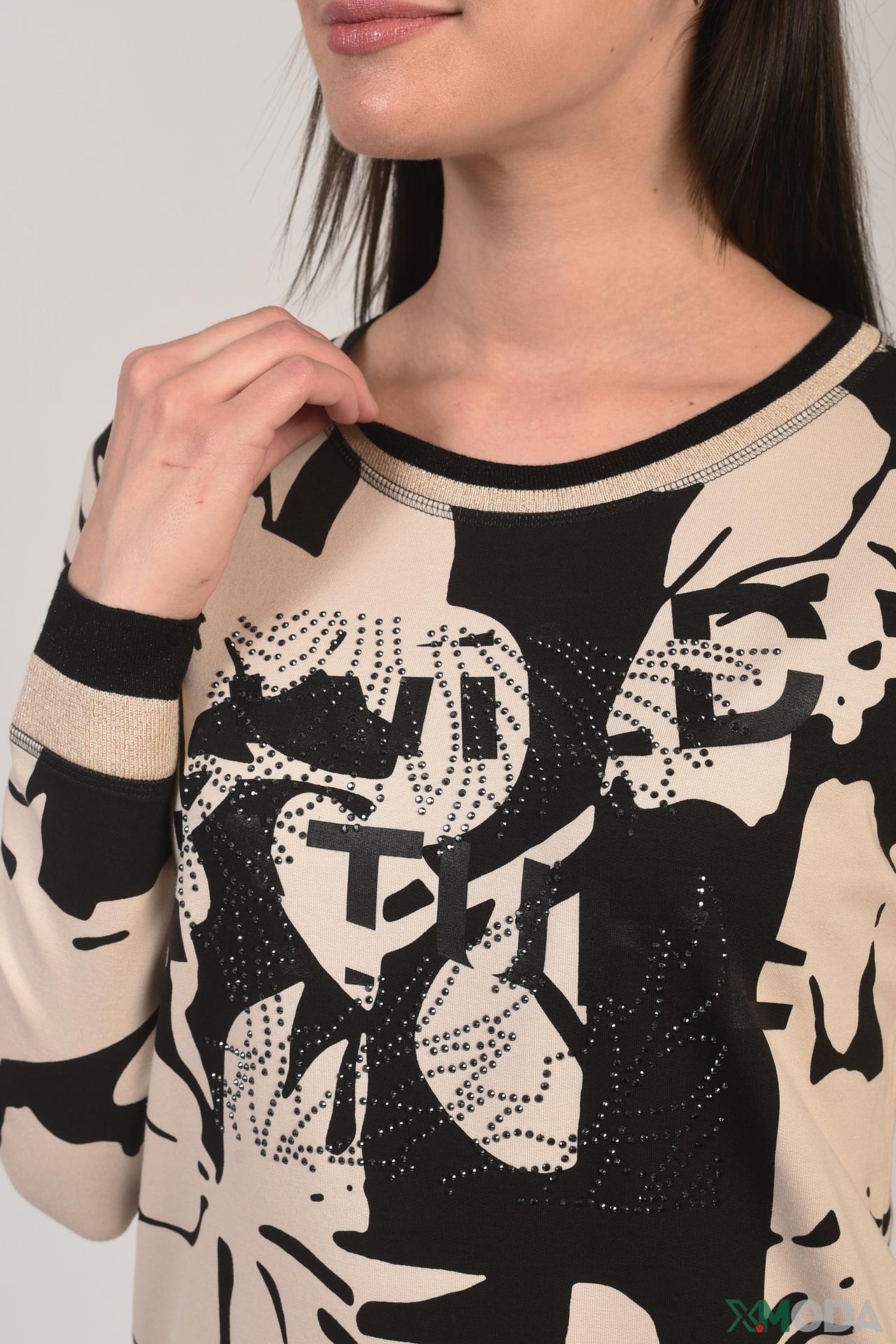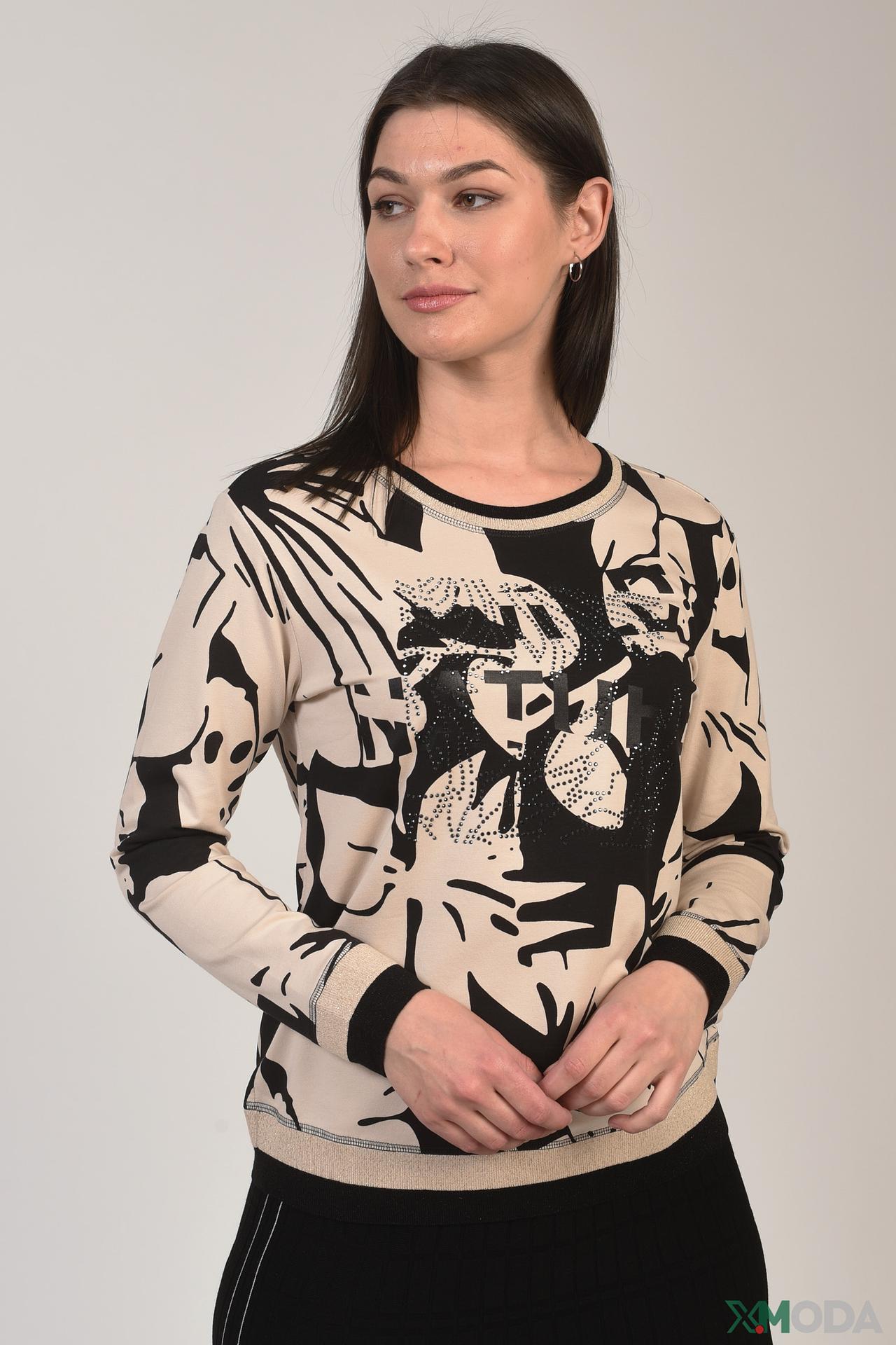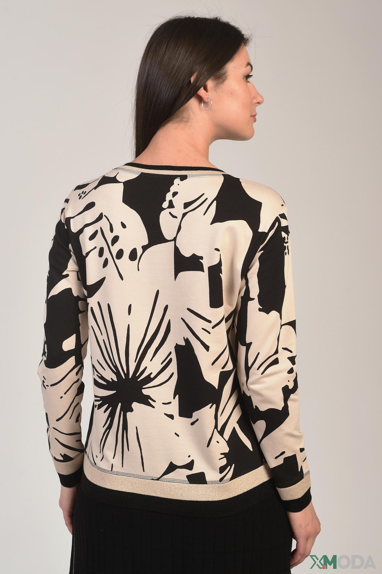 - Стильный дизайн: Оригинальный принт с флористическими мотивами и декор стразами делает этот пуловер неповторимым.