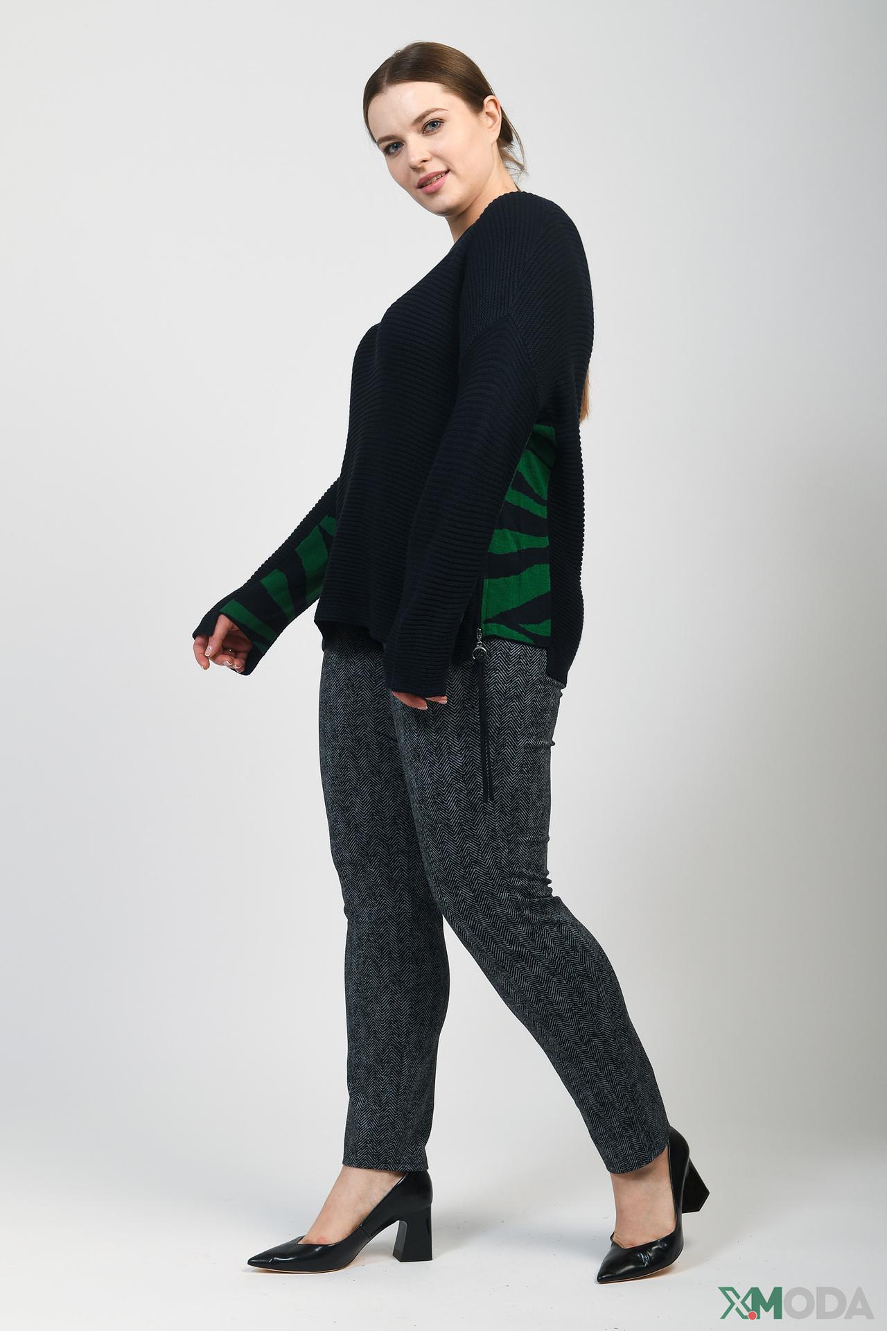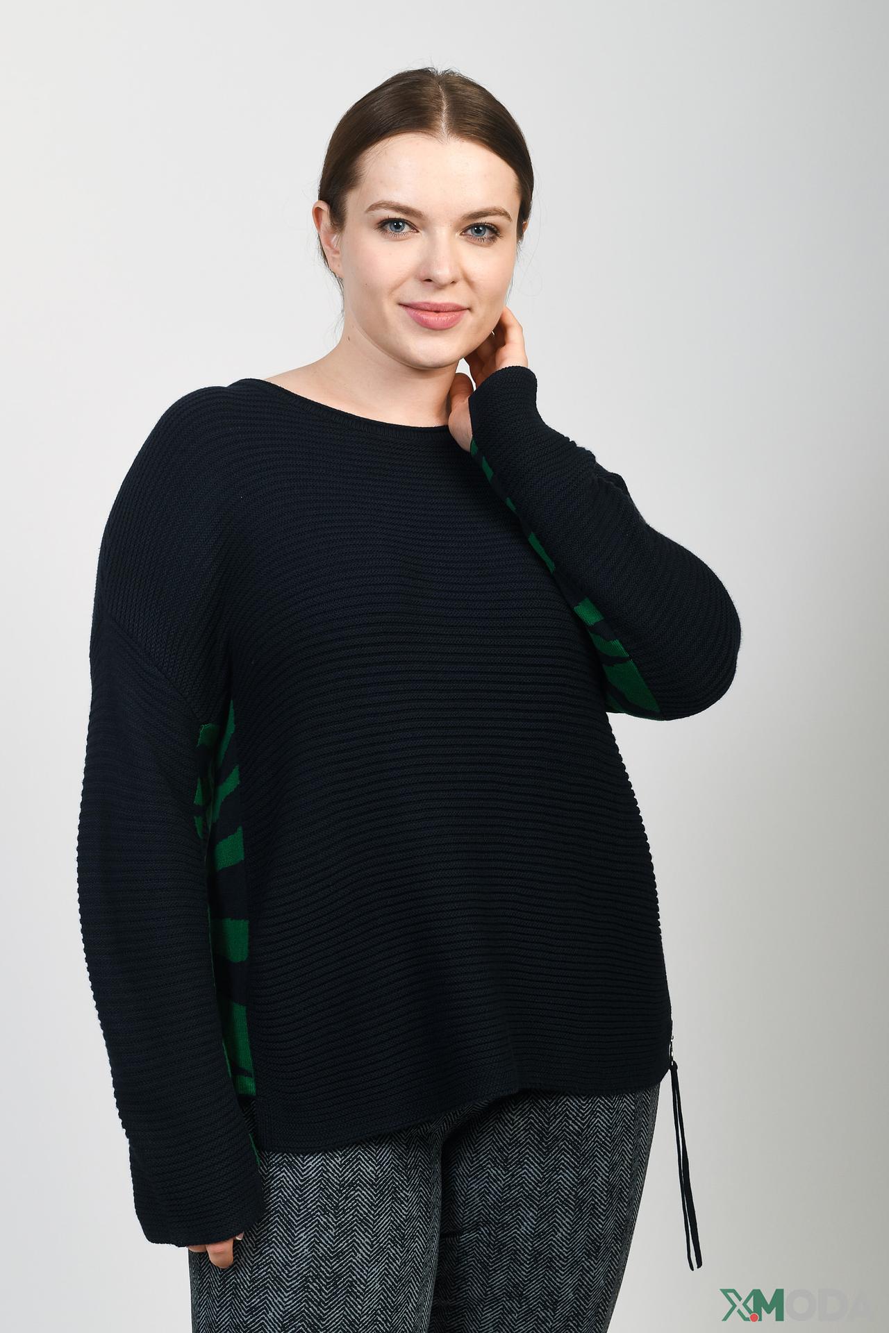 Пуловер Doris Streich чёрный с зелёным принтом