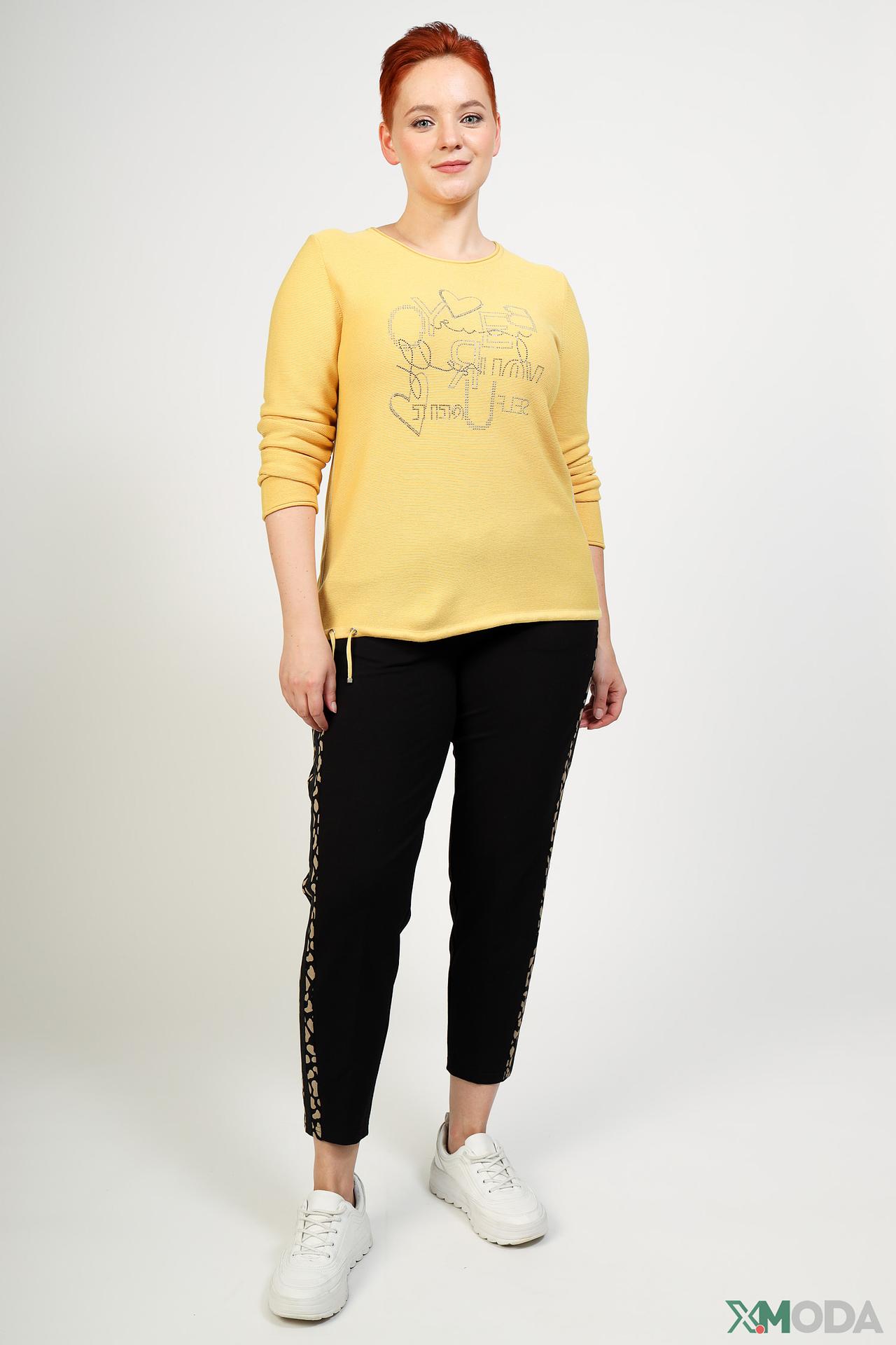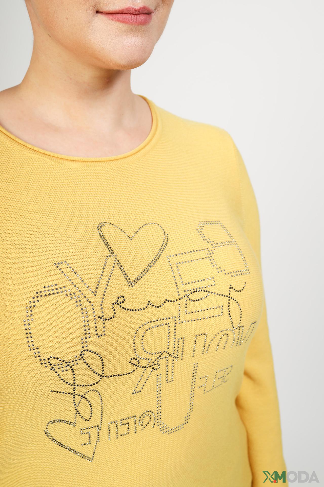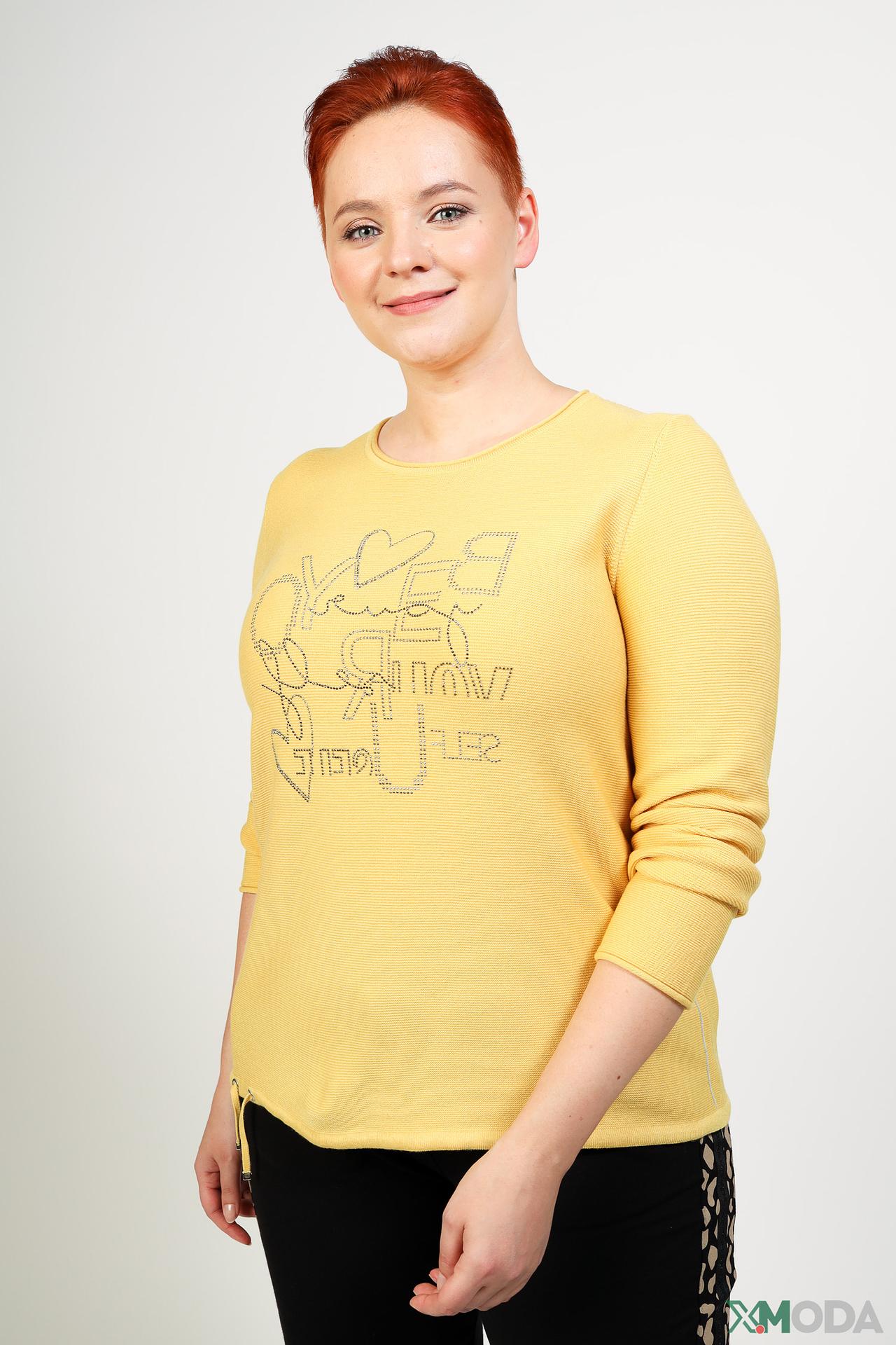 Желтый пуловер Rabe collection - идеальный выбор для создания стильного и комфортного образа. Мягкий и приятный к телу материал (14% полиамид, 40% полиакрил, 46% модал) обеспечивает комфорт в течение всего дня. Декорирован оригинальным принтом со стразами, что придает изделию неповторимый шарм и изысканность. Отличный вариант для повседневной носки и создания многослойных образов. Этот женский пуловер станет прекрасным дополнением вашего гардероба.