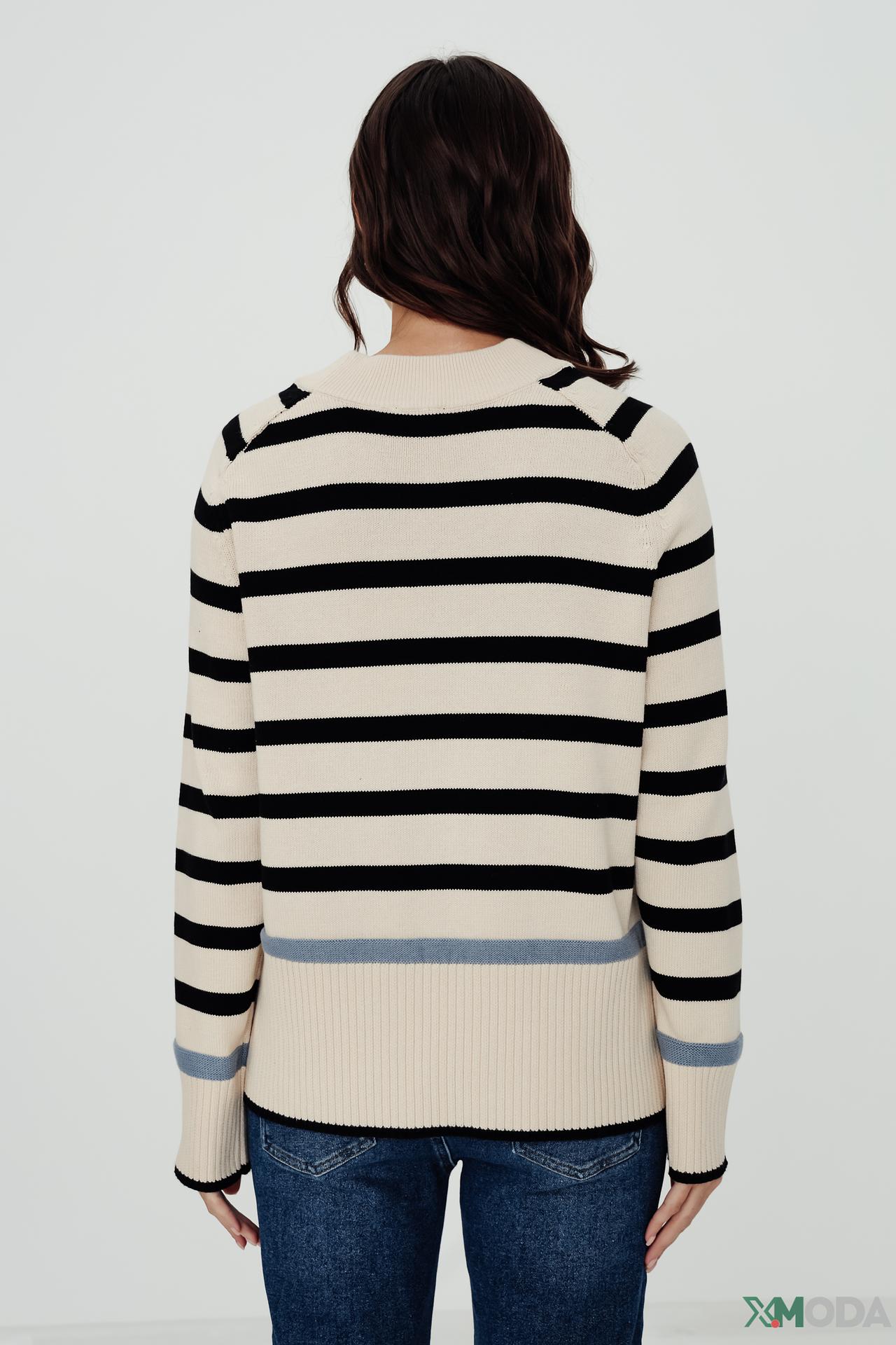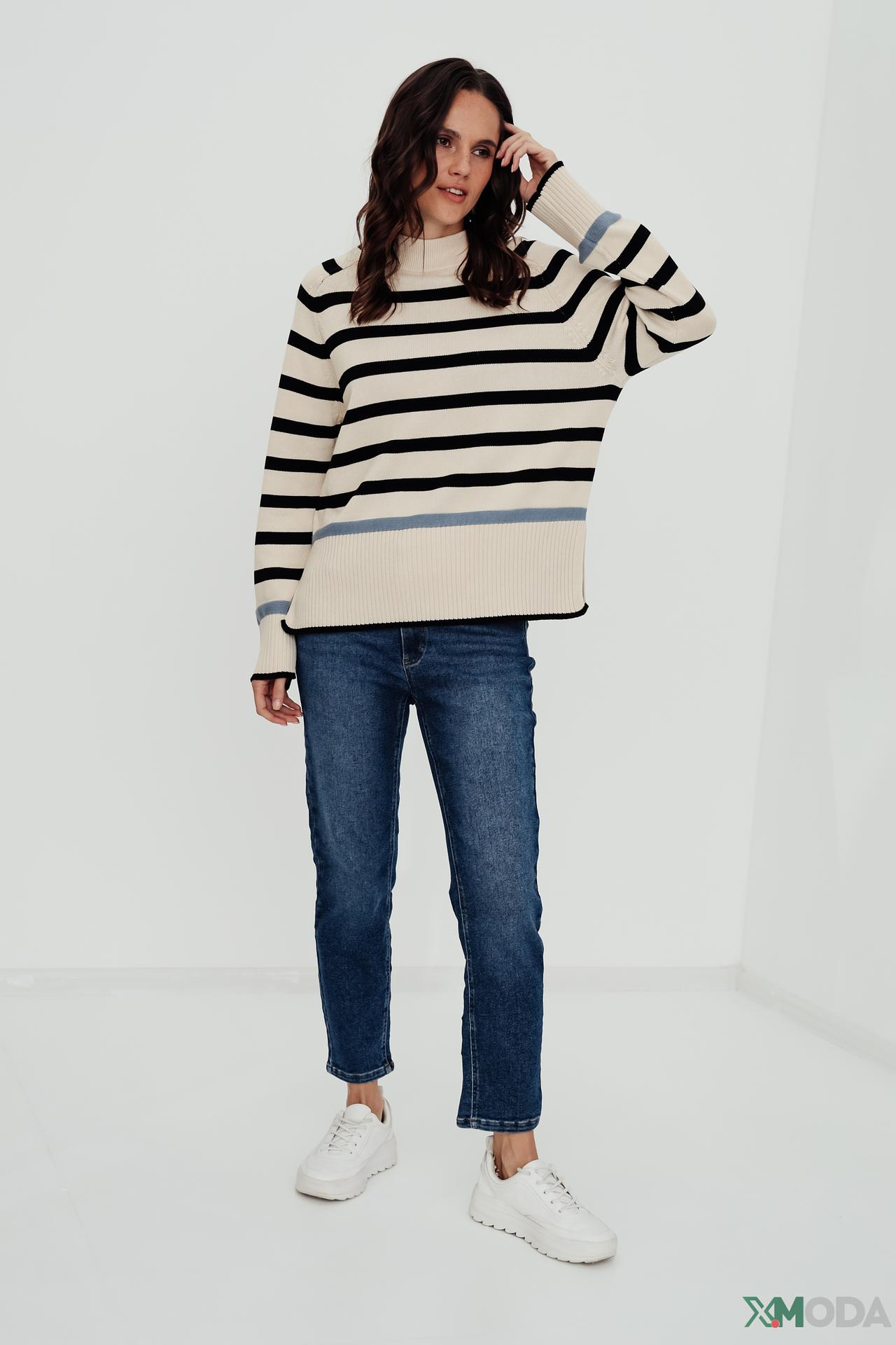 - Универсальный дизайн: Классическая полоска и прямой крой делают этот пуловер подходящим для различных стилей и ситуаций.