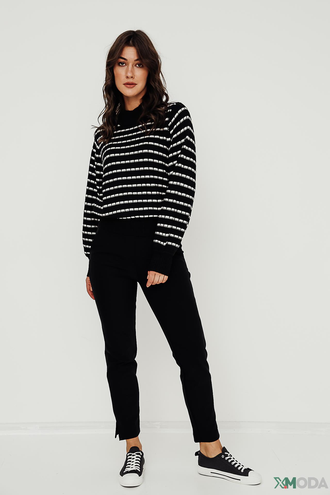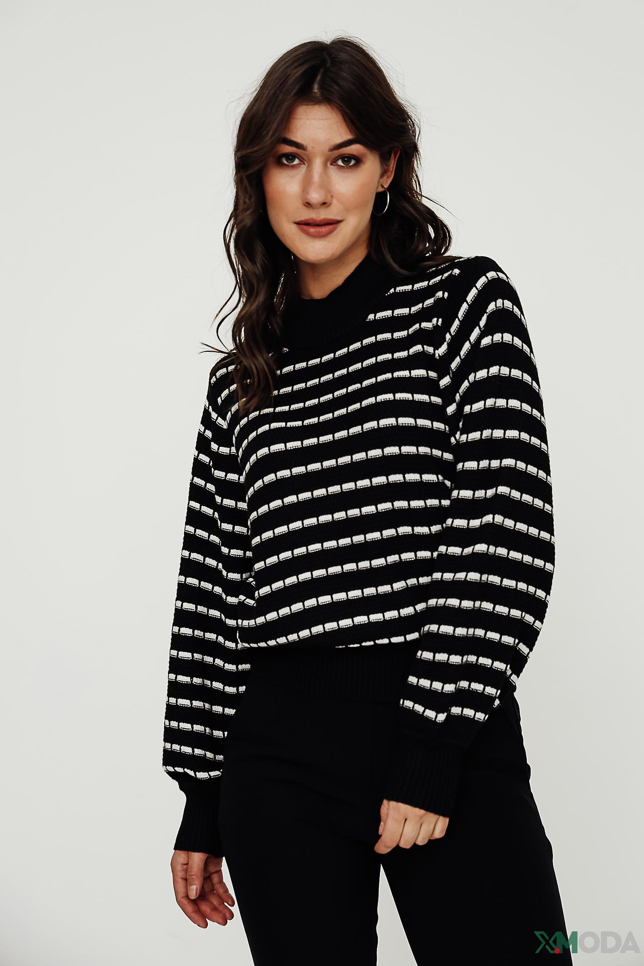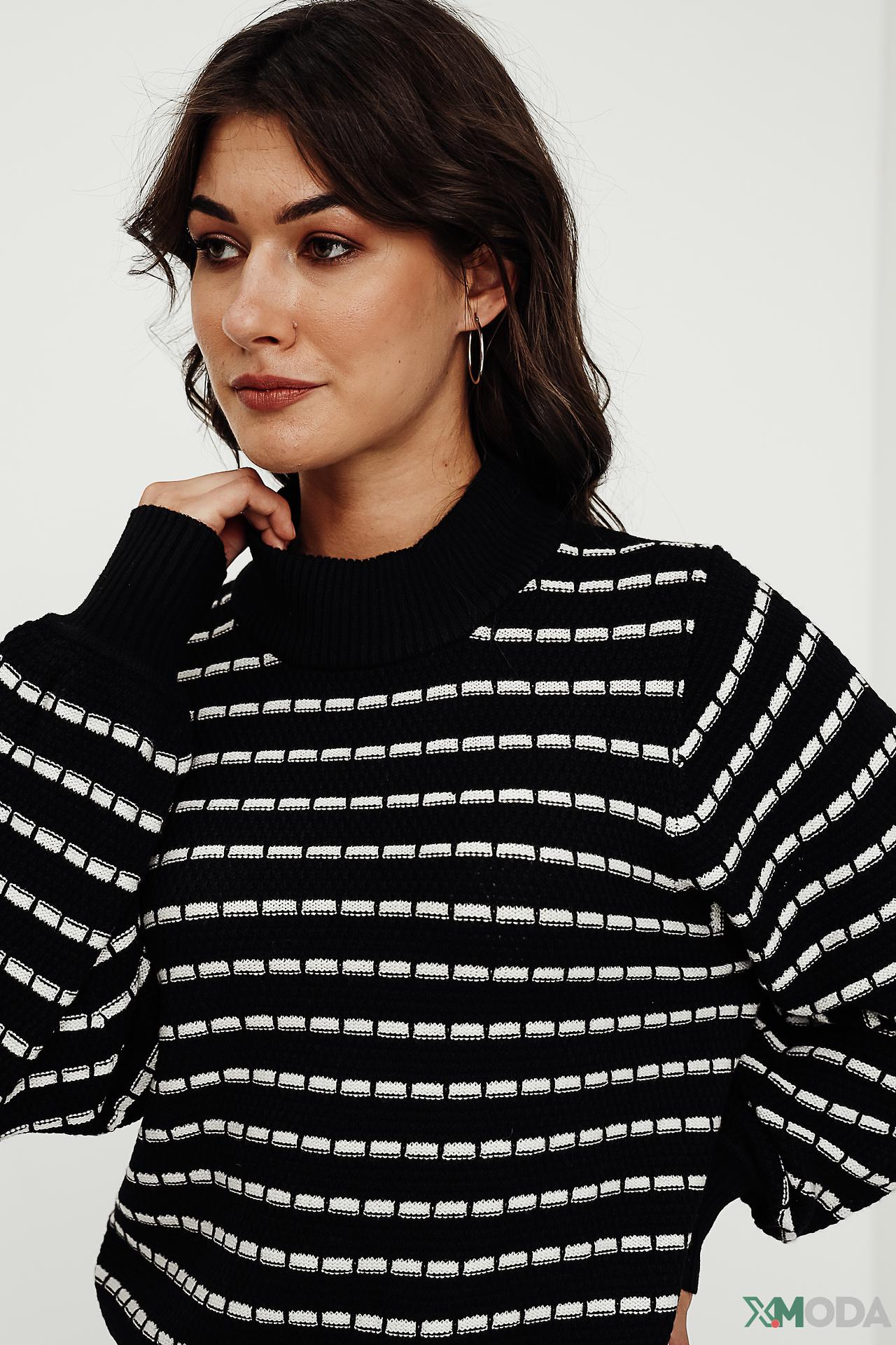 Элегантный пуловер от Apart, выполненный в классическом черно-белом цвете. Модель украшена изящным горизонтальным узором в виде полос, создающим стильный и современный образ. Высокий воротник-гольф добавляет изысканности и обеспечивает дополнительное тепло.