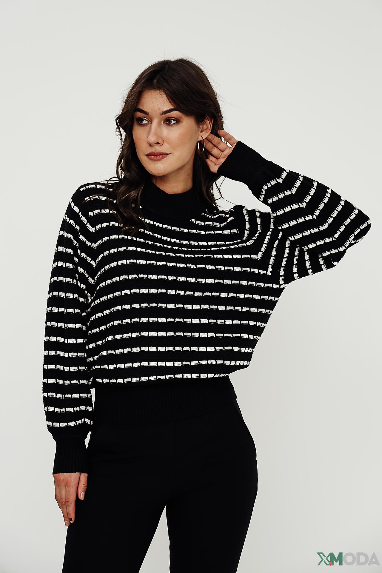 - Дизайн: Классический крой с высоким воротником и длинными рукавами. Оригинальный узор в полоску придает изделию особую привлекательность и делает его универсальным элементом гардероба.
