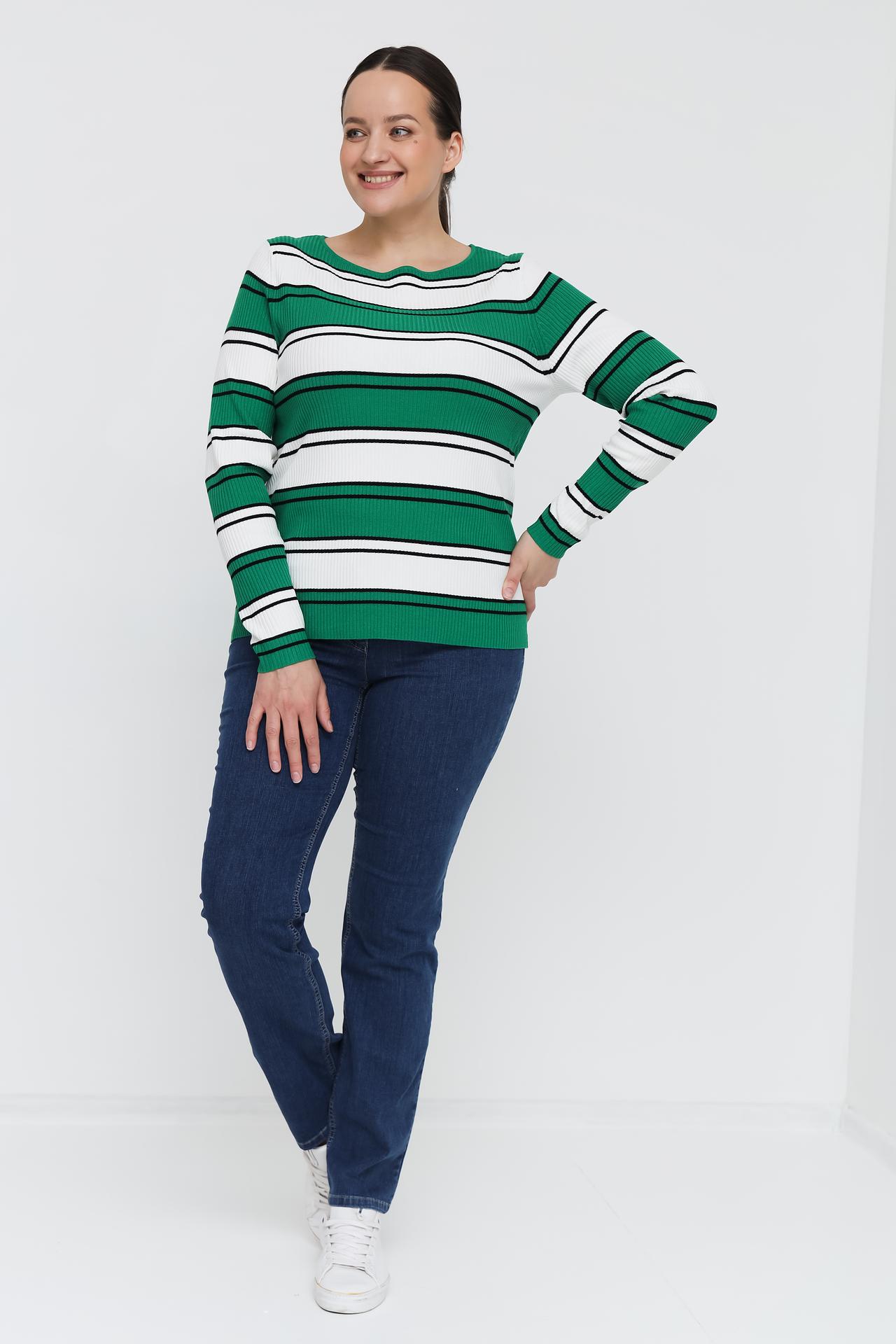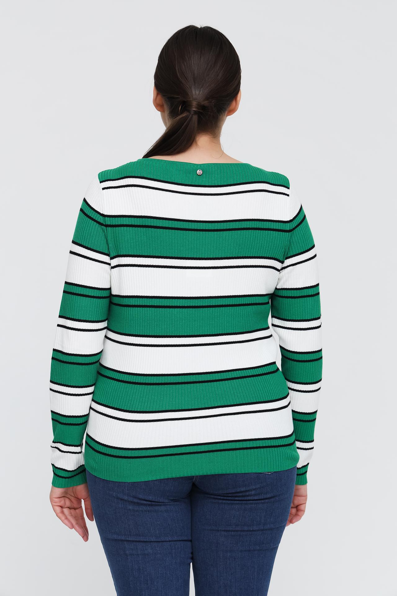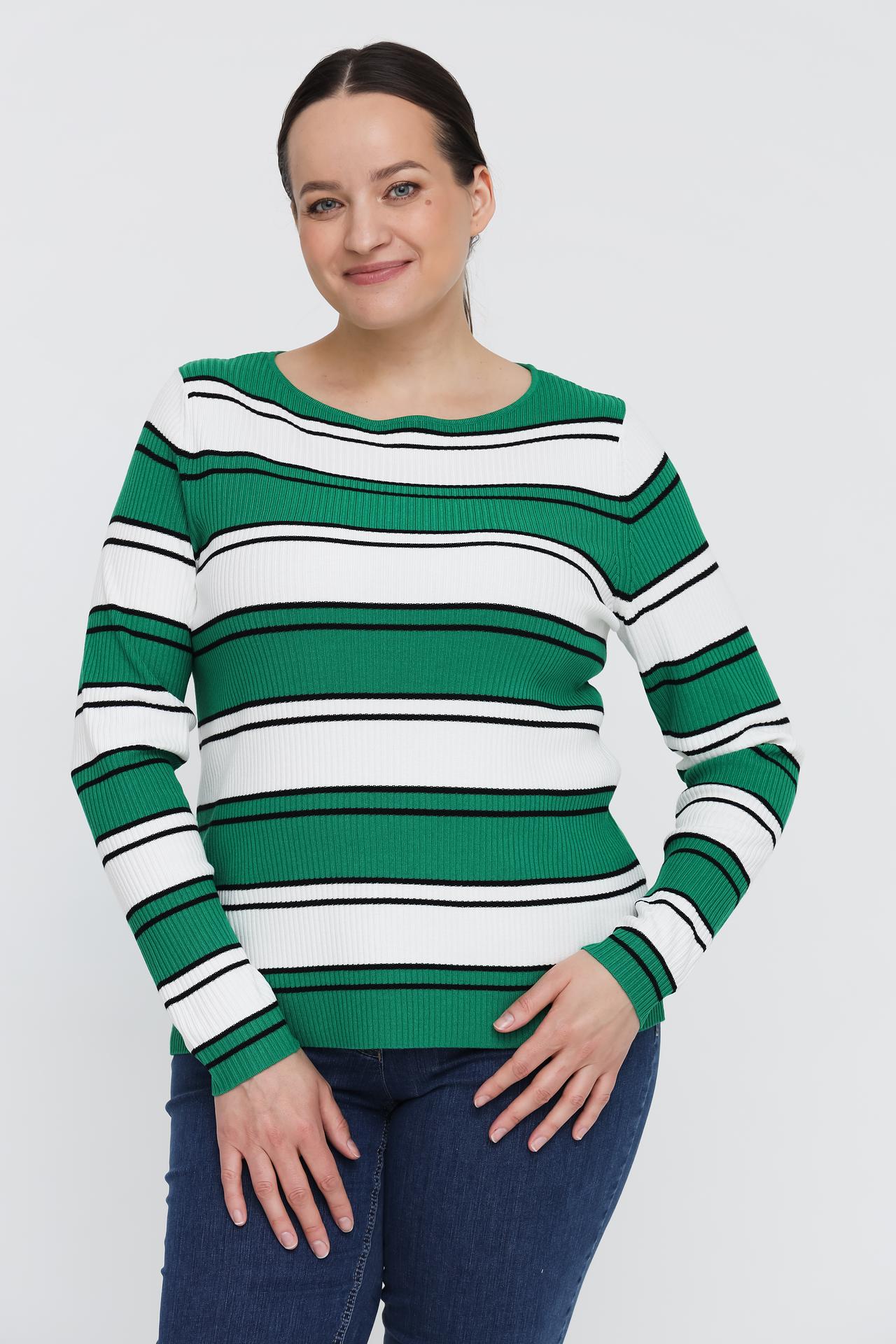 - Универсальный дизайн: Классический полосатый принт в сочетании зеленого, белого и черного цветов делает этот пуловер легко адаптируемым под различные стили и настроения. Он подойдет как для расслабленного образа, так и для более строгого офисного дресс-кода.