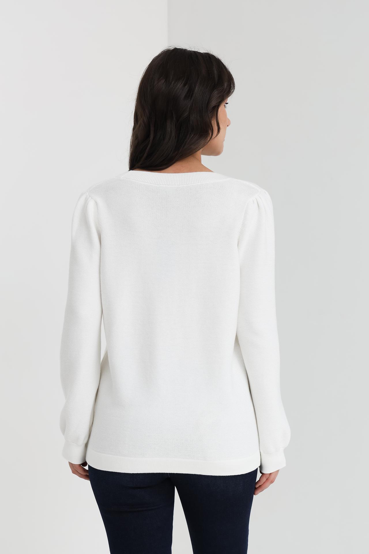 - Дизайн: V-образный вырез горловины, длинные рукава и прямой силуэт создают элегантный и современный образ. Пуловер отлично сочетается с брюками, юбками и джинсами.