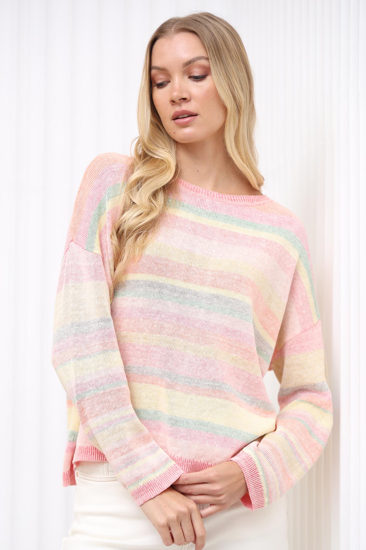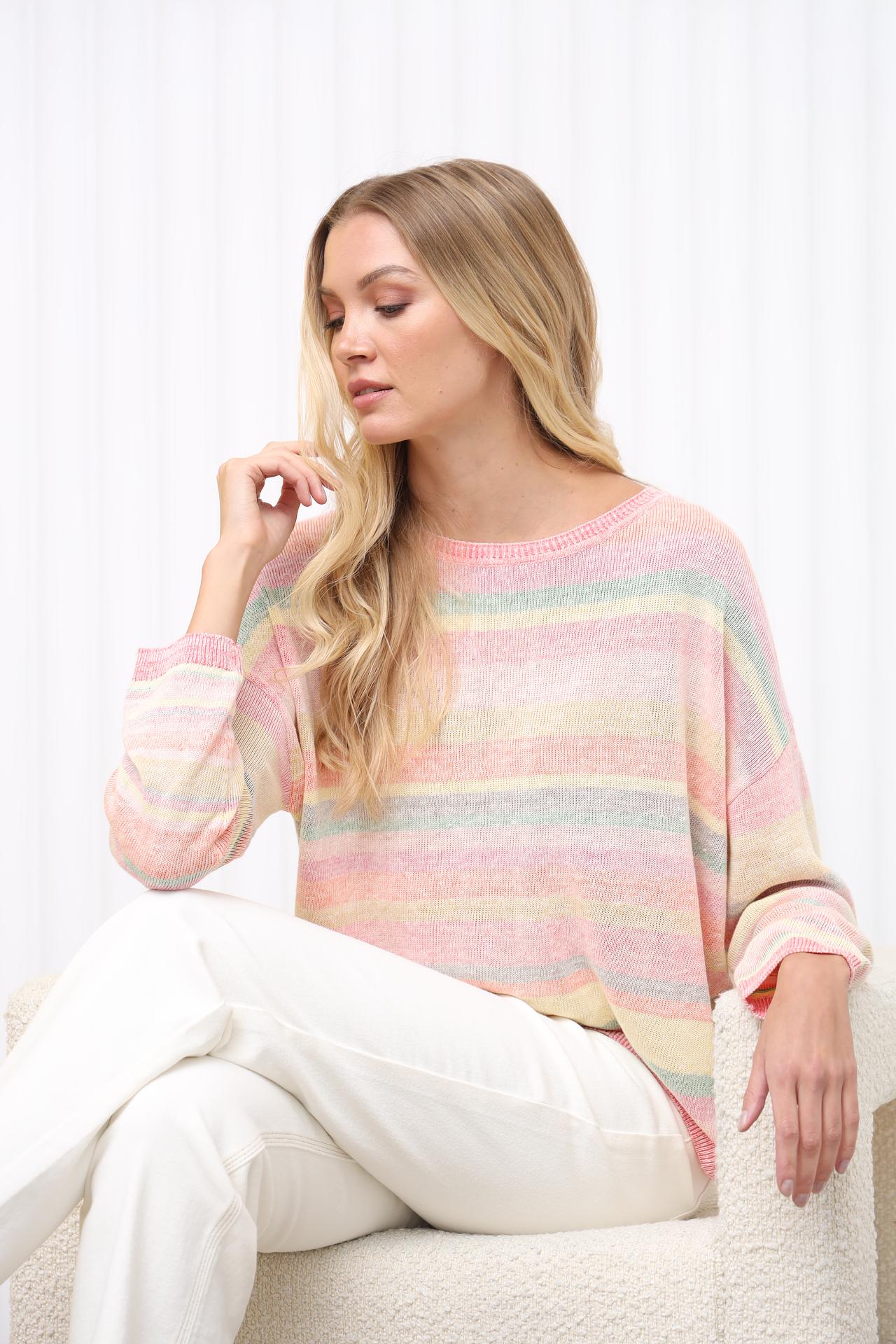 - Натуральный состав: 31% хлопок и 69% лен. Натуральные волокна обеспечивают комфорт и позволяют коже дышать, делая этот пуловер идеальным для теплой погоды.