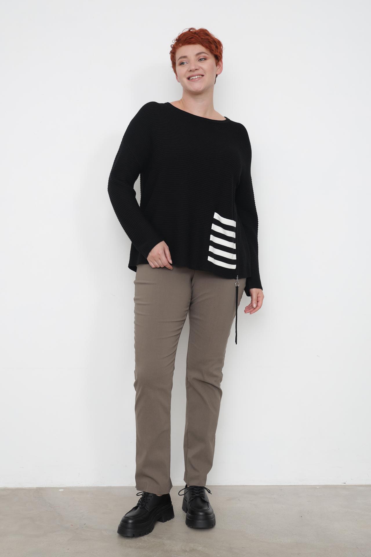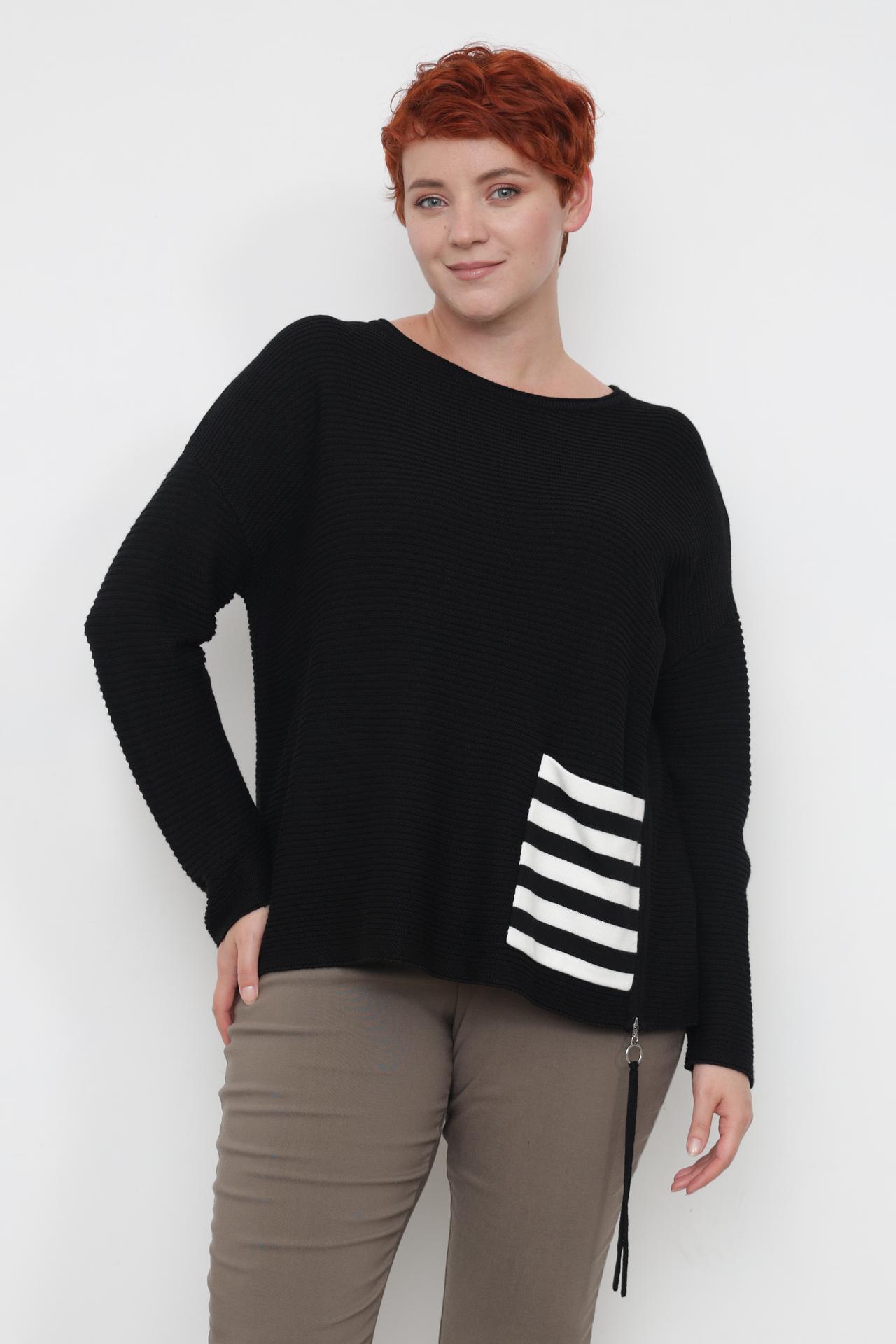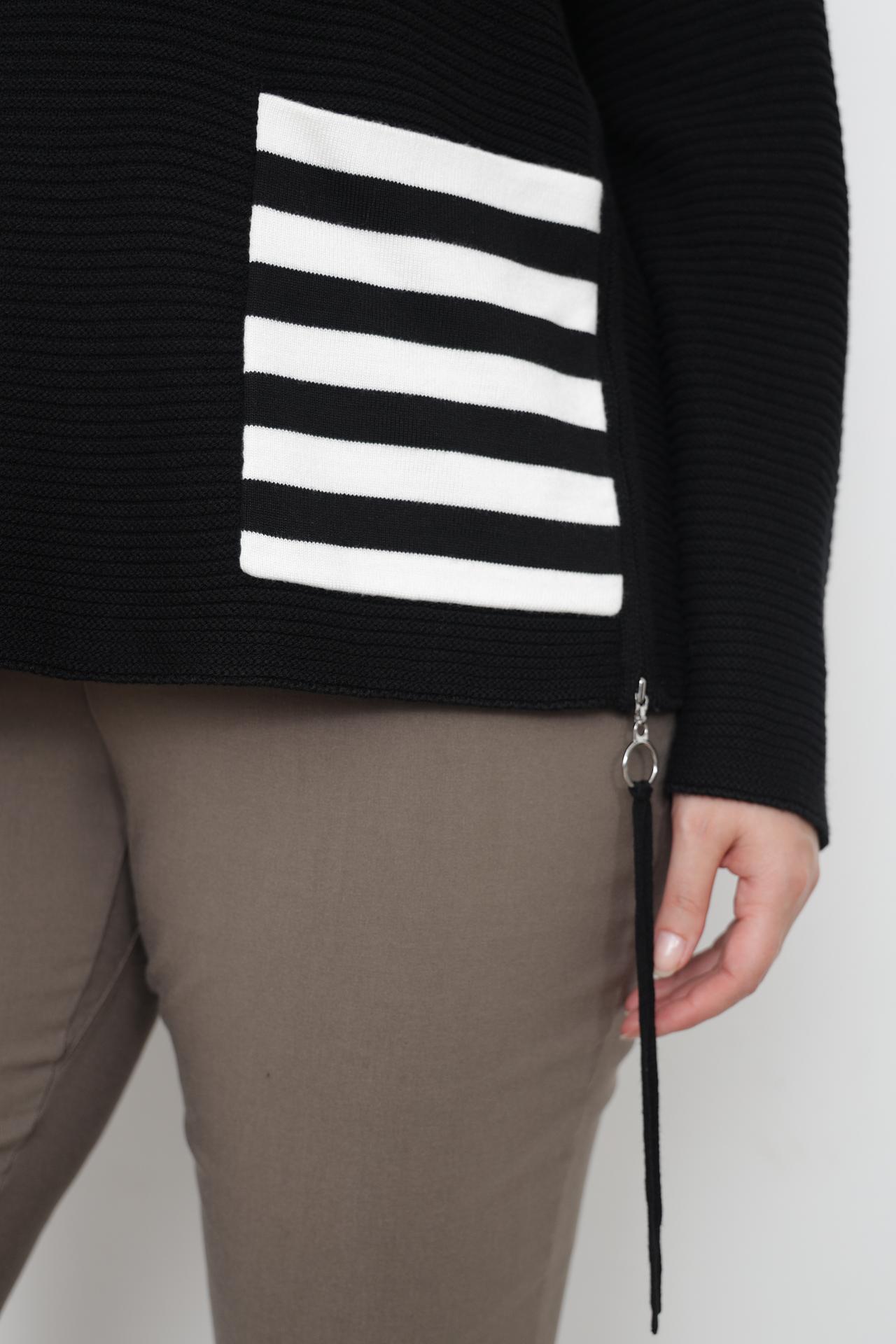 Пуловер Doris Streich чёрный с полосатым карманом и декоративной молнией
