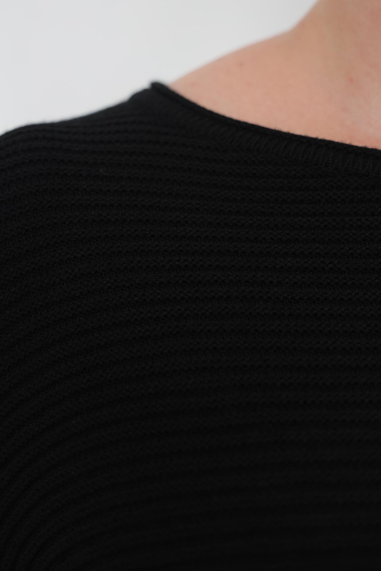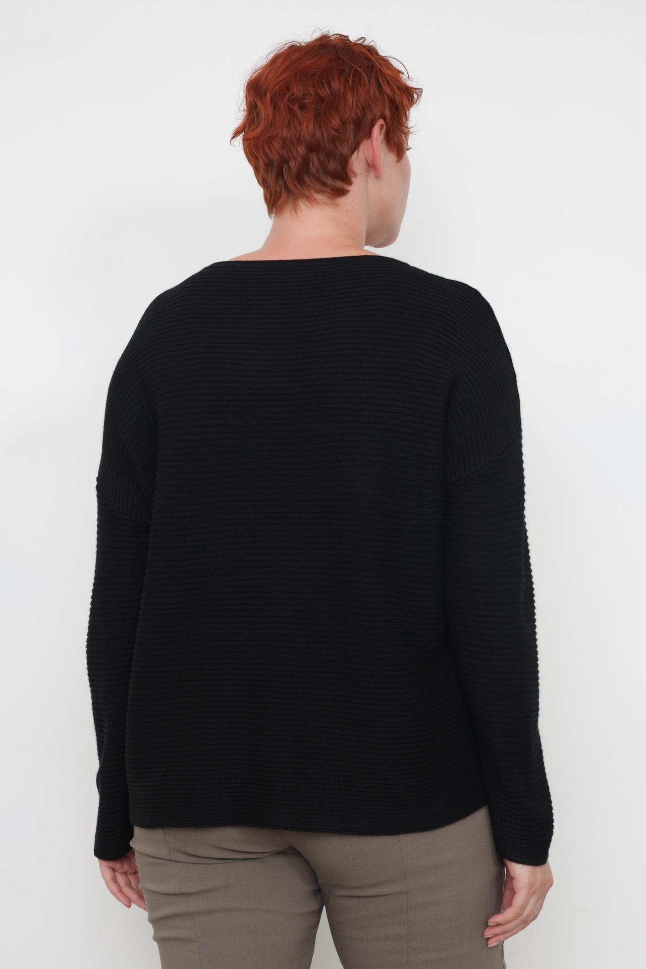 Элегантный женский пуловер от Doris Streich выполнен в универсальном чёрном цвете, что делает его идеальной основой для повседневного и офисного гардероба. Модель обладает свободным кроем со спущенной линией плеча и широким вырезом-лодочкой, обеспечивая максимальный комфорт и непринуждённый силуэт. Горизонтальная вязка в рубчик добавляет фактурности изделию.