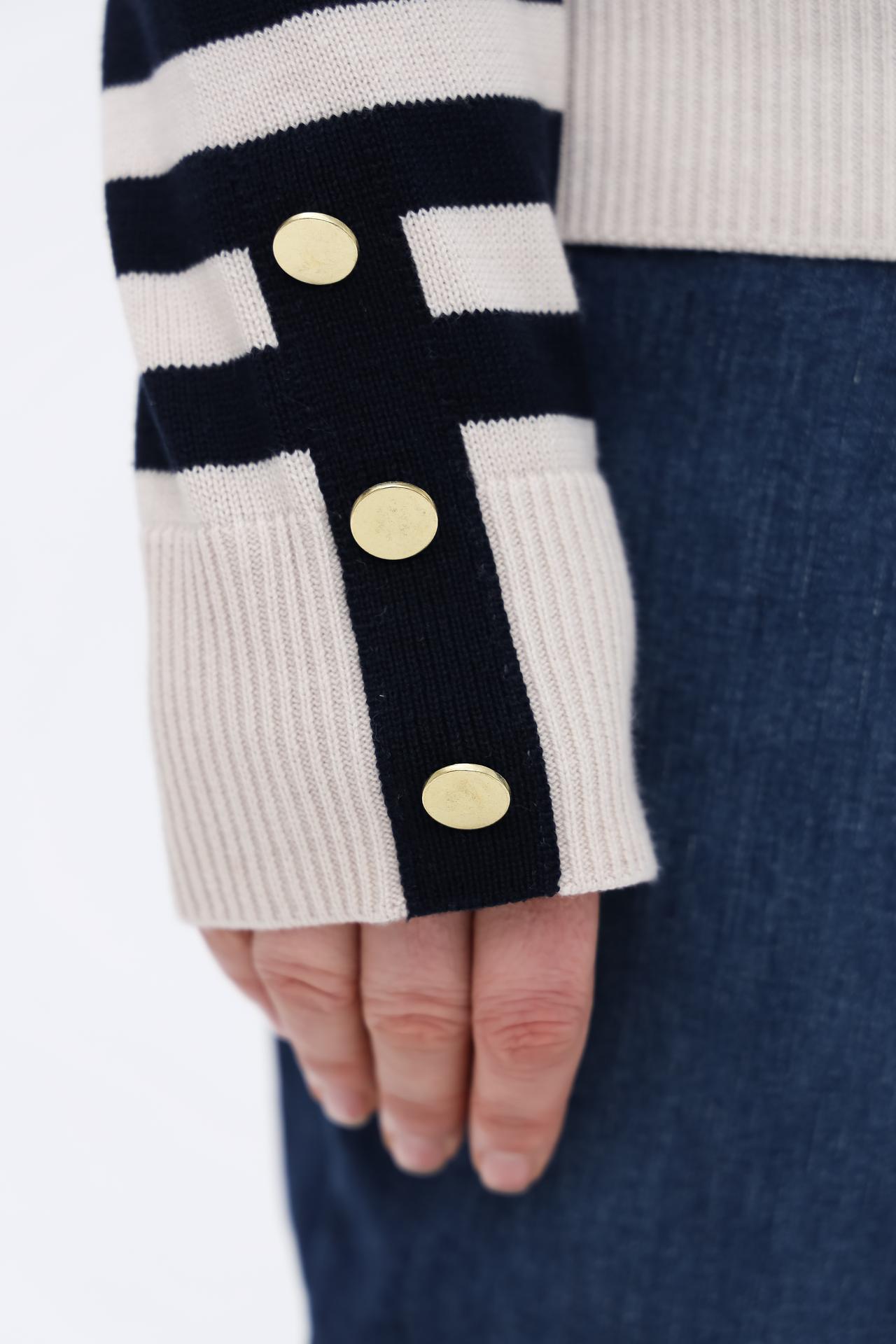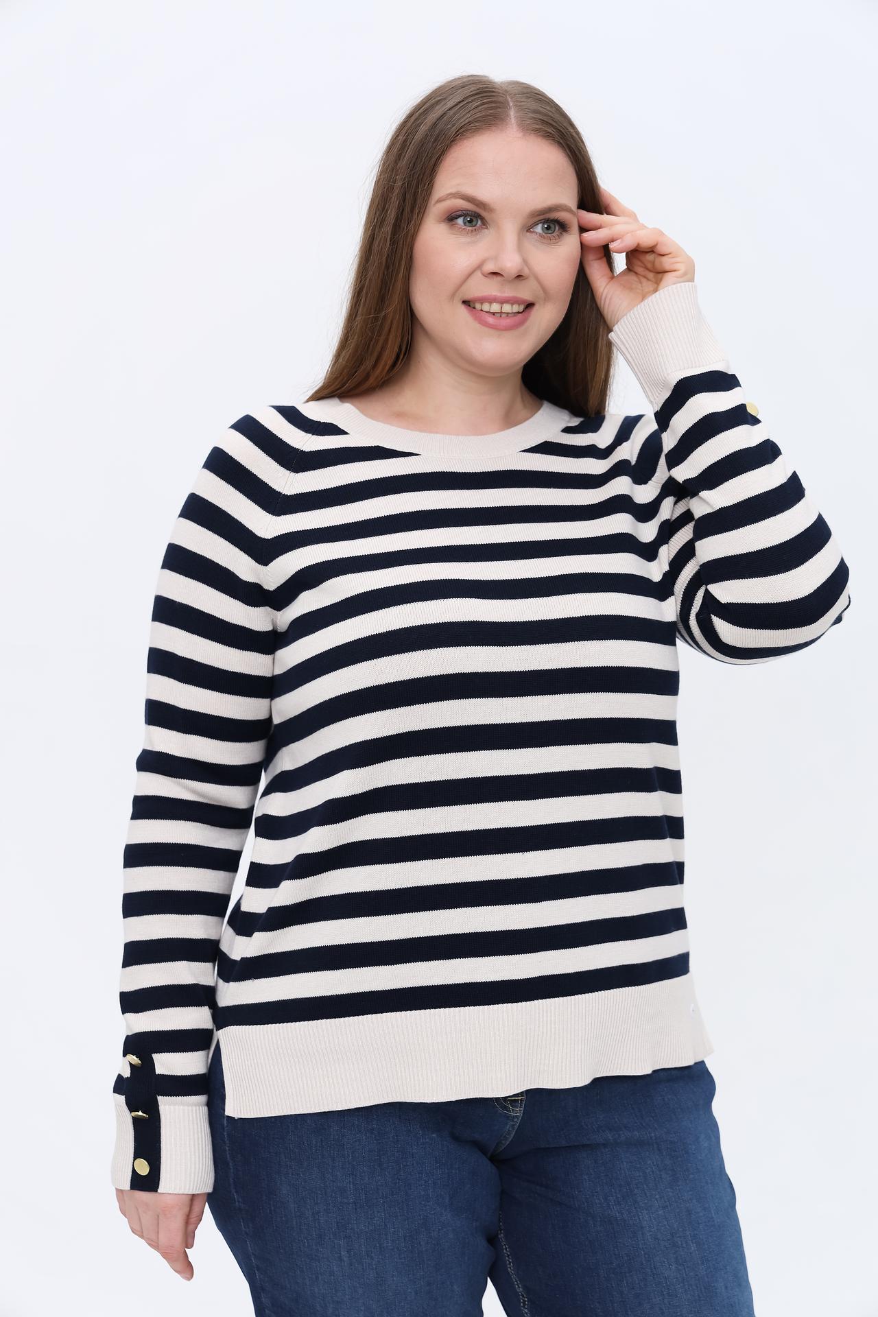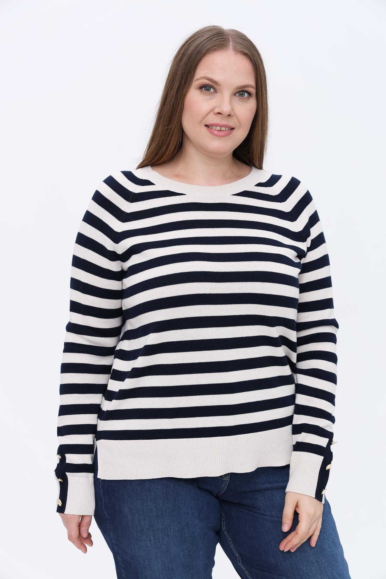 Полосатый дизайн пуловера создает свежий и модный образ, который подойдет для различных случаев. Прямой крой обеспечивает свободу движений, а деликатные пуговицы на манжетах добавляют изюминку.
